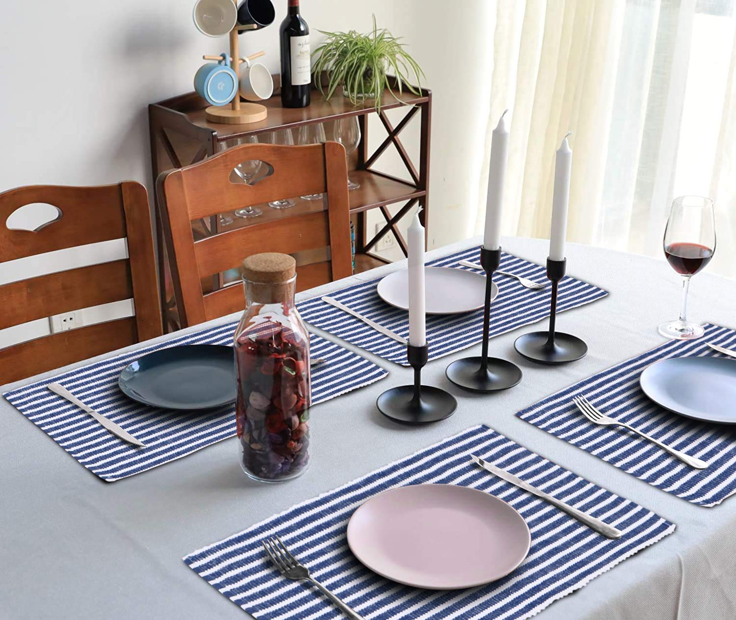 Poly Jute Dining Table Cover, Dark Blue