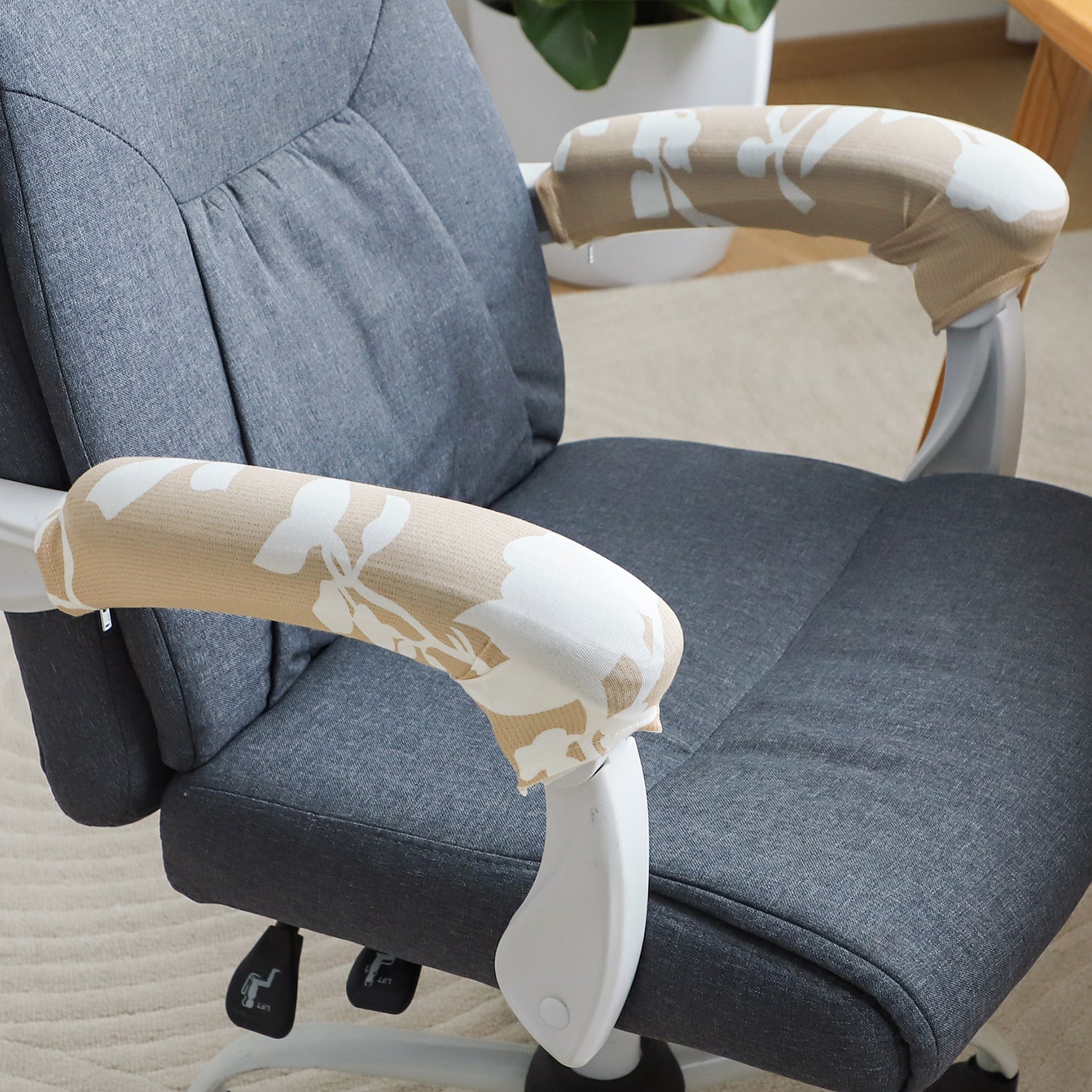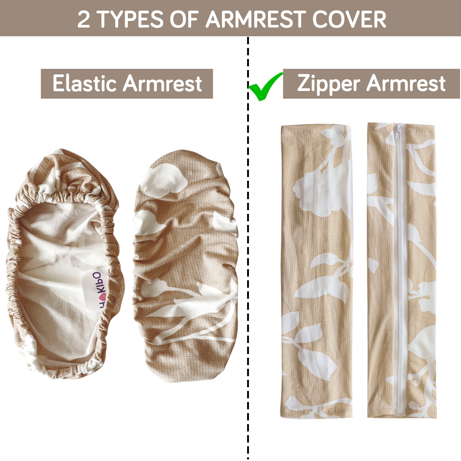 140gsm Printed Armrest Covers for Office Chair (Zipper Style), 1 Pair, Buff Brown Sillehoute Floral
