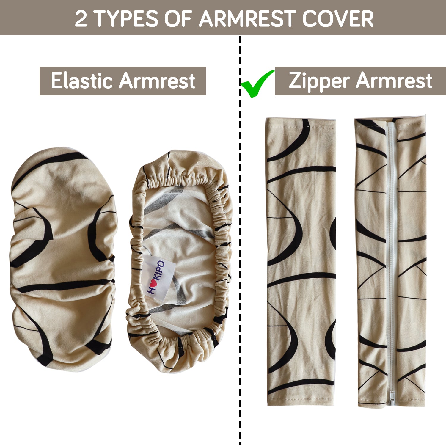 140gsm Printed Armrest Covers for Office Chair (Zipper Style), 1 Pair, Natural Beige Abstract Art