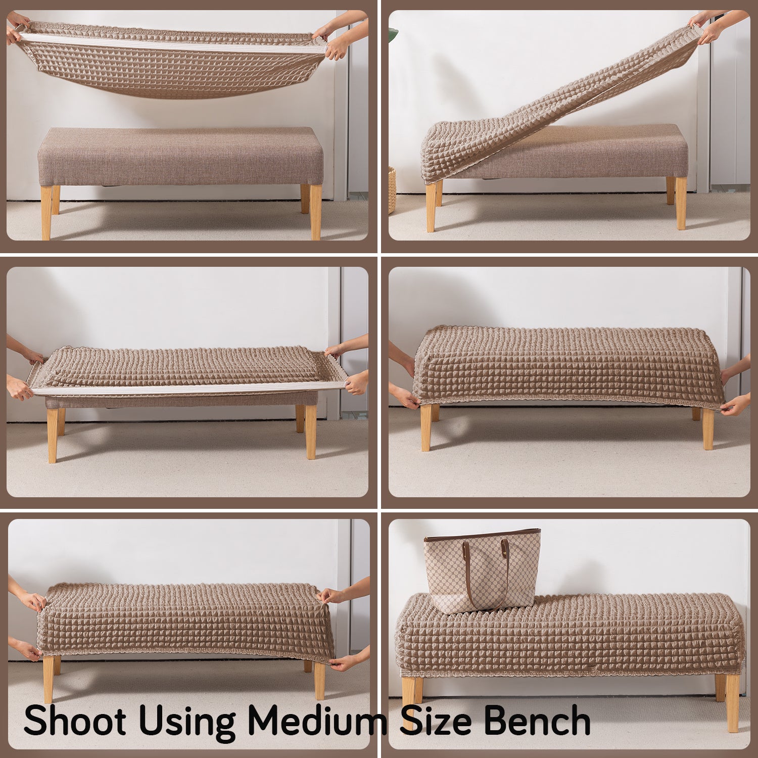 Aria Nova 280 GSM Stretchable Bubble Dining Bench Cover, Mocha Brown