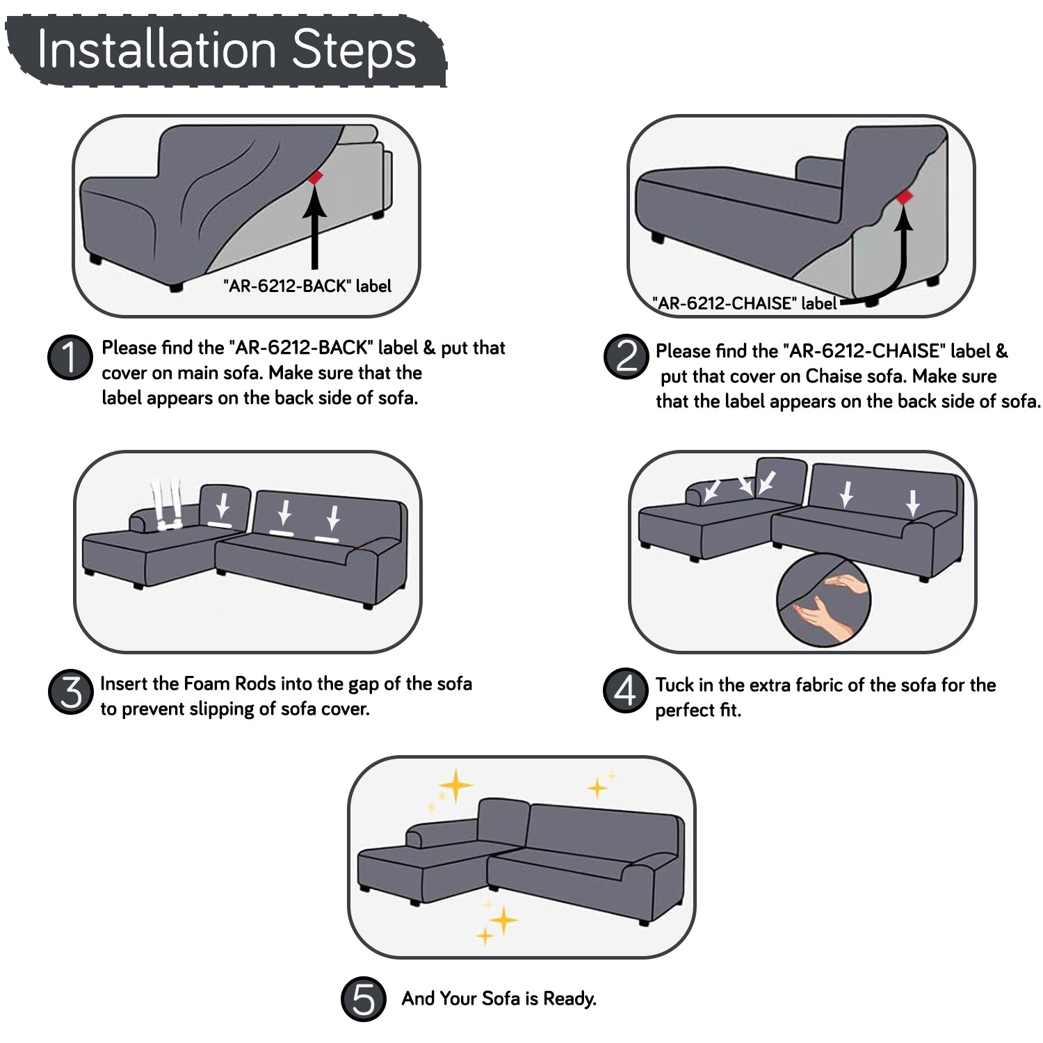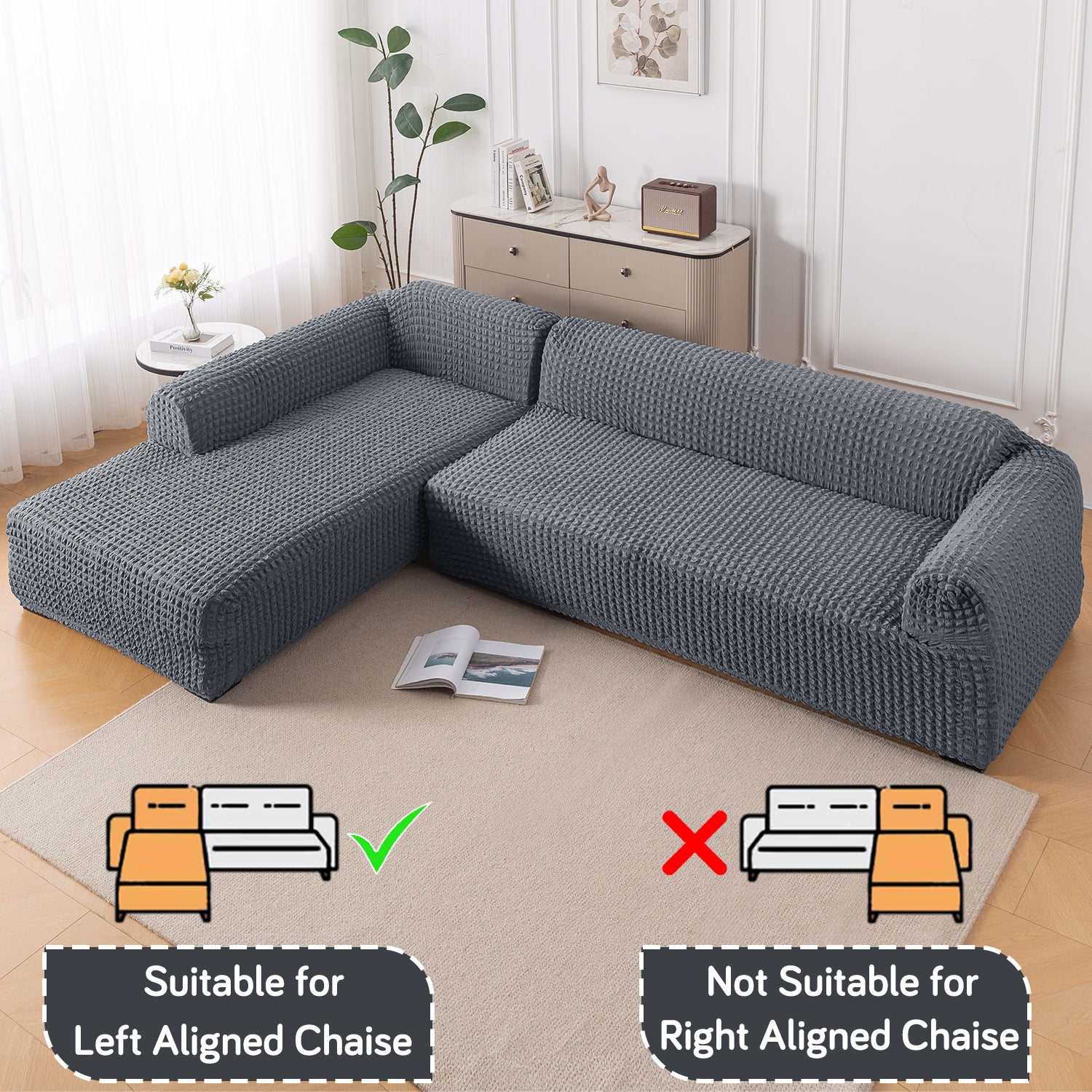 Perfect Fit: 2-piece cover set (main + left-chaise) designed for L-shape sofas with left-aligned chaise.