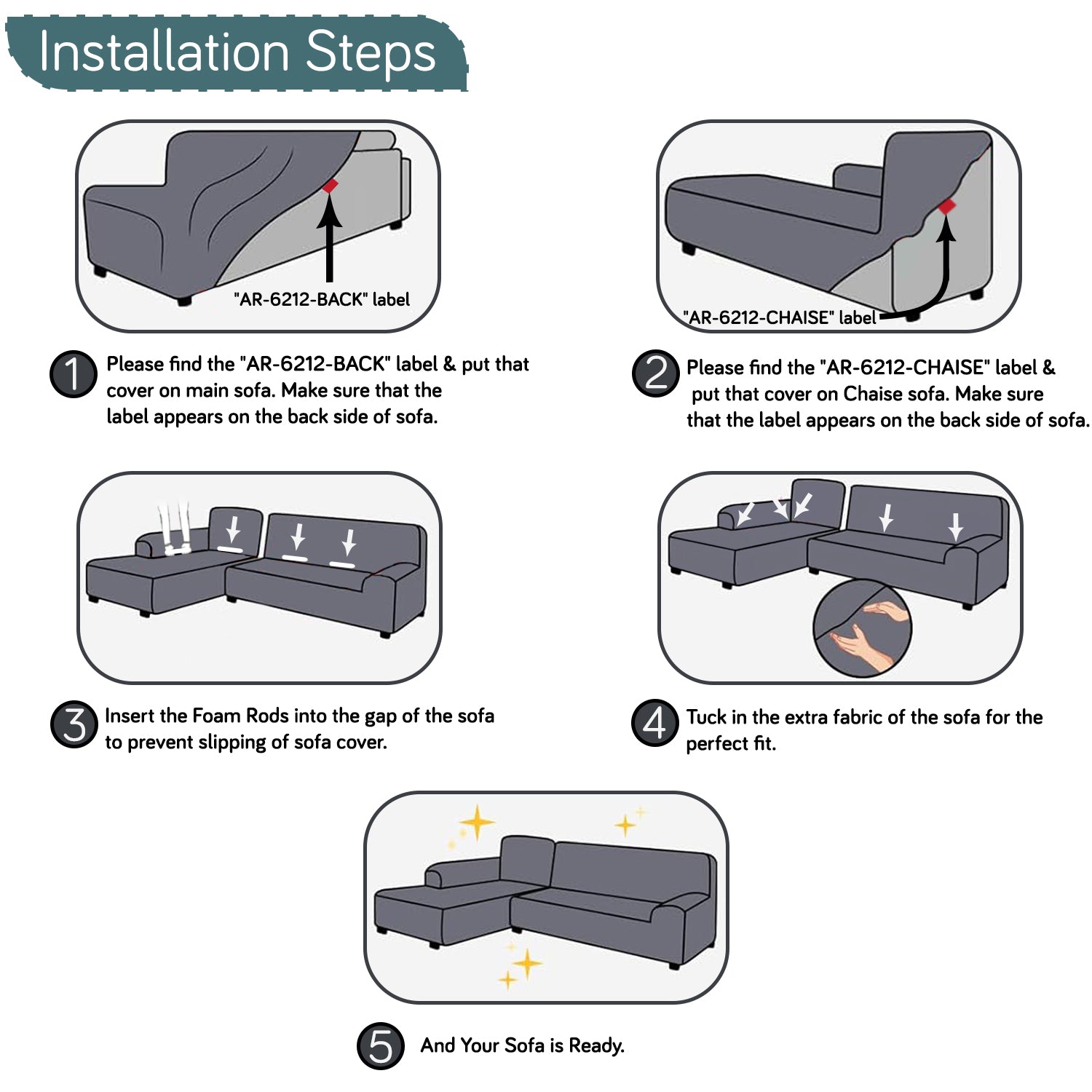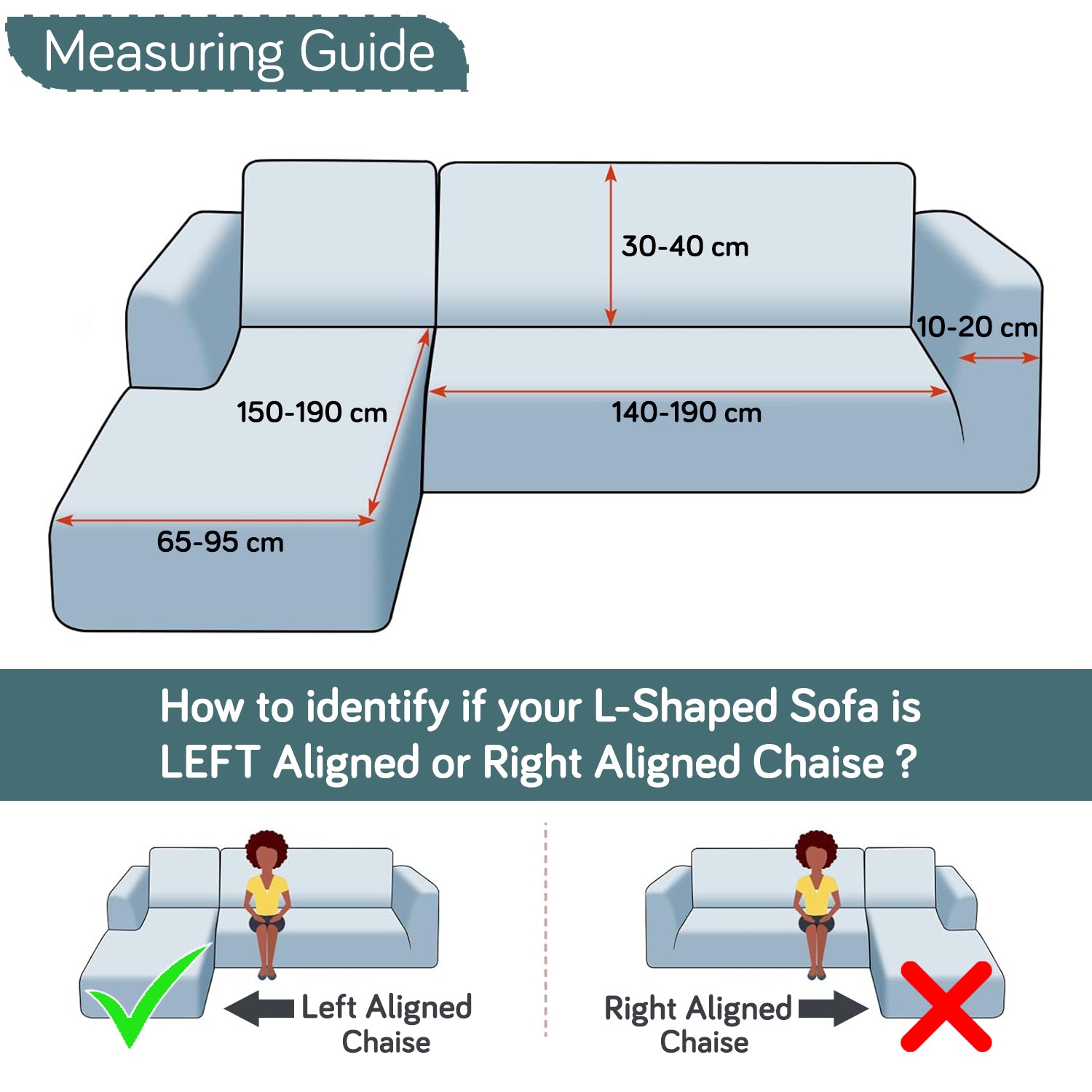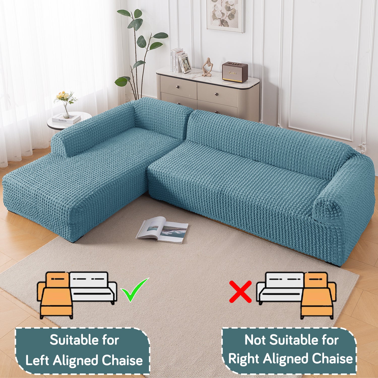 Perfect Fit: 2-piece cover set (main + left-chaise) designed for L-shape sofas with left-aligned chaise.