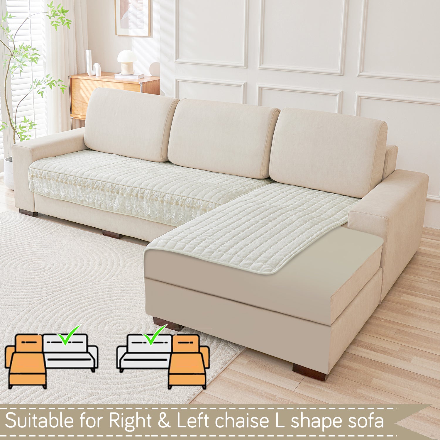 BelleLace Series Imperial Milk Velvet L Shape Sofa Cover Mat with Lace Design - Pearl White