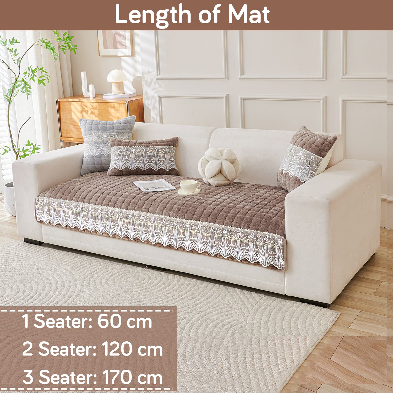 BelleLace Series Imperial Milk Velvet Sofa Cover Mat with Lace Design - Mocha Brown