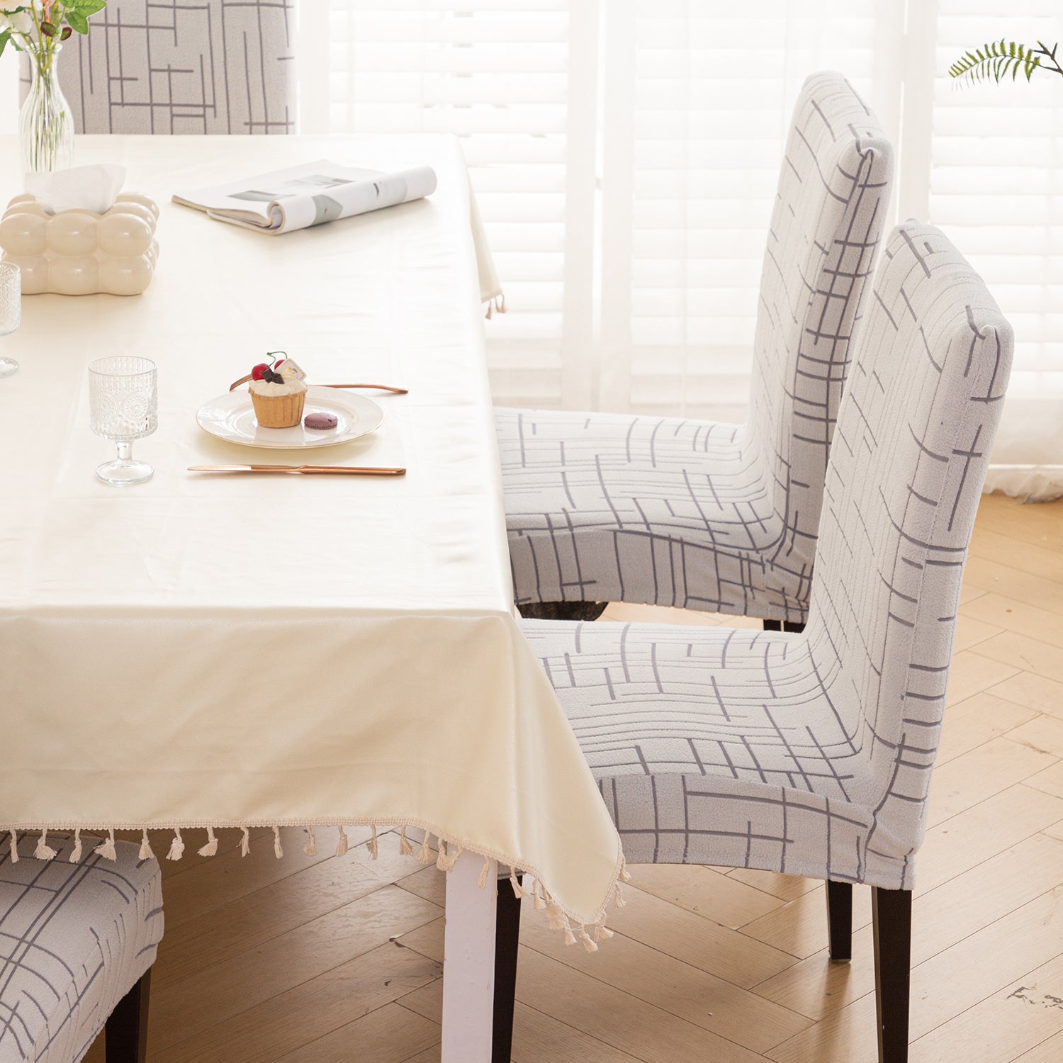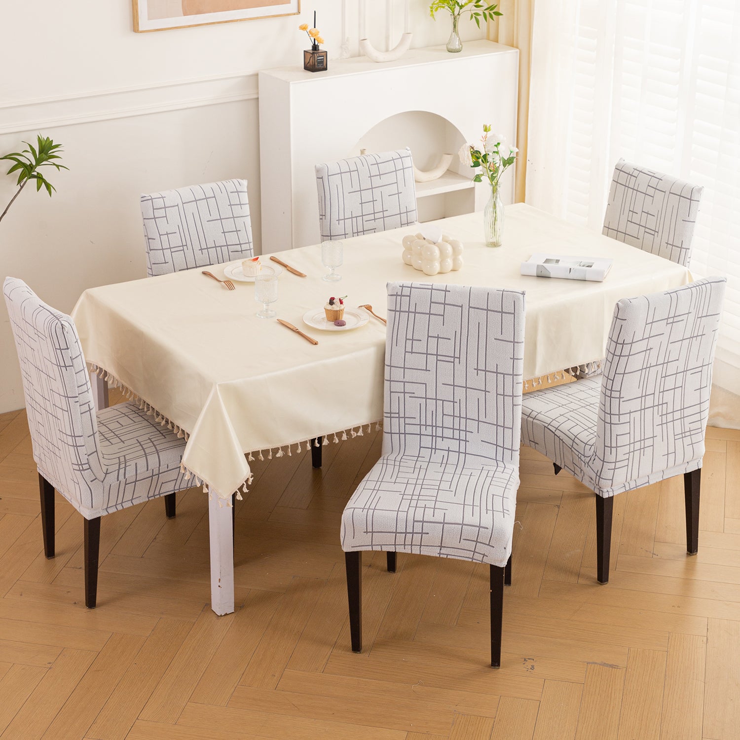 'Crossline Series' 180 GSM Jacquard Chair Cover Set 1/2/4/6, Light Grey