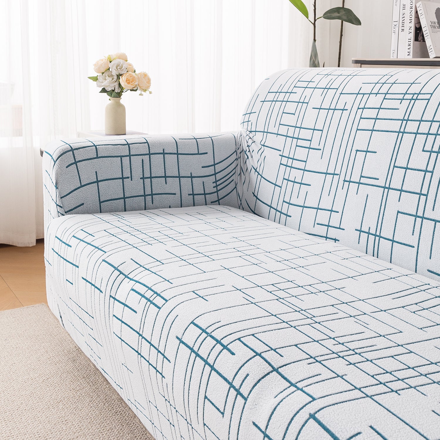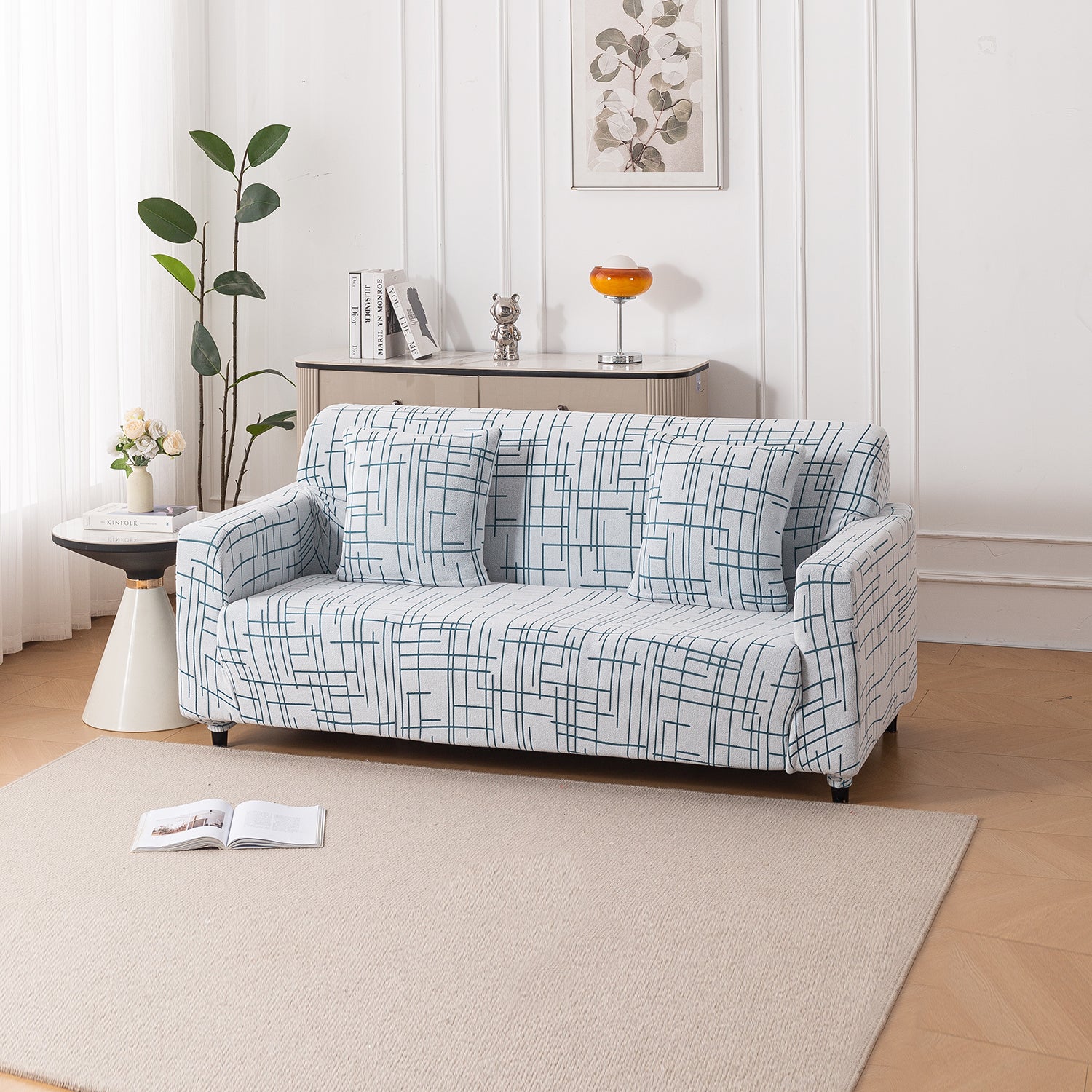 'Crossline Series' Jacquard Sofa Cover 1/2/3/4-seater Fully Covered, Teal Blue