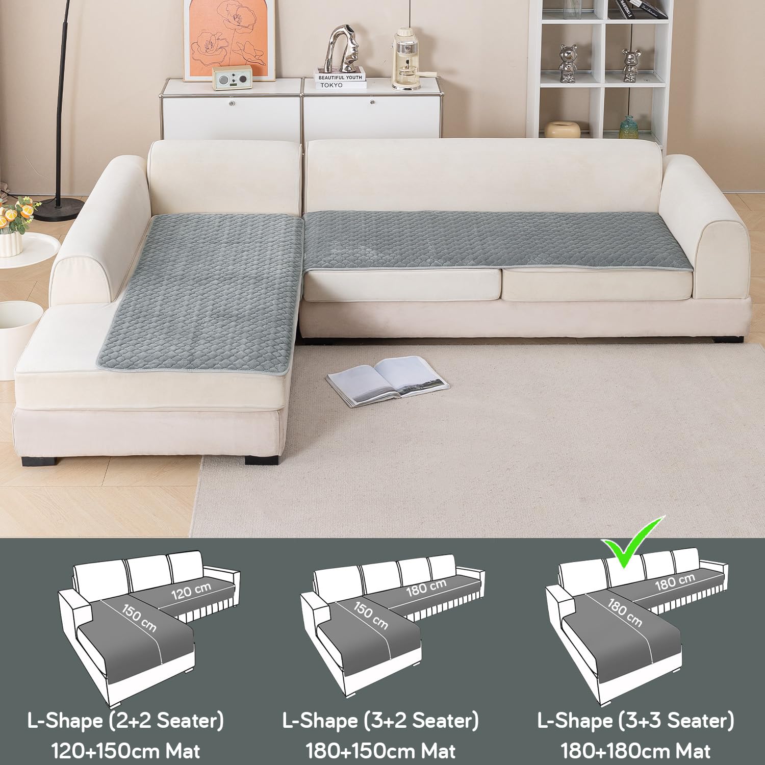 - Designed for L-Shape Sofas: Suitable for L-shaped sofas in 2+2 seater (120 cm + 150 cm), 3+2 seater (180 cm + 150 cm), and 3+3 seater (180 cm + 180 cm) configurations. Extra length can be easily tucked in for a neat, well-fitted look.