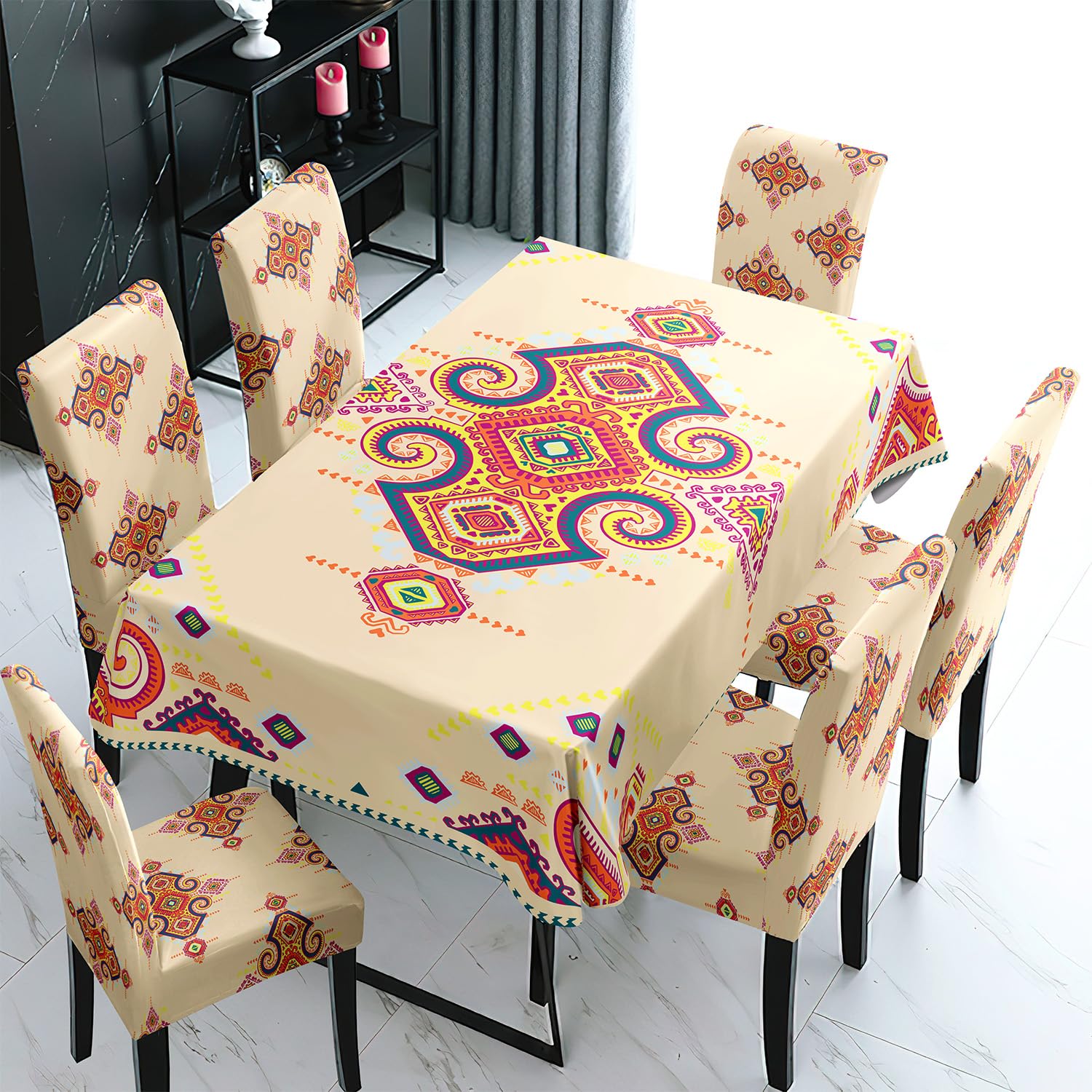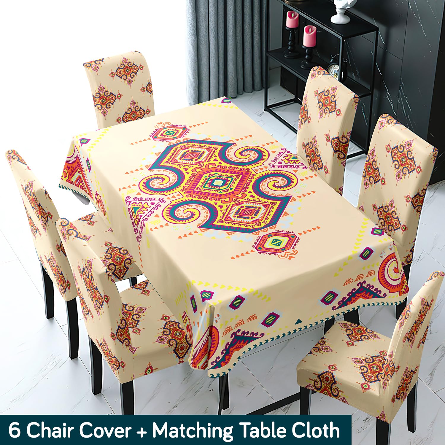 - Pack of 4 / Pack of 6 elastic dining chair covers with matching table cloth.