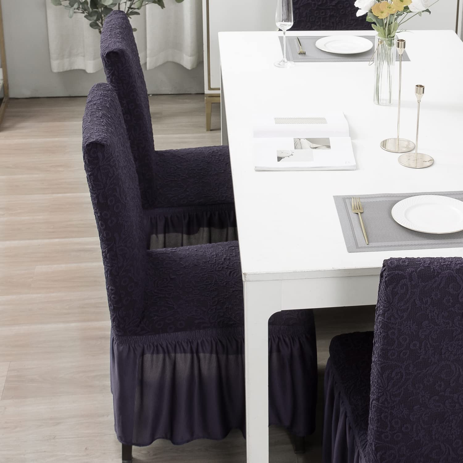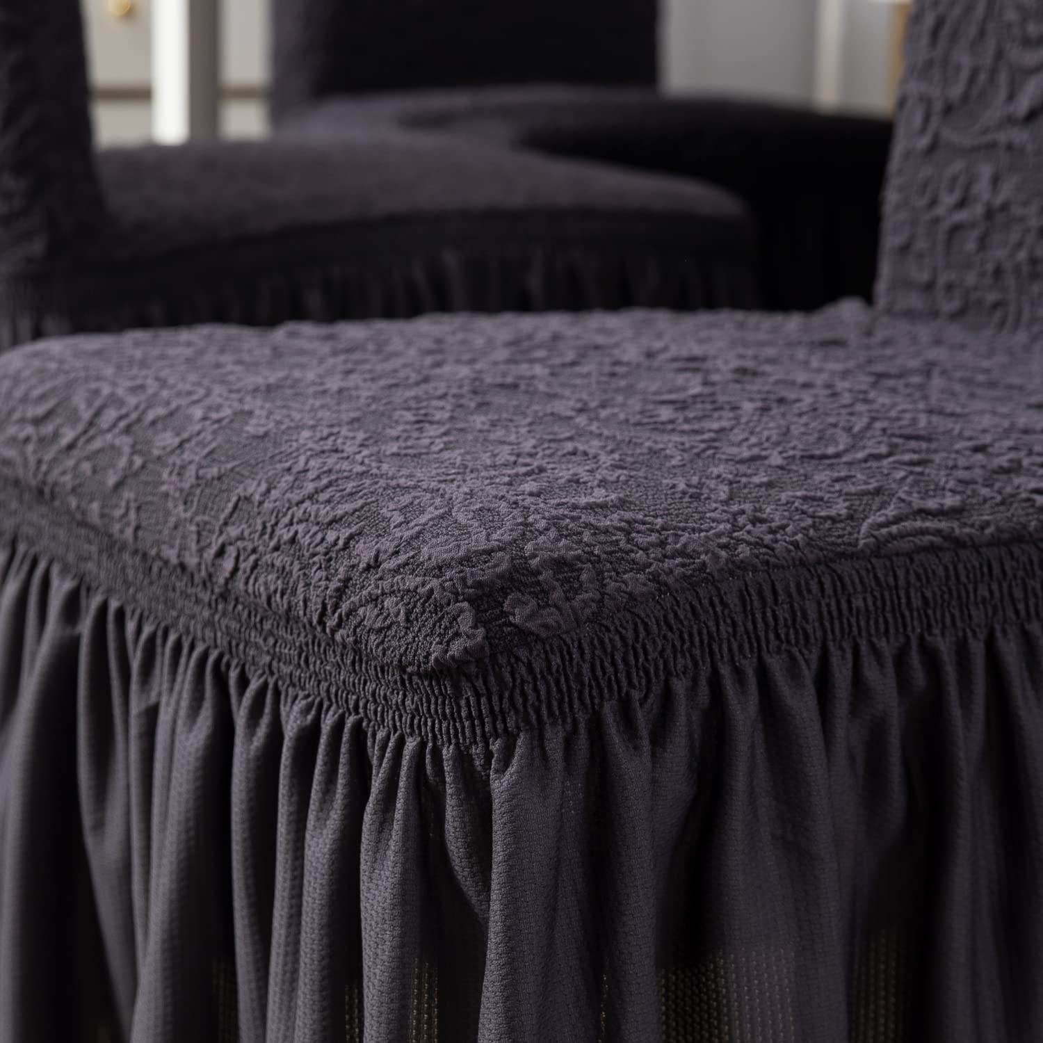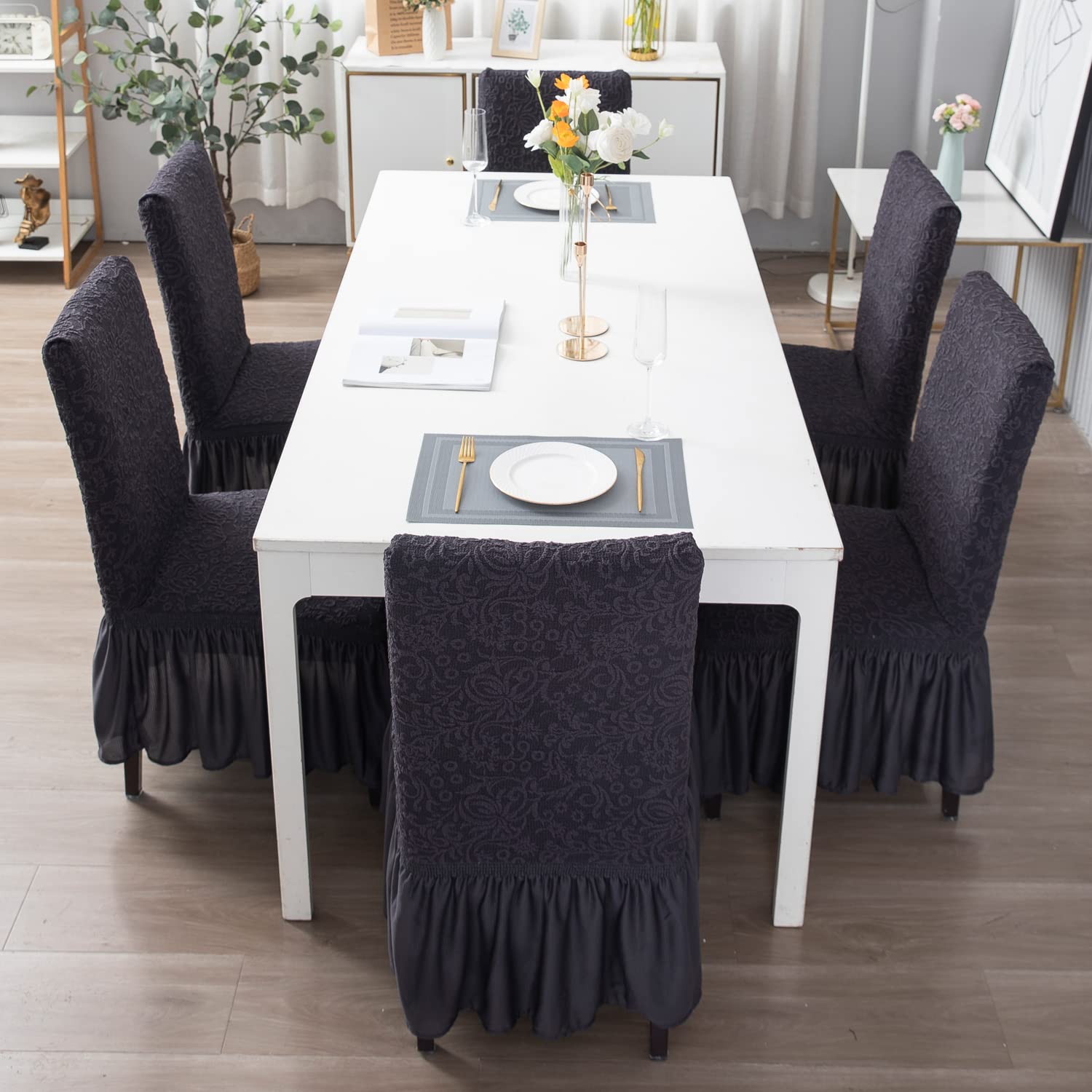 - Fully covered elastic woven jacquard dining chair covers with frill by HOKIPO