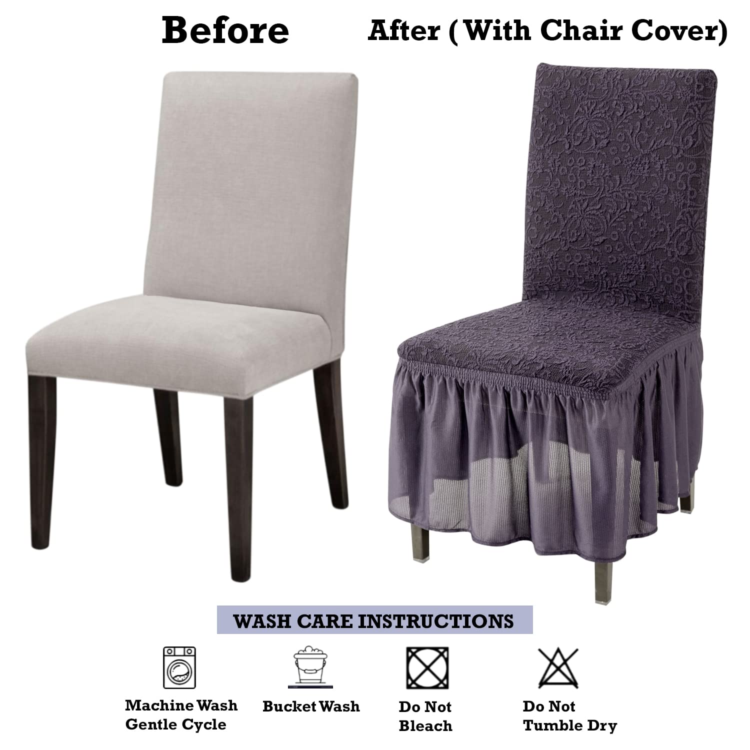 Elastic Stretchable Designer Woven Jacquard Dining Chair Cover with Frill, Abbey Grey