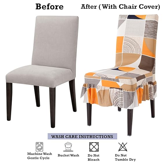 Elastic Stretchable Dining Chair Cover with Frill, Square Abstract