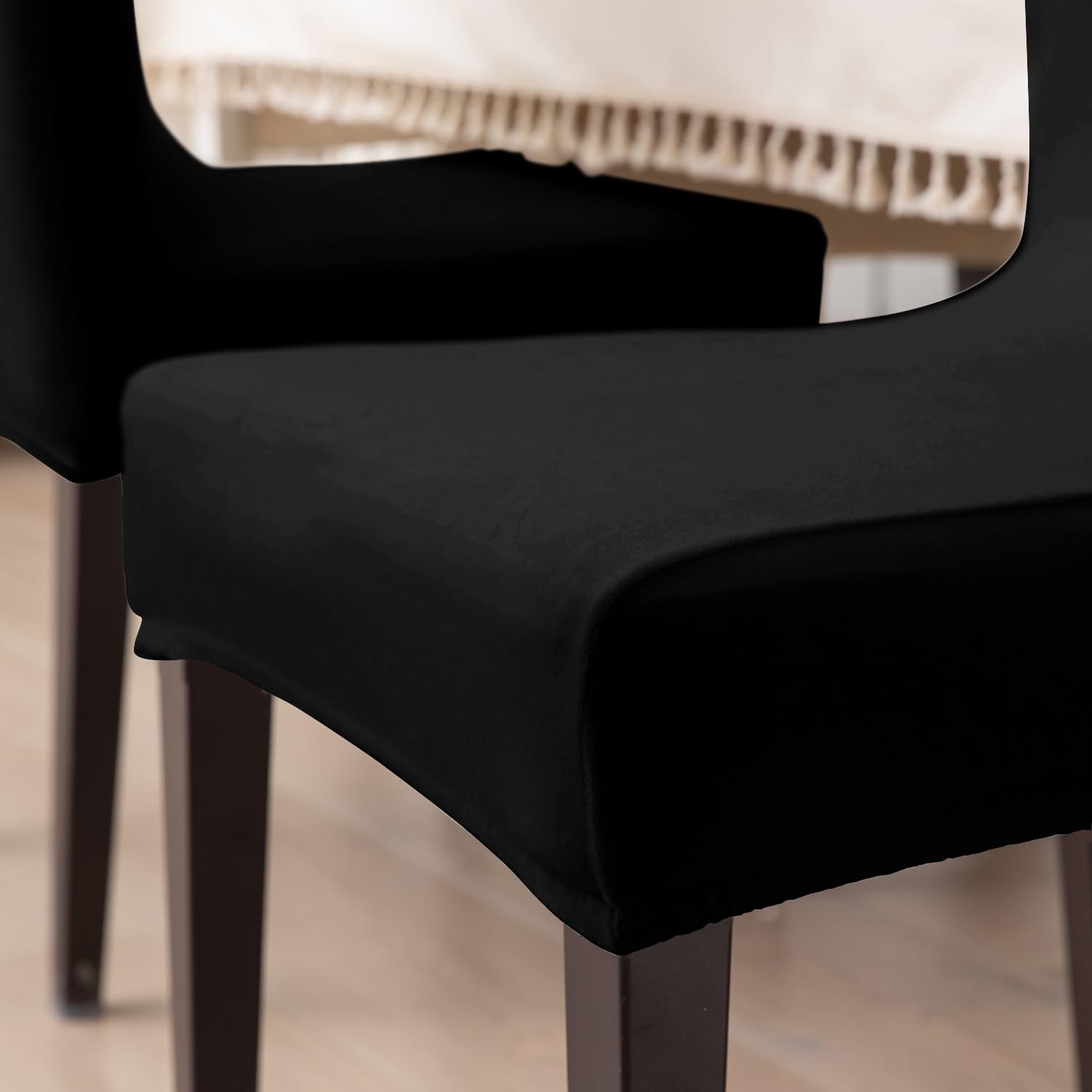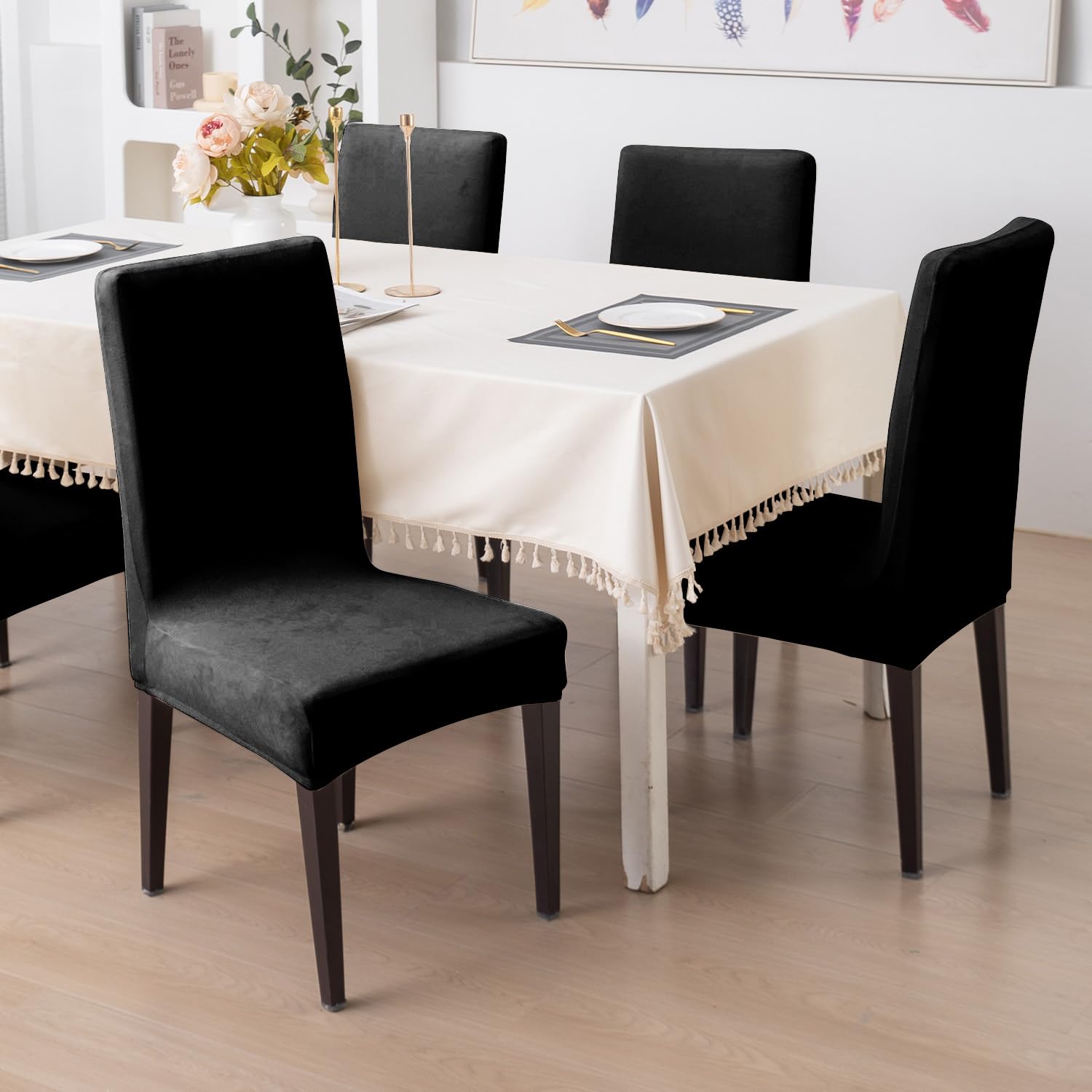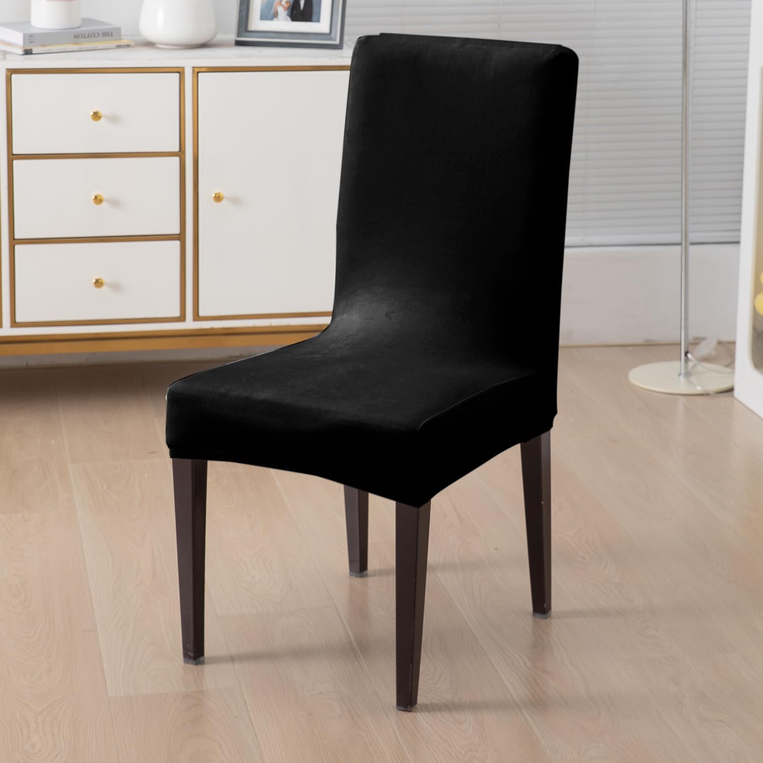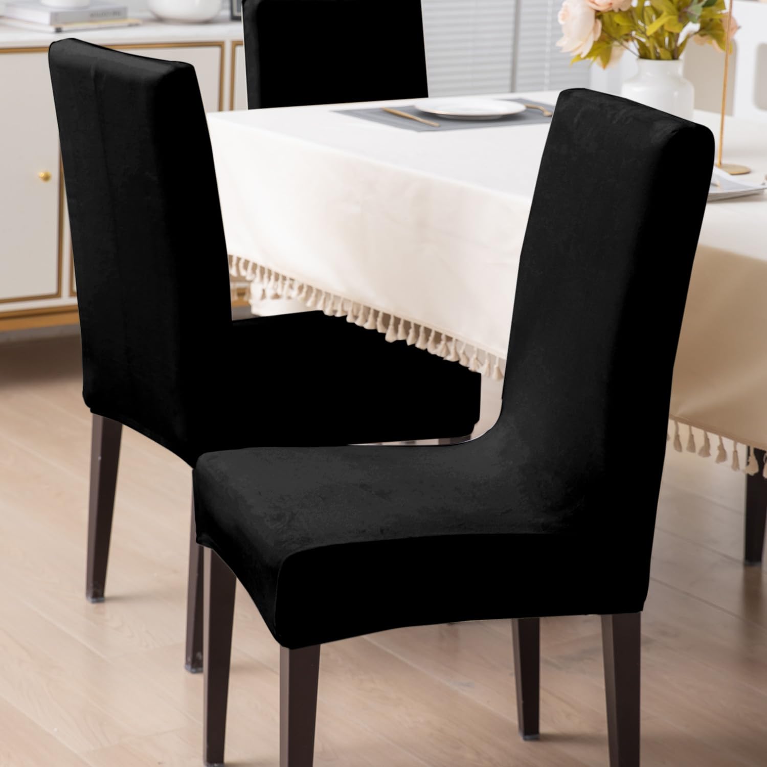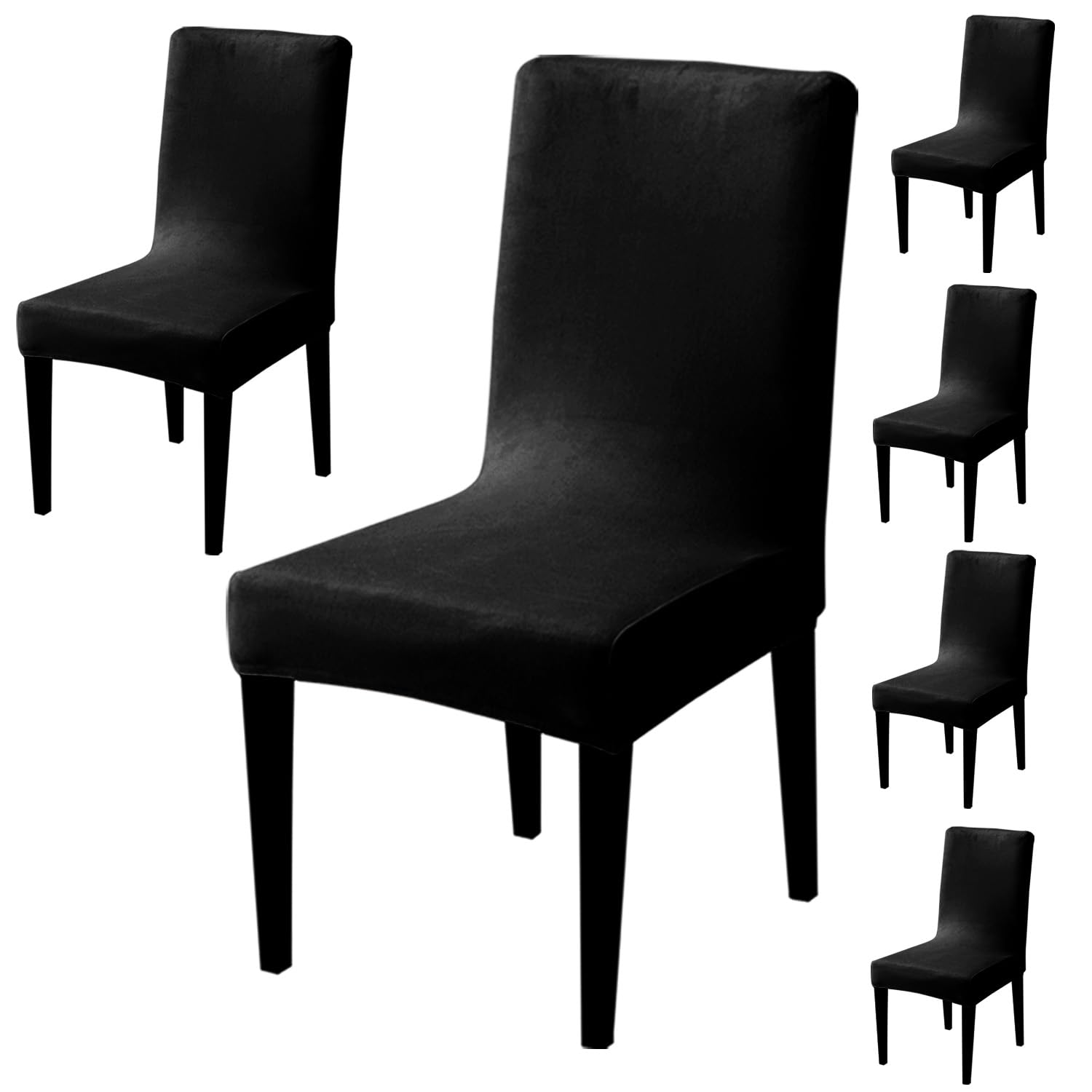 Elastic Stretchable Premium Velvet Dining Chair Cover, Black
