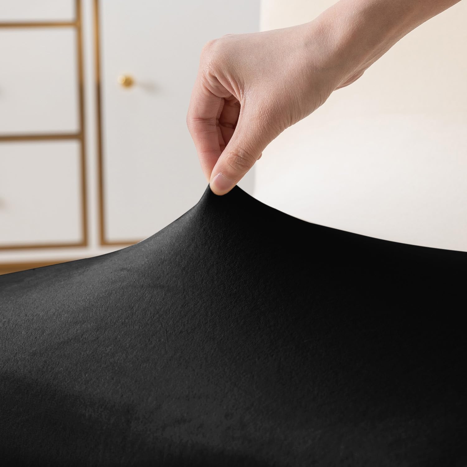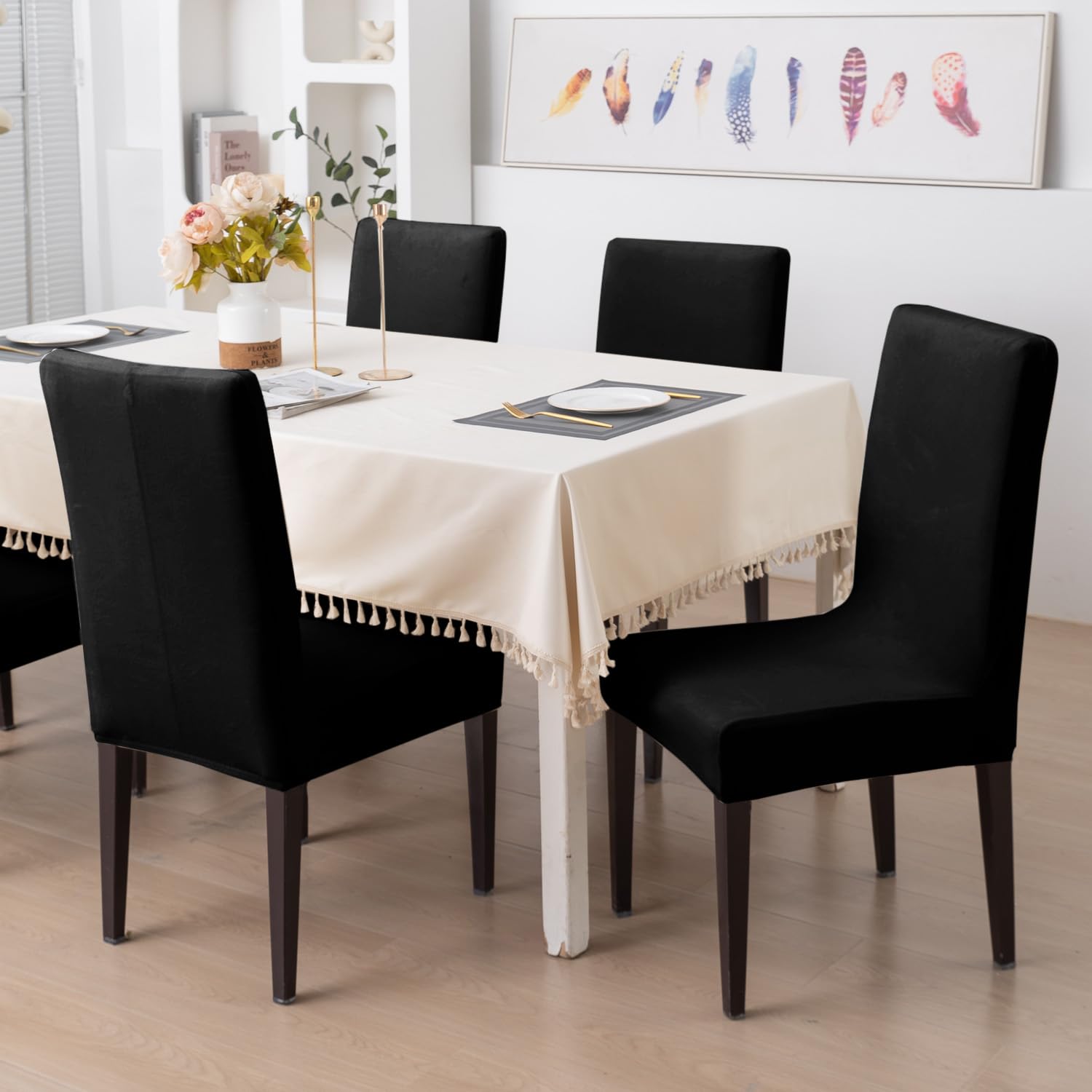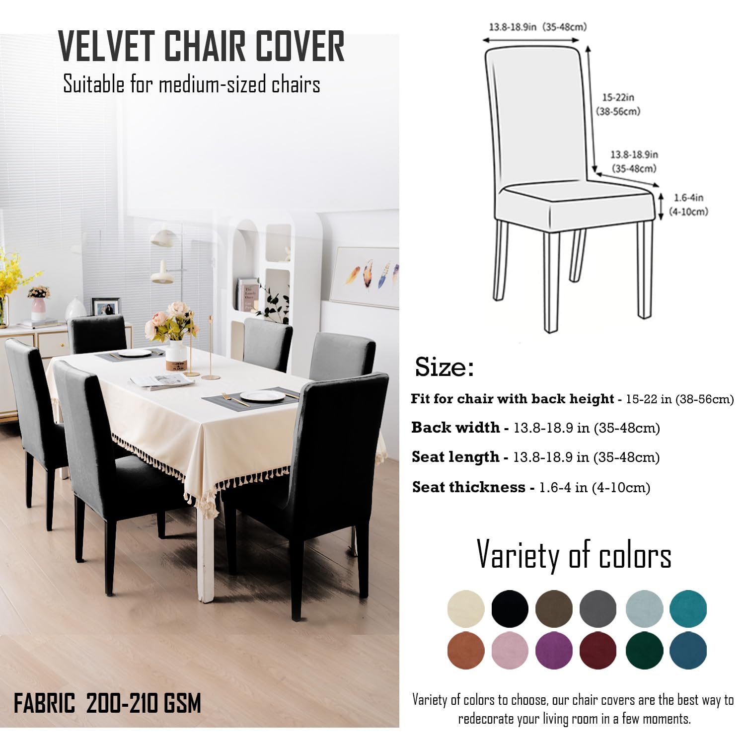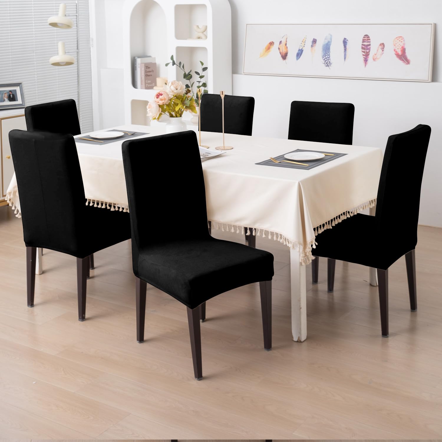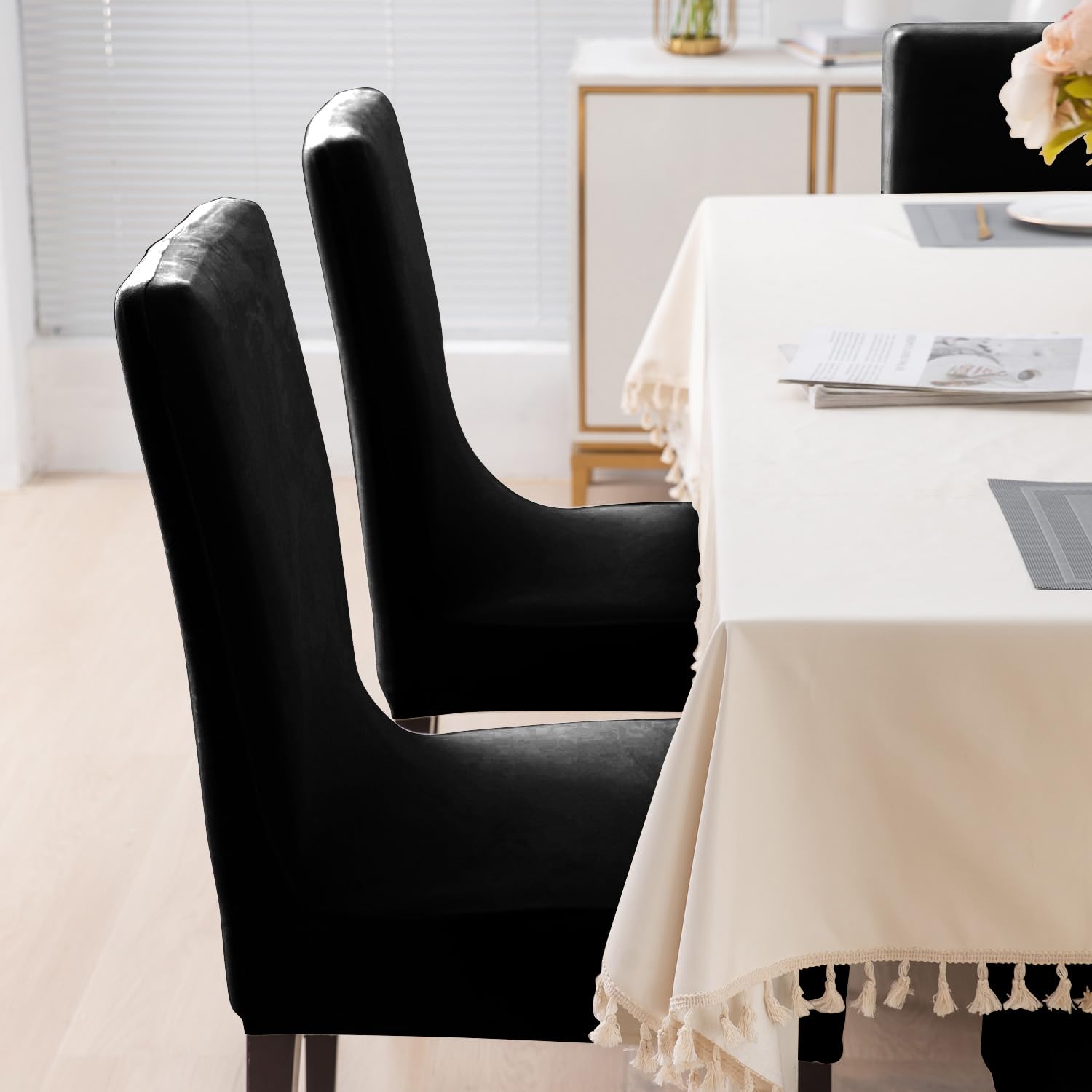 Elastic Stretchable Premium Velvet Dining Chair Cover, Black