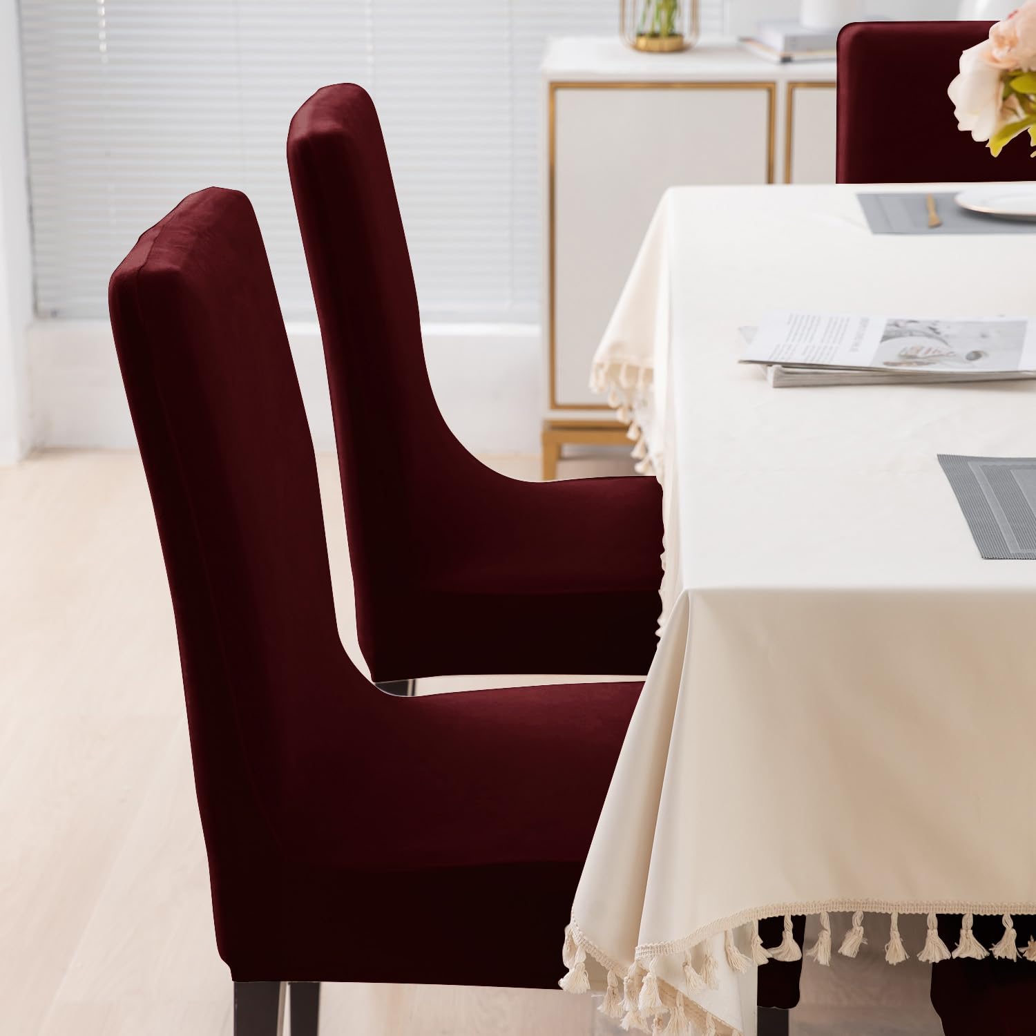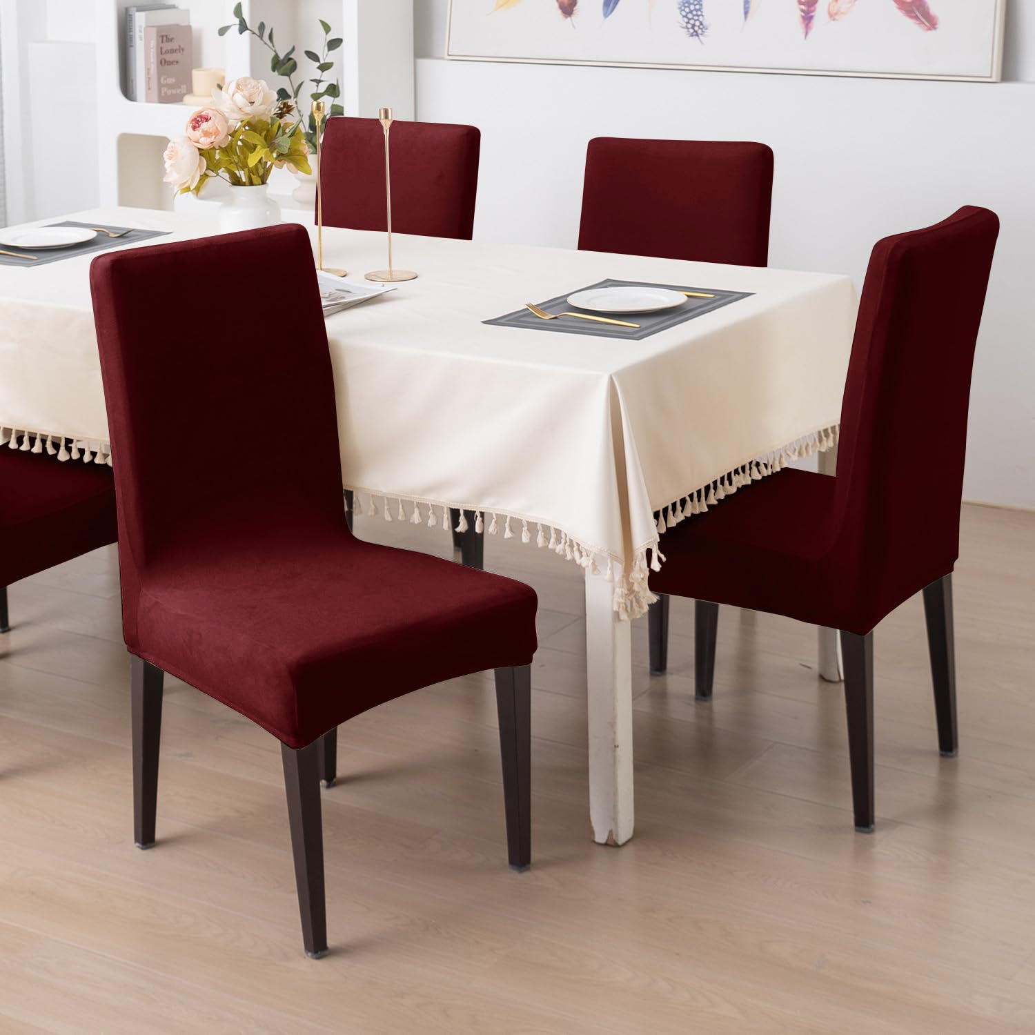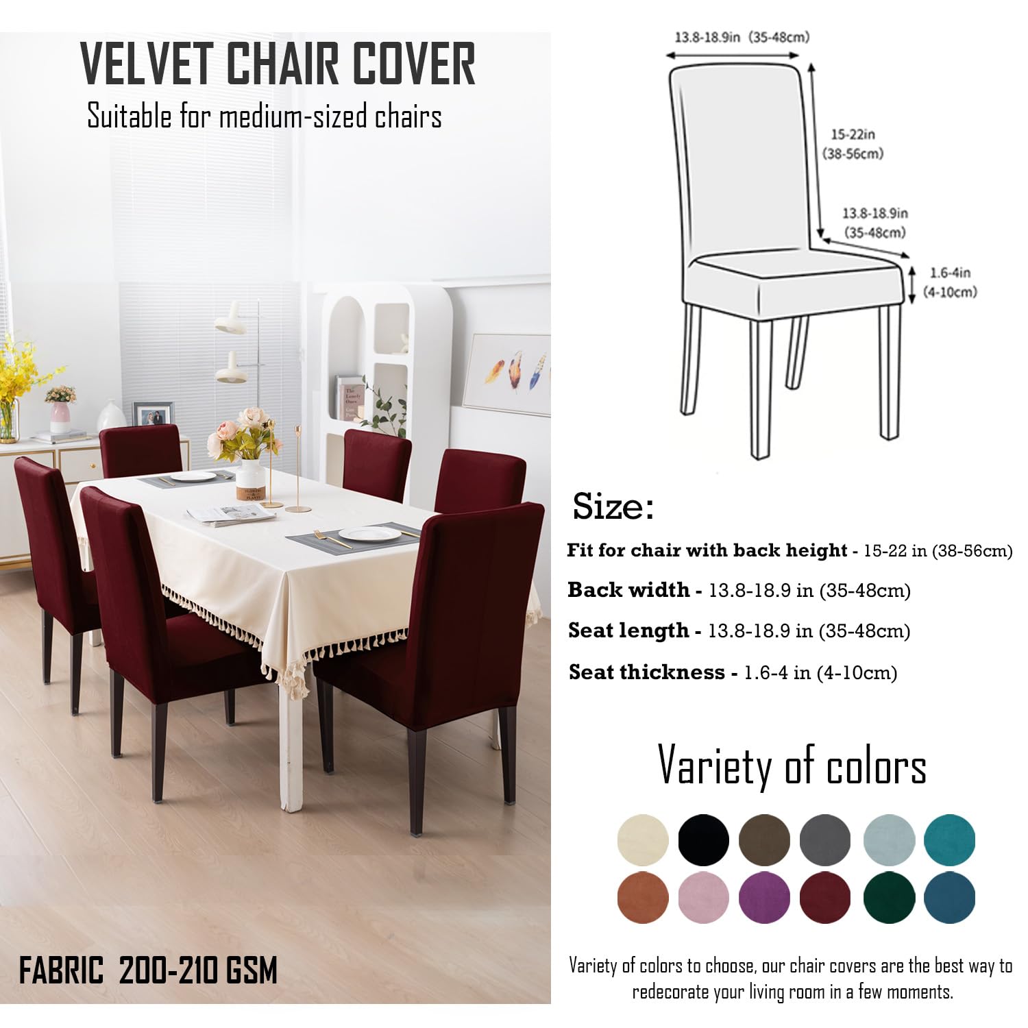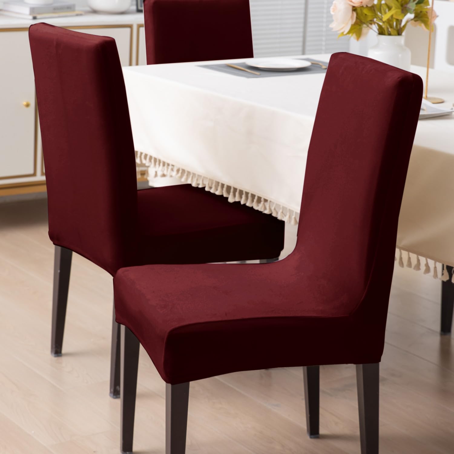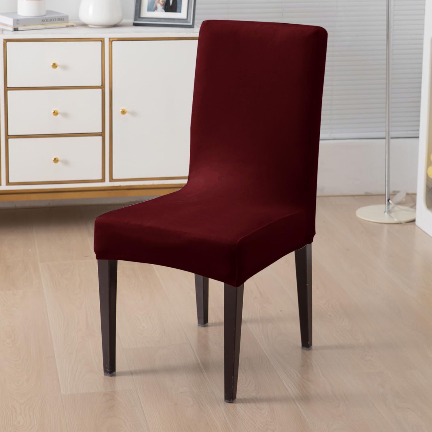 Elastic Stretchable Premium Velvet Dining Chair Cover, Burgundy