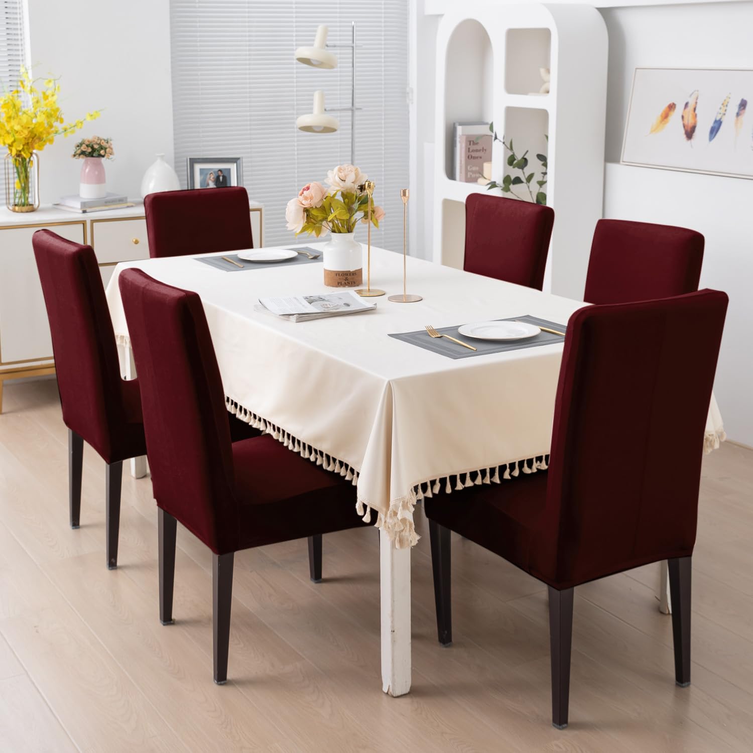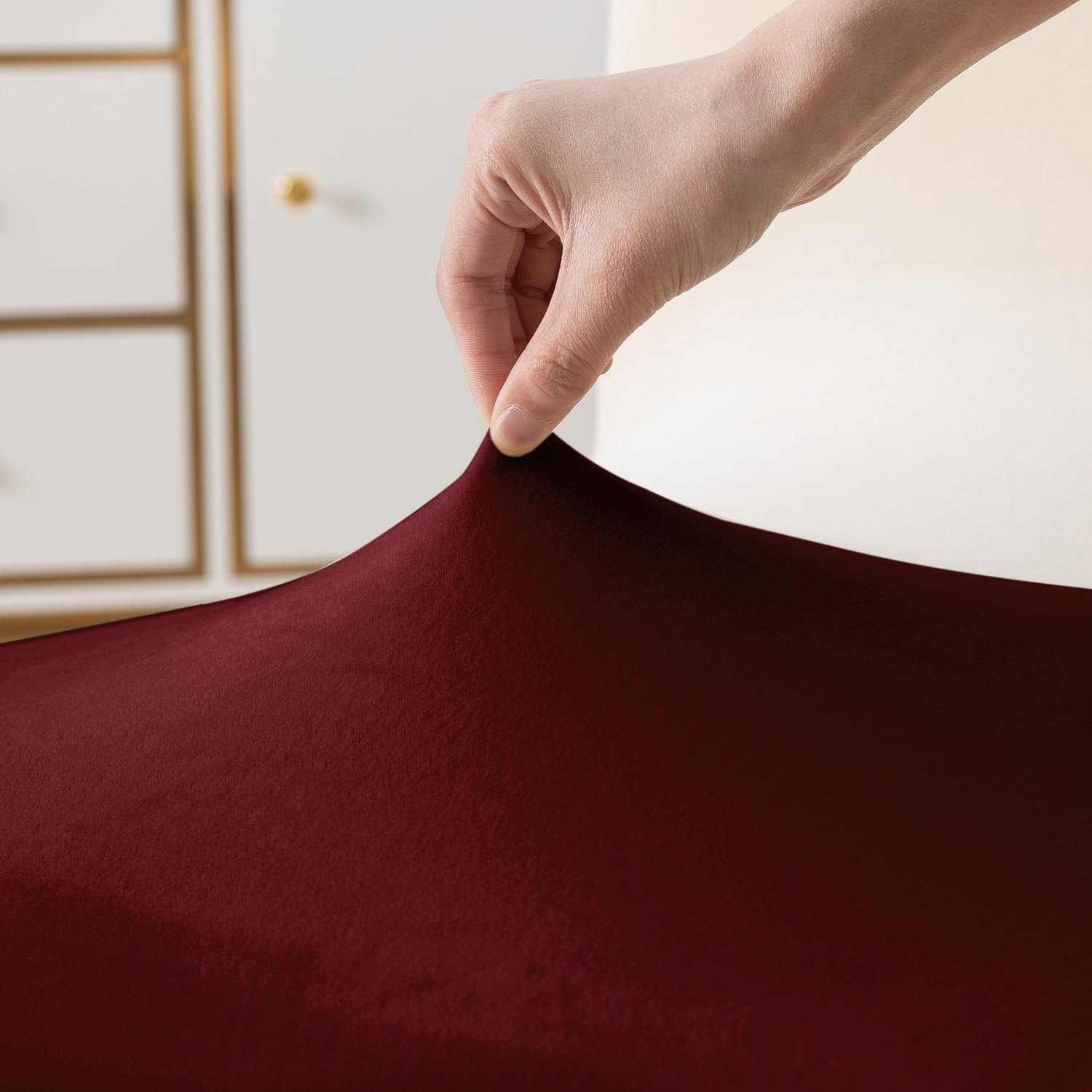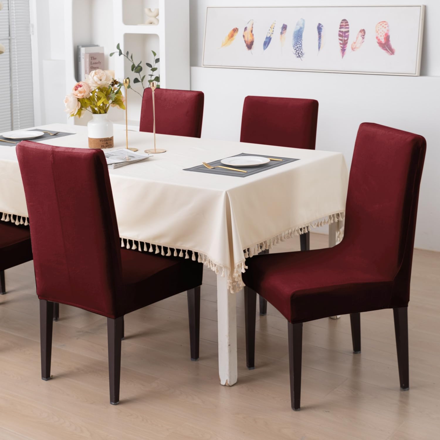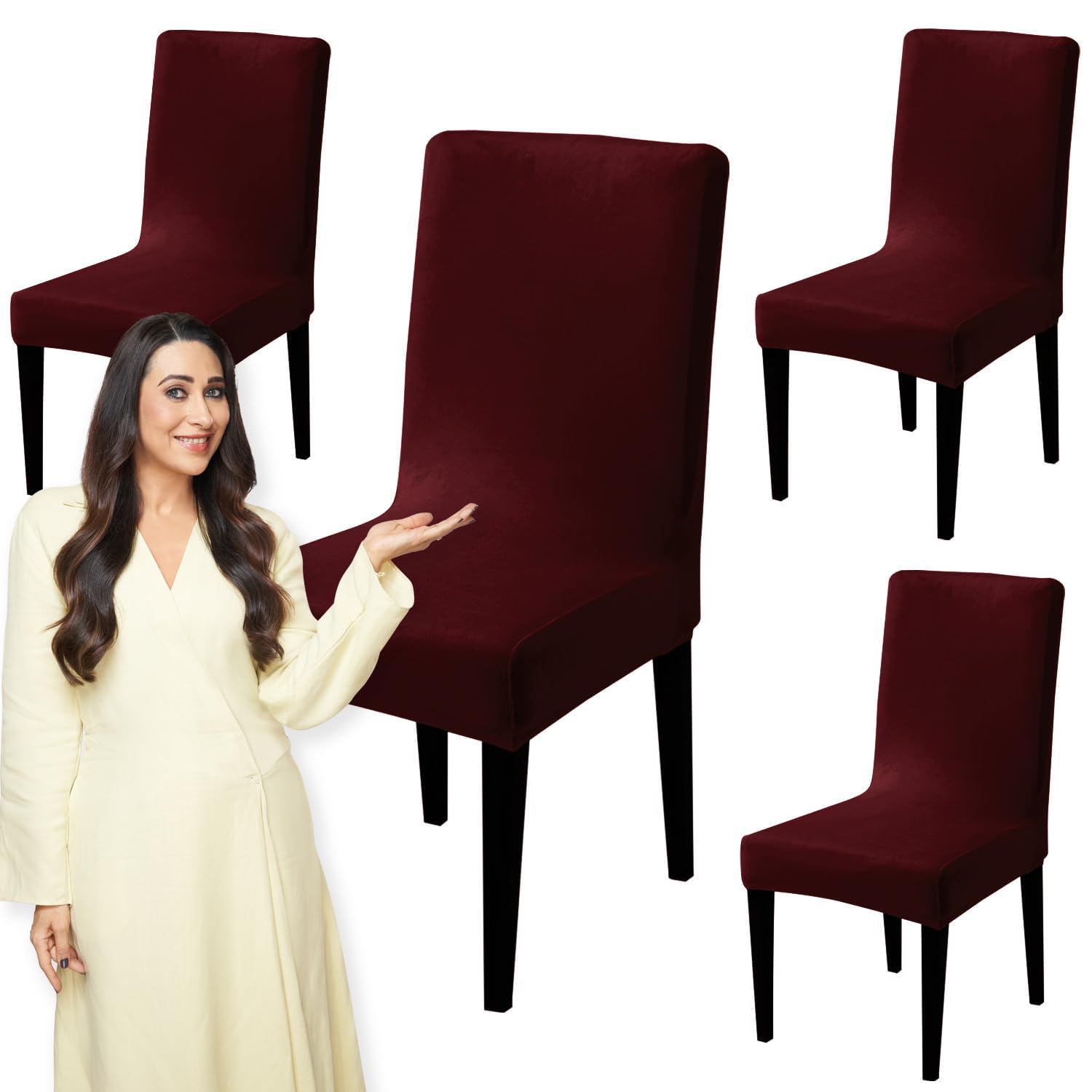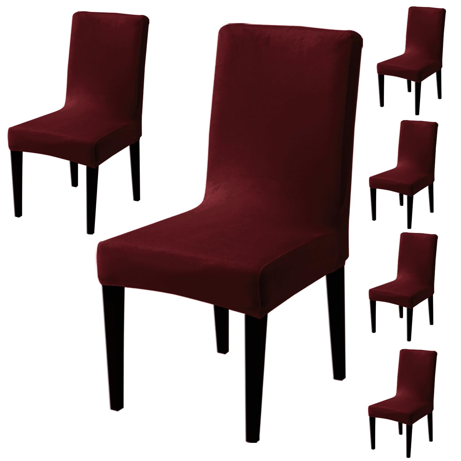 Elastic Stretchable Premium Velvet Dining Chair Cover, Burgundy