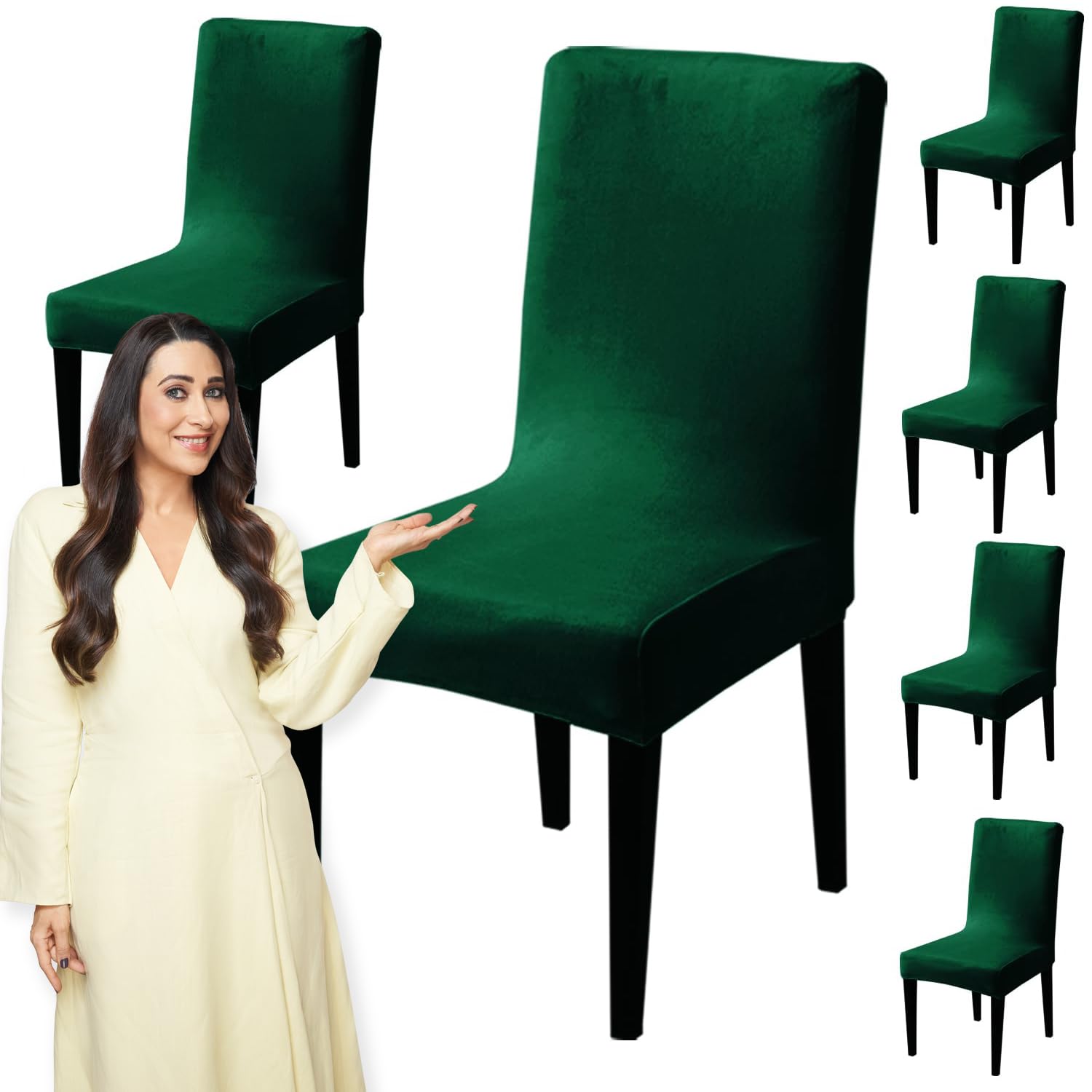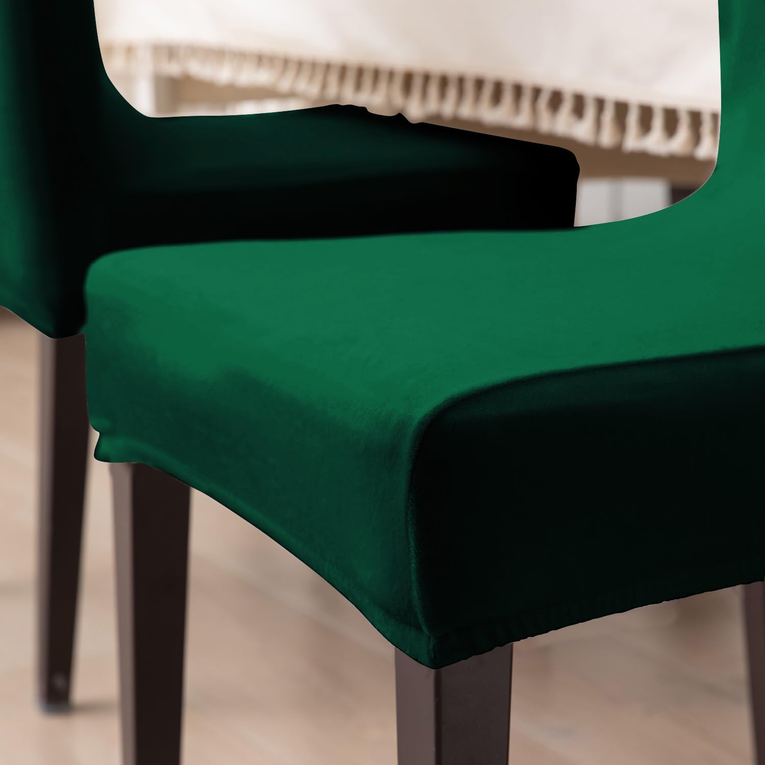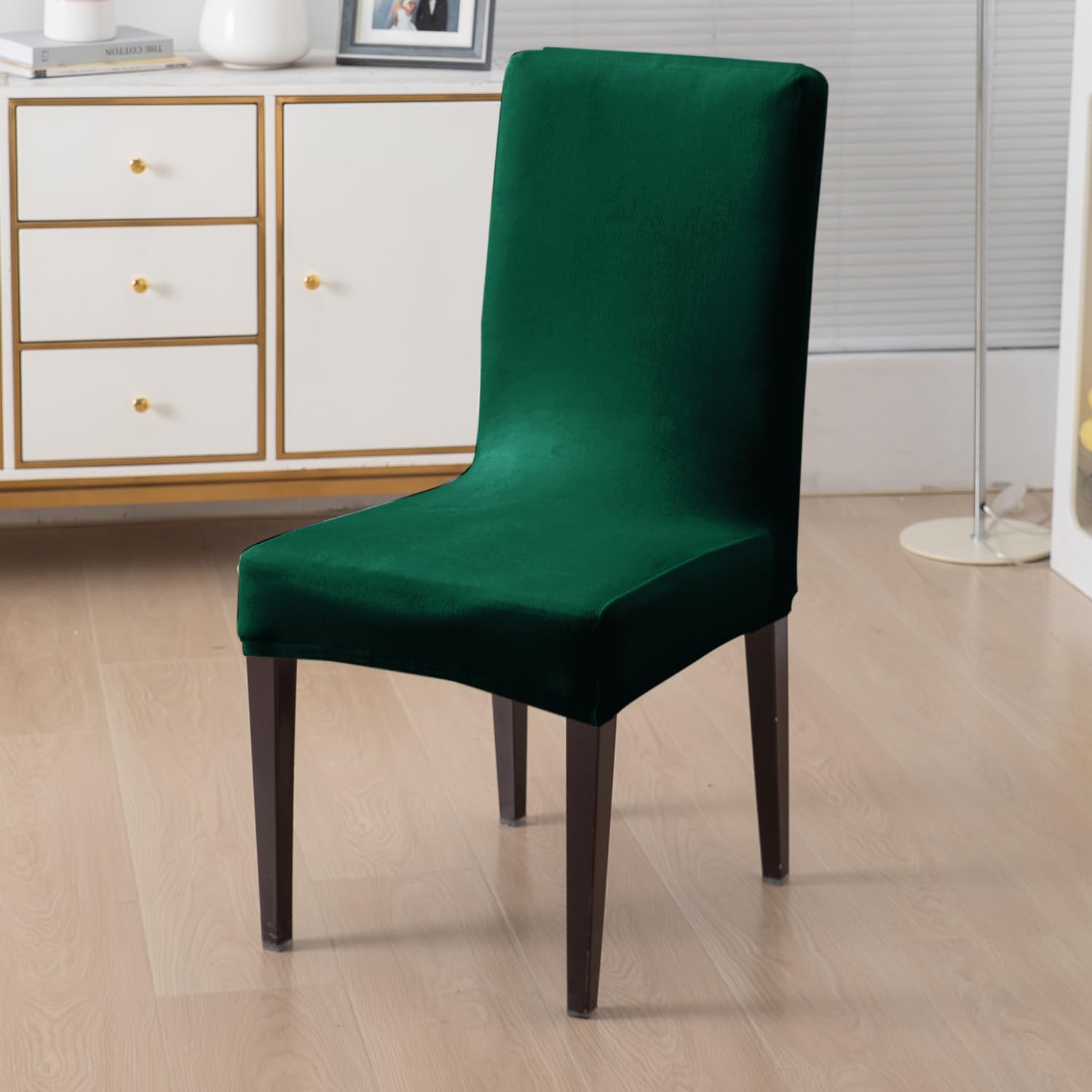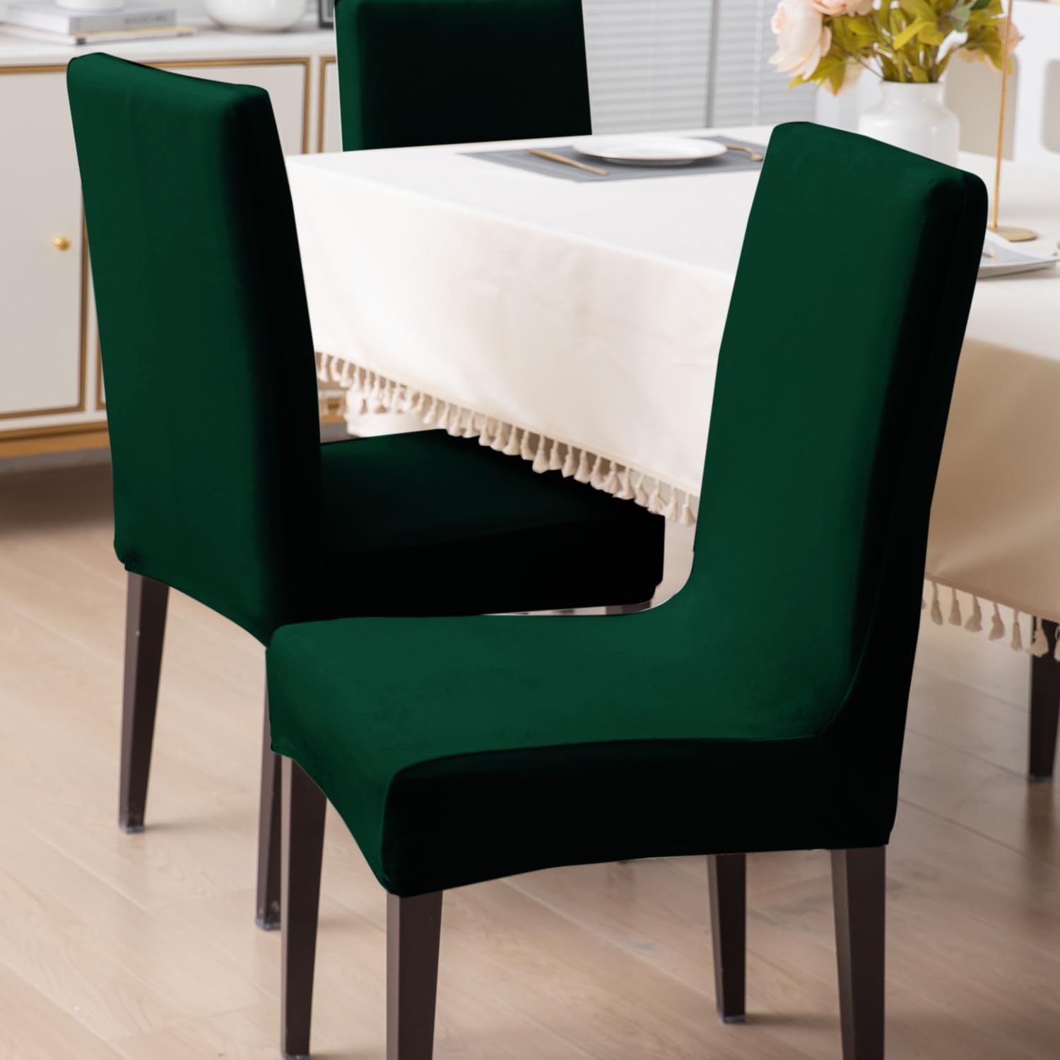 Elastic Stretchable Premium Velvet Dining Chair Cover, Hunter Green