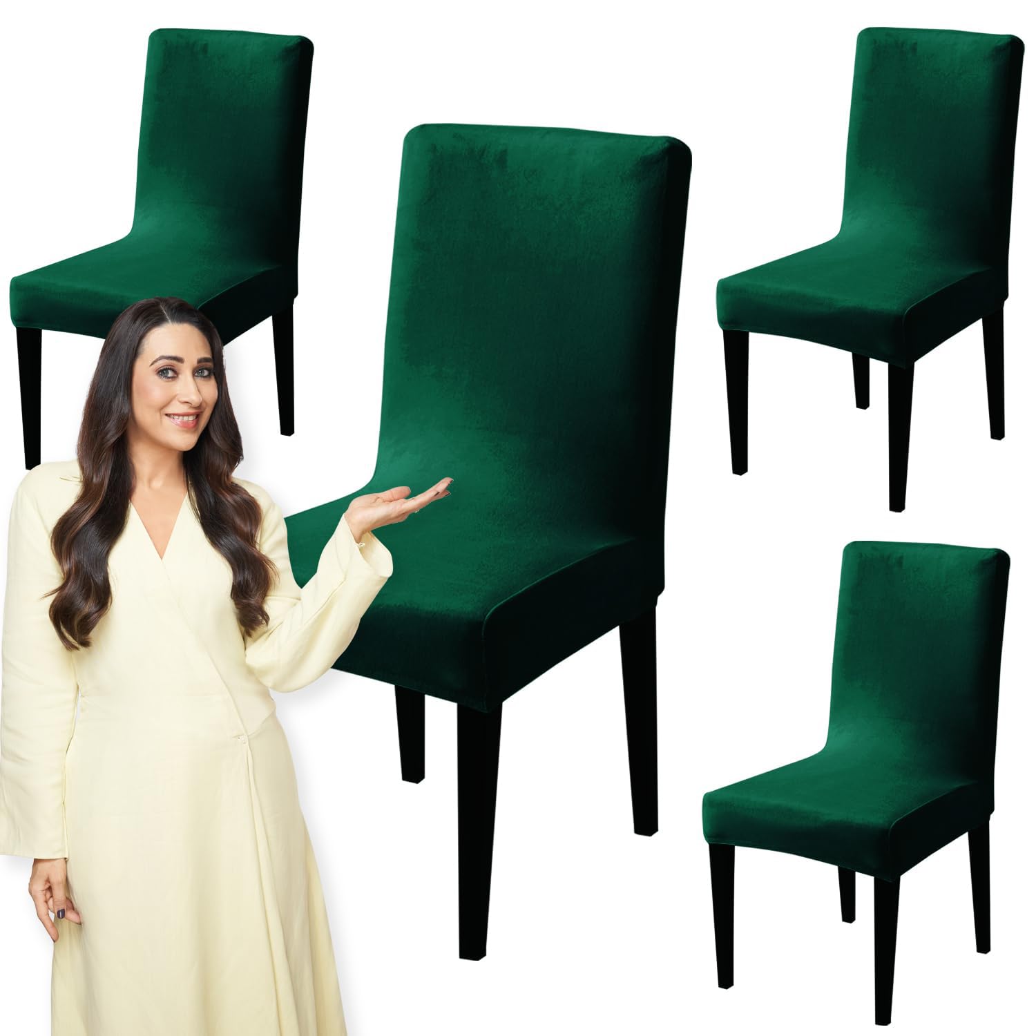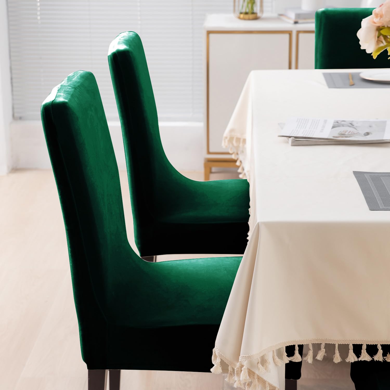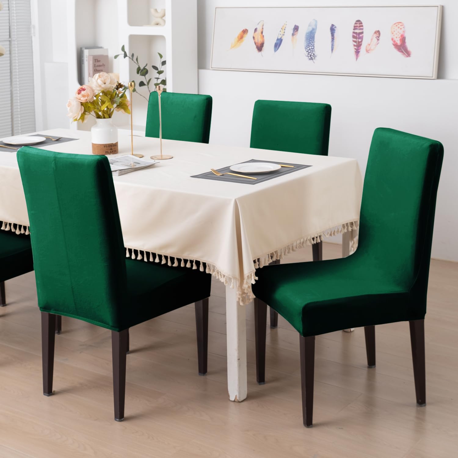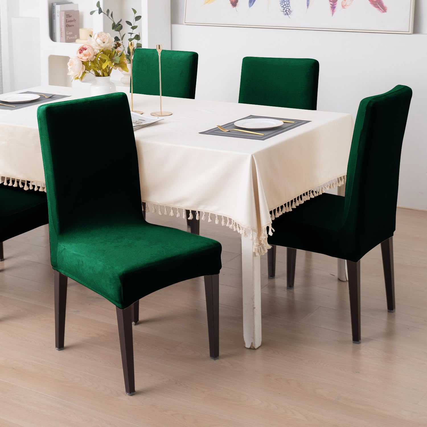 Elastic Stretchable Premium Velvet Dining Chair Cover, Hunter Green