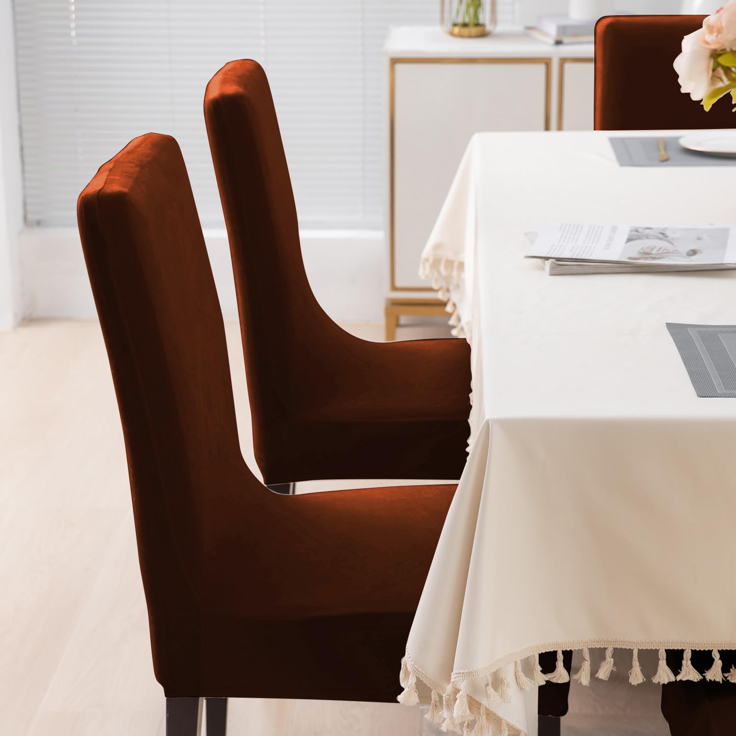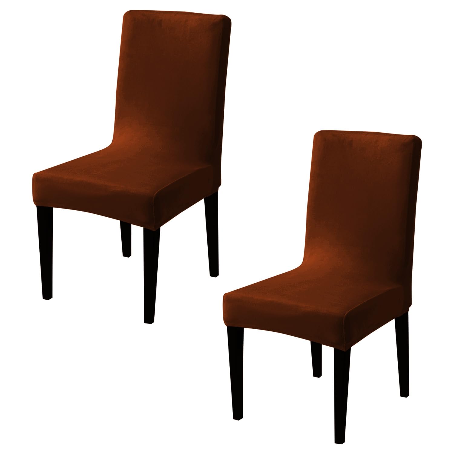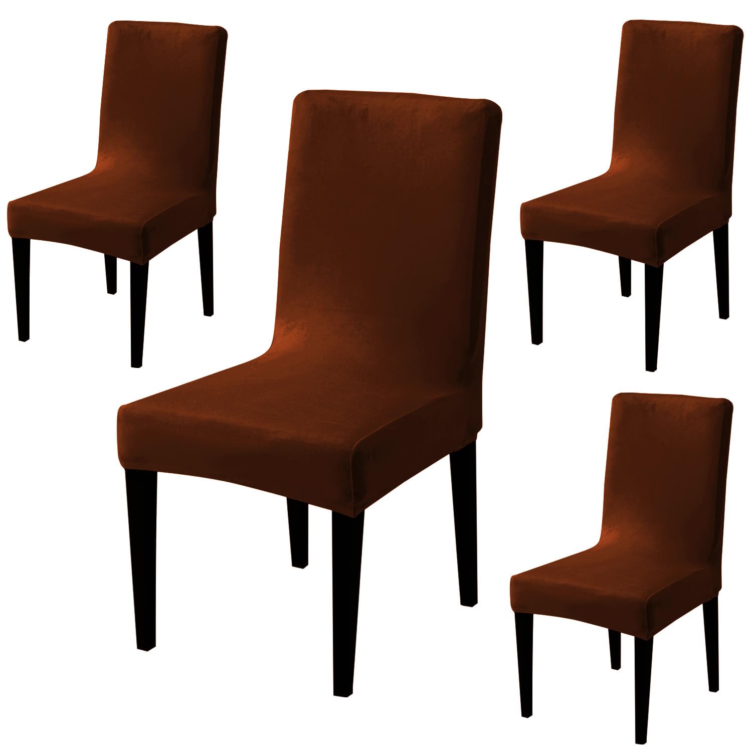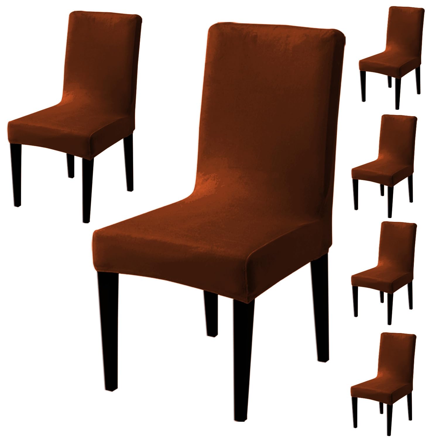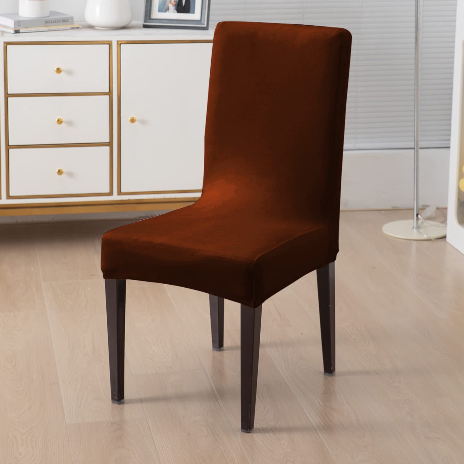 Elastic Stretchable Premium Velvet Dining Chair Cover, Rustic Brown