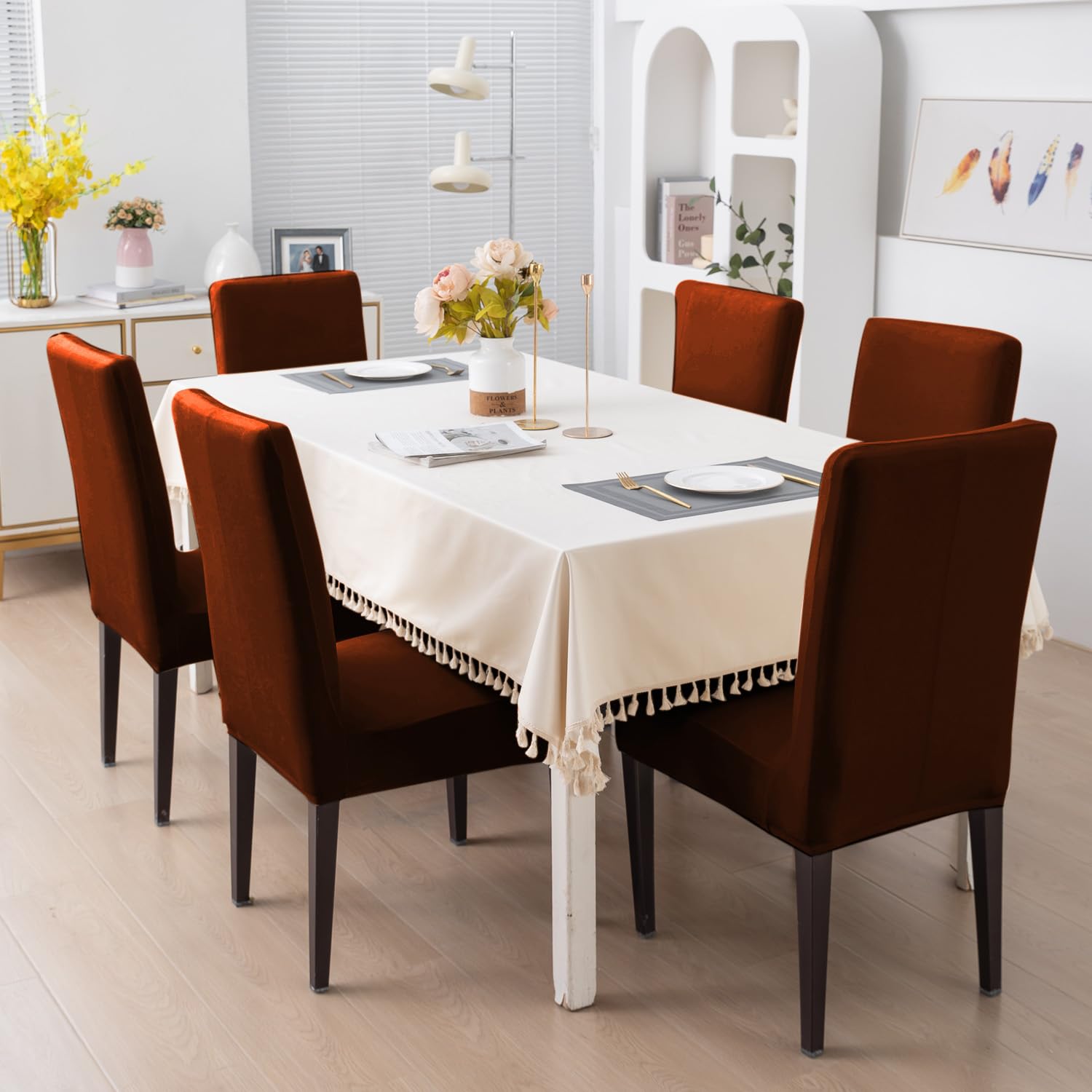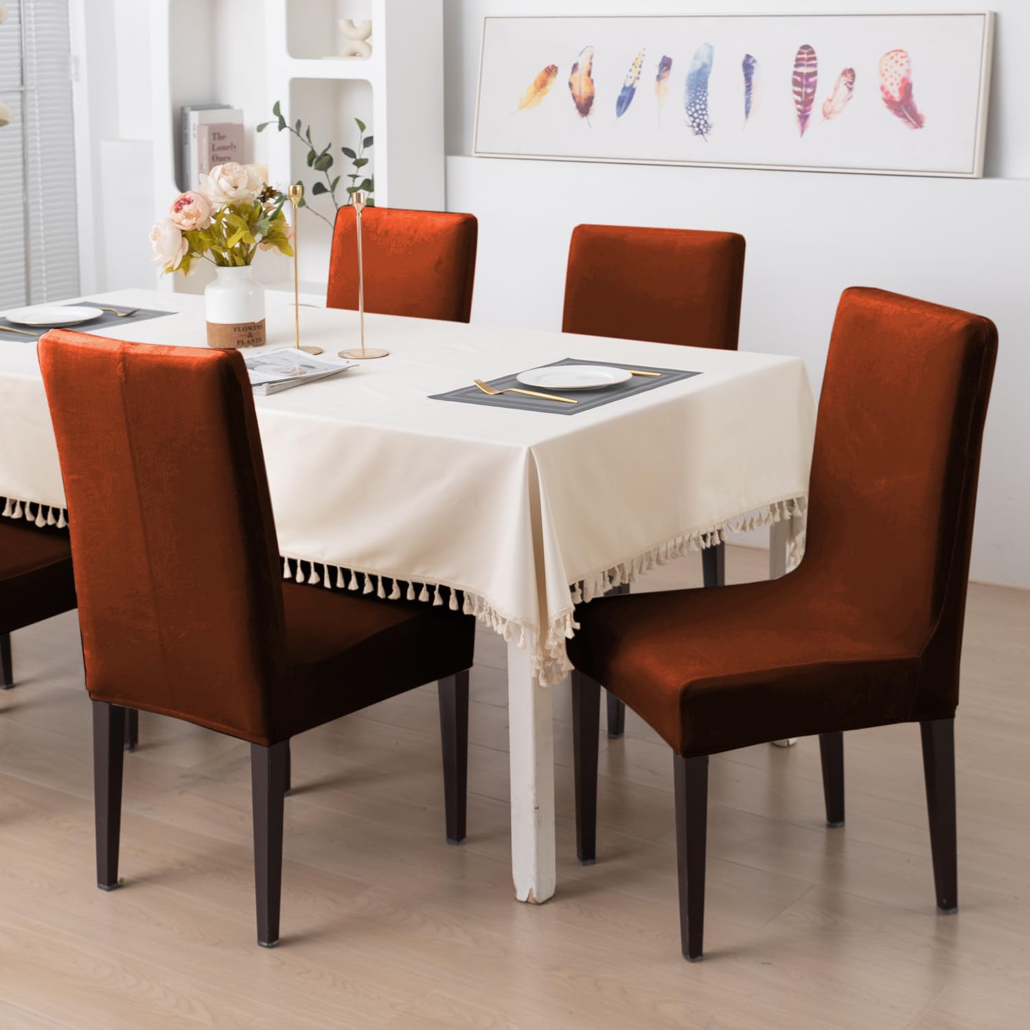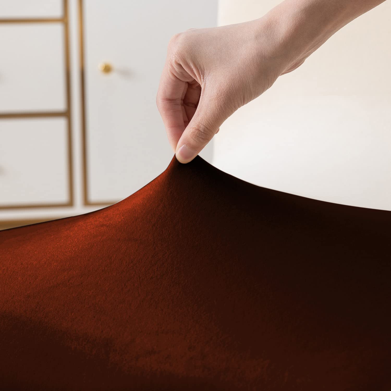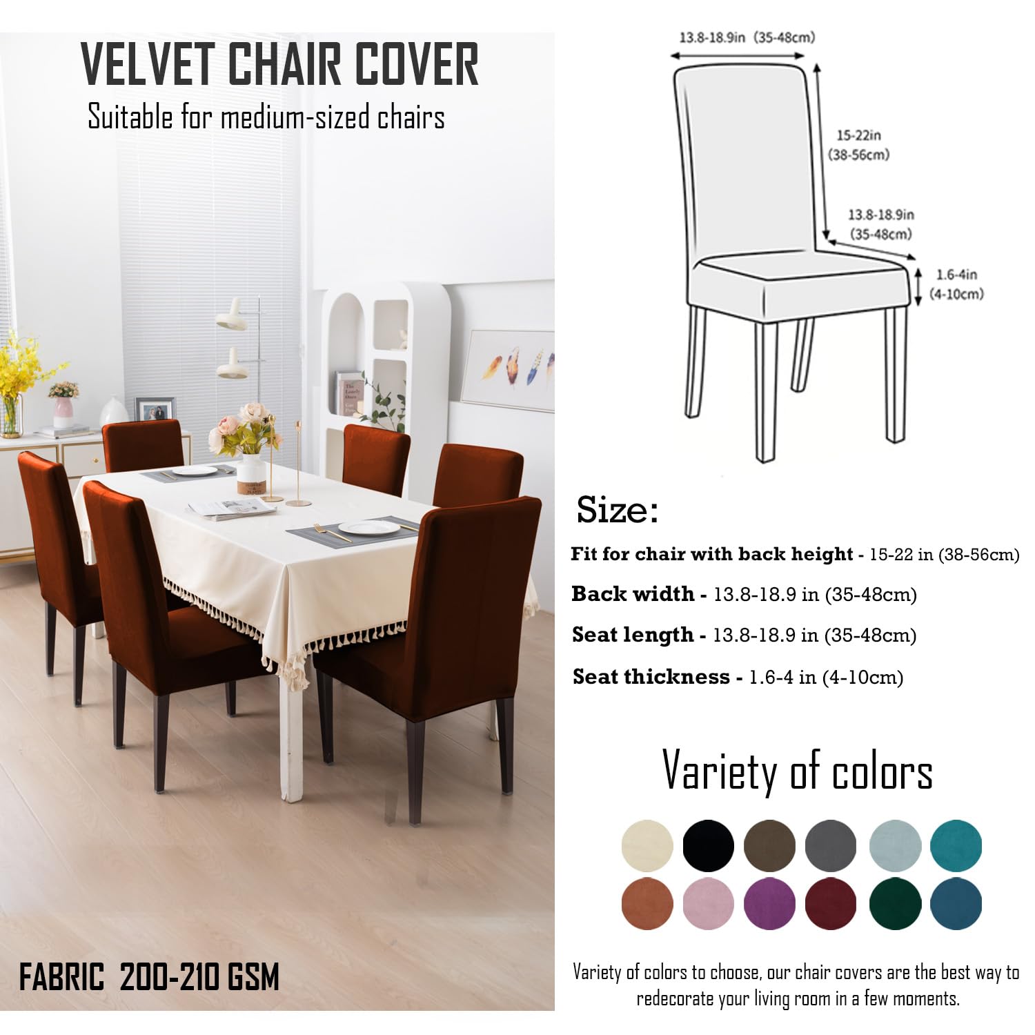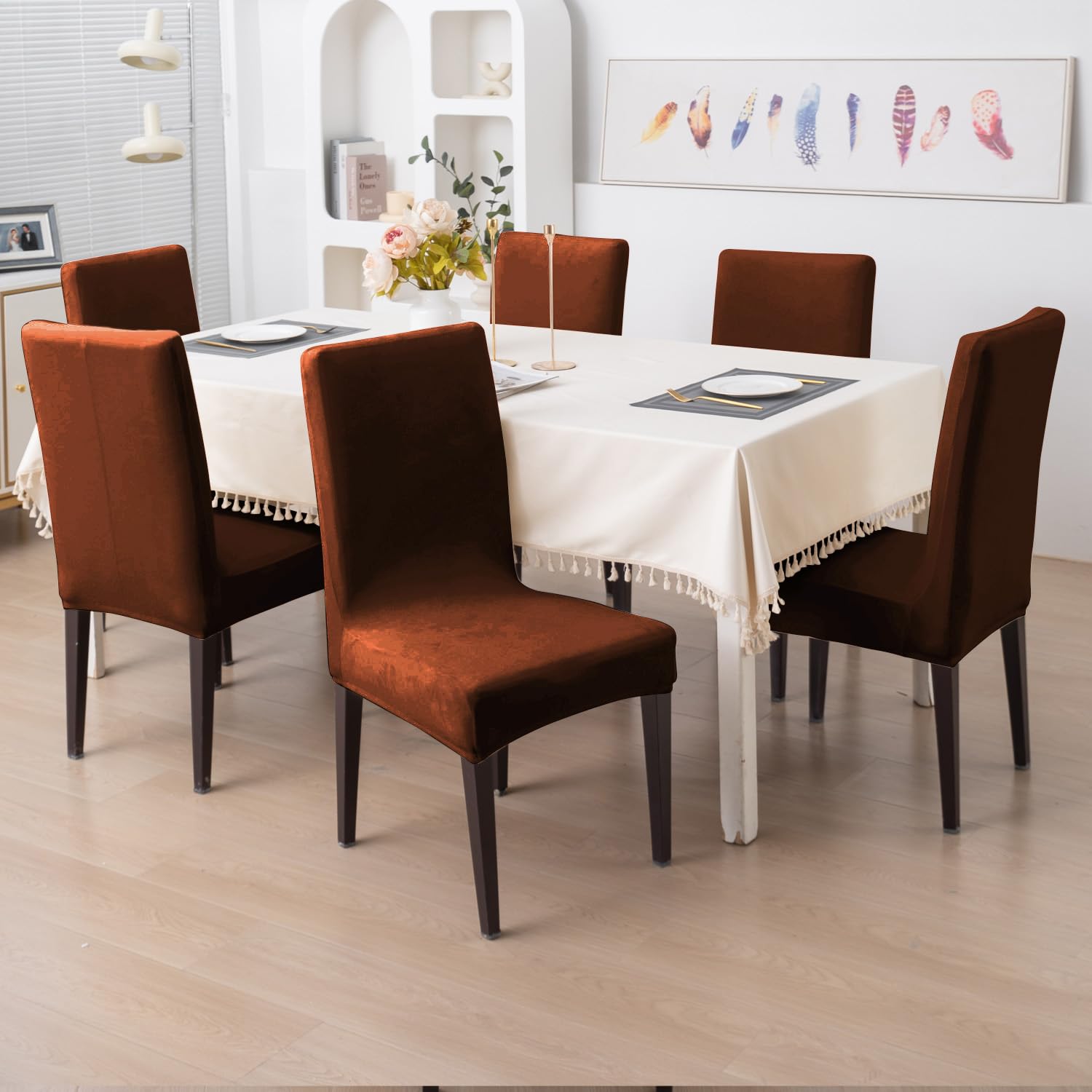 Elastic Stretchable Premium Velvet Dining Chair Cover, Rustic Brown