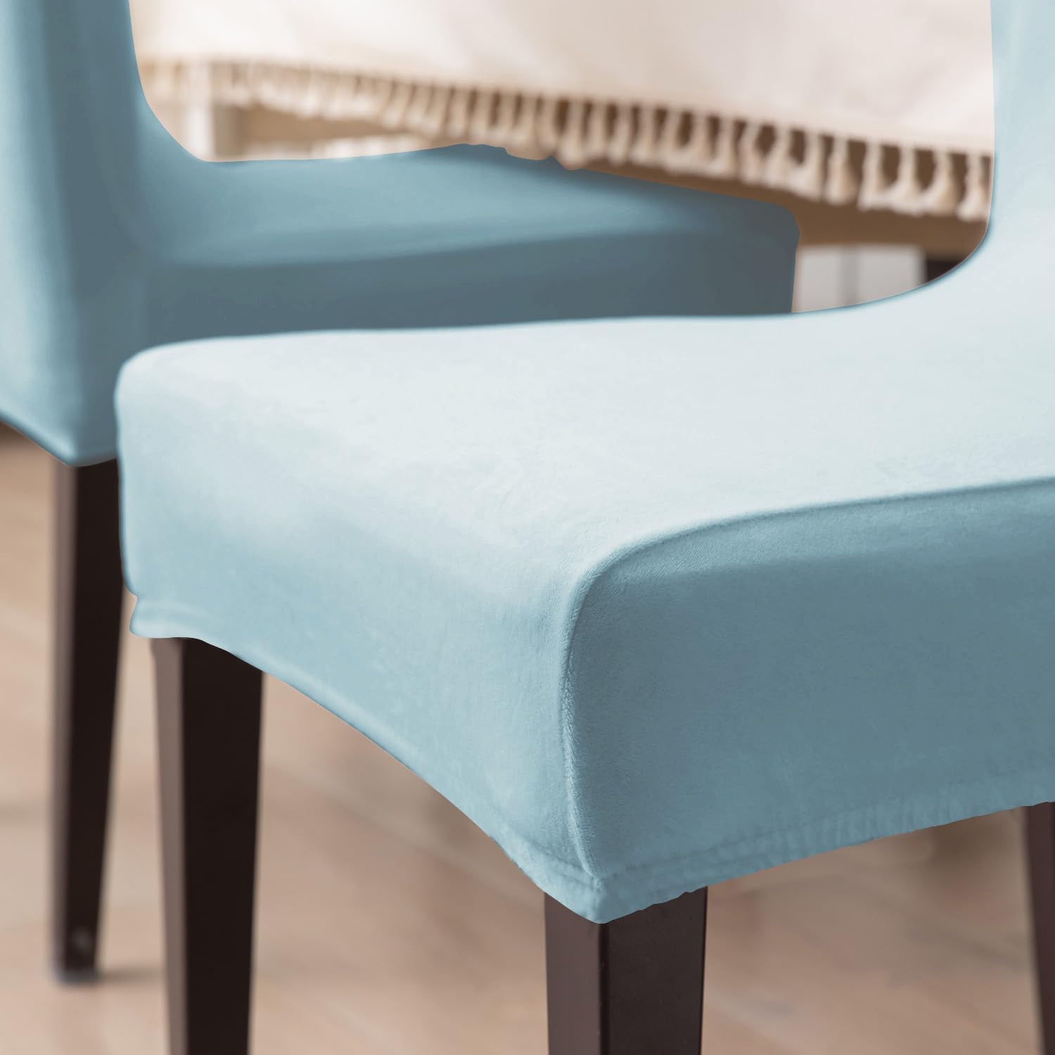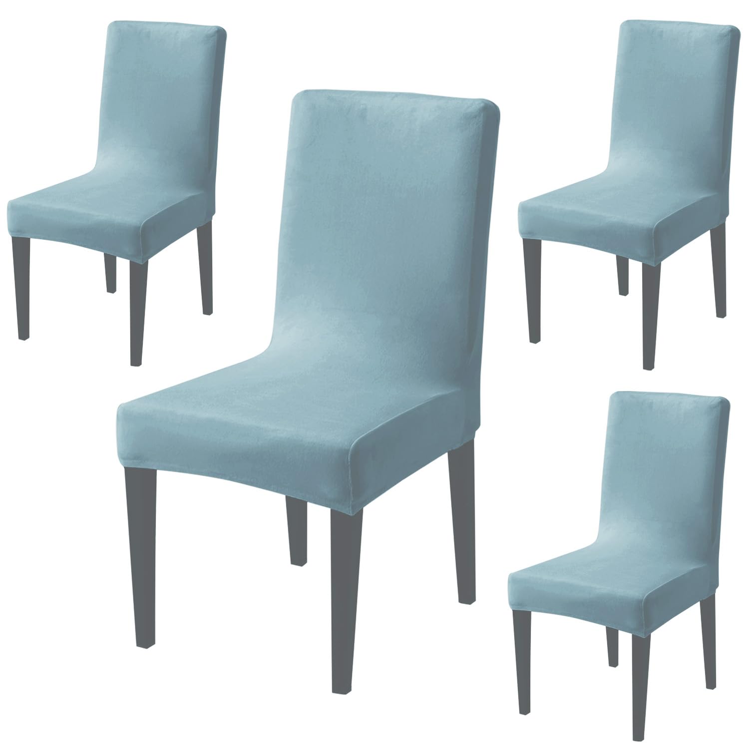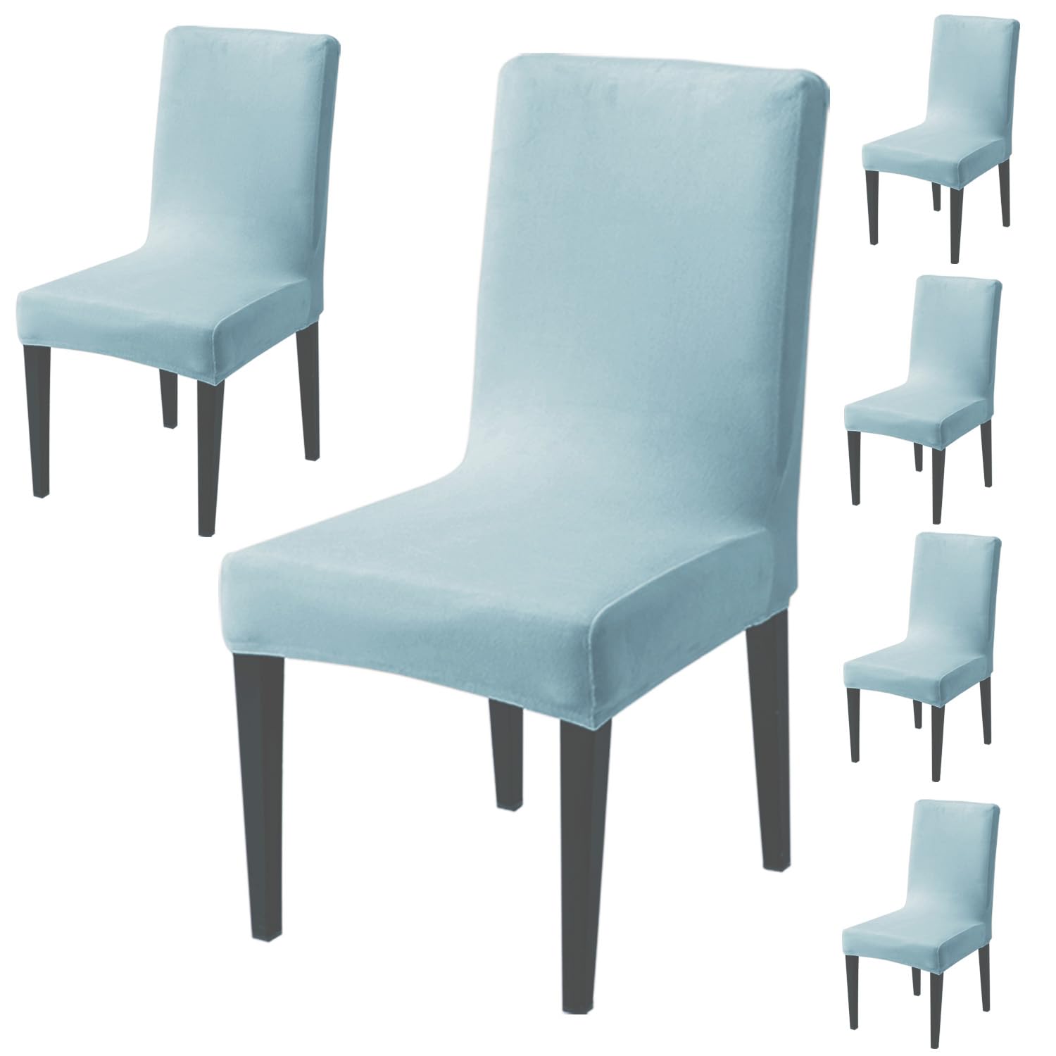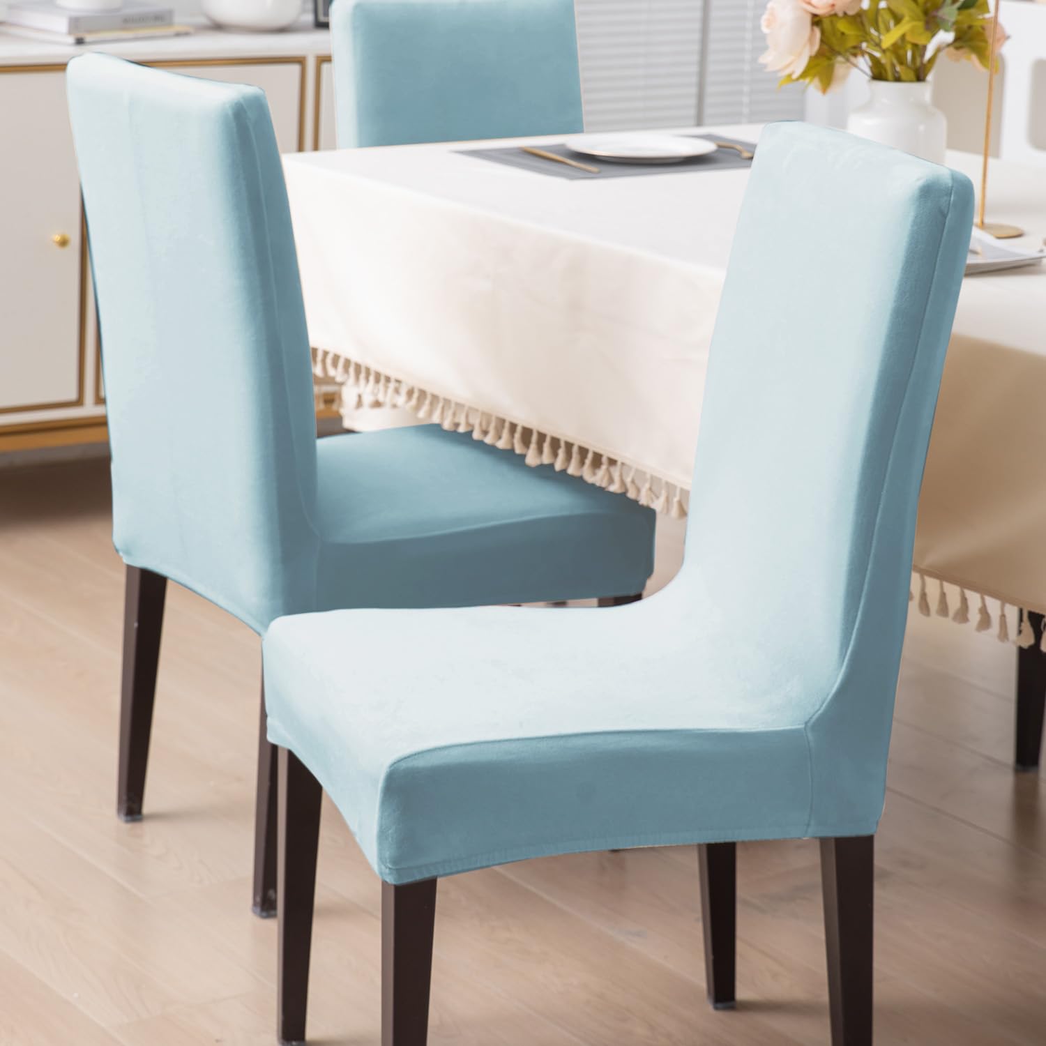 Elastic Stretchable Premium Velvet Dining Chair Cover, Sky Blue