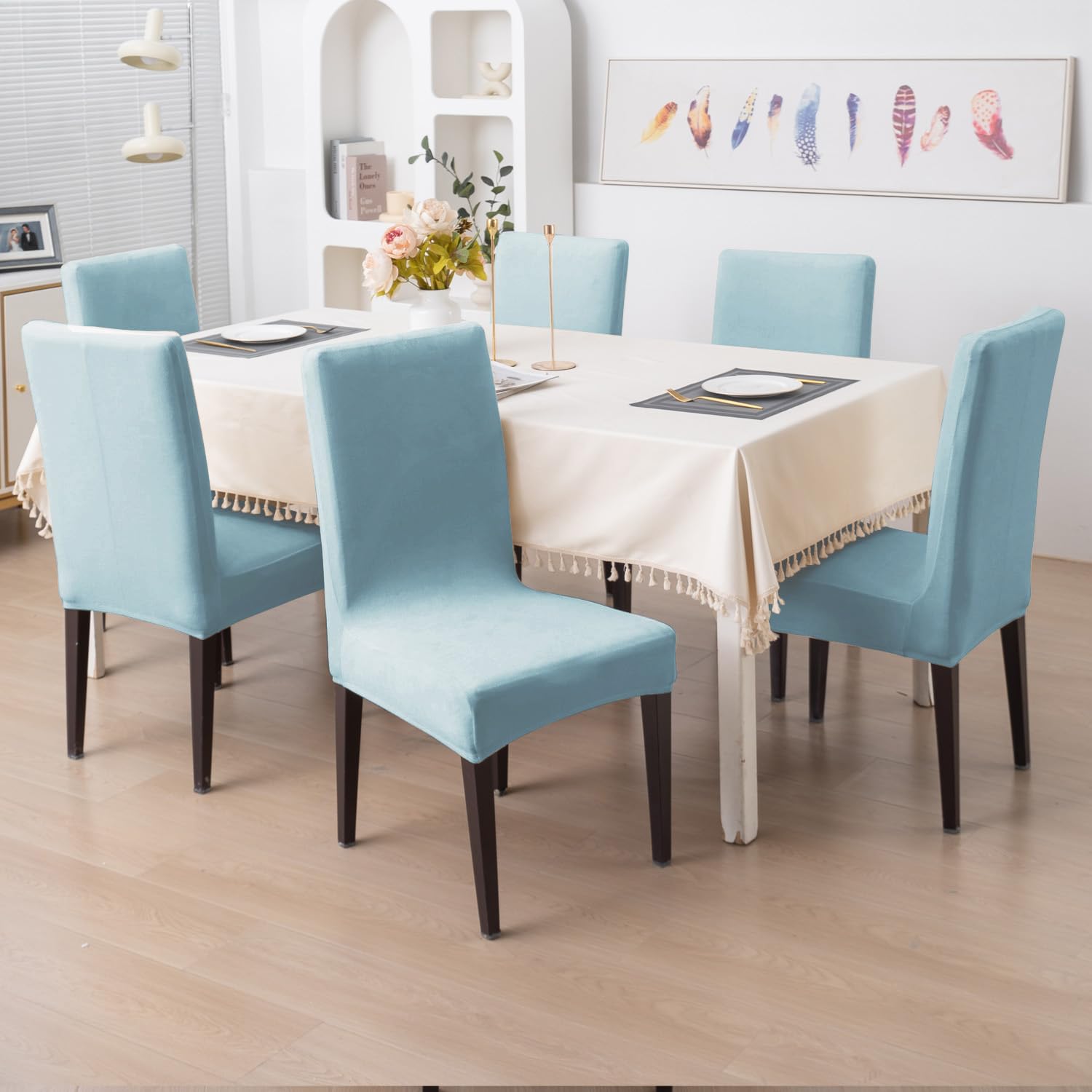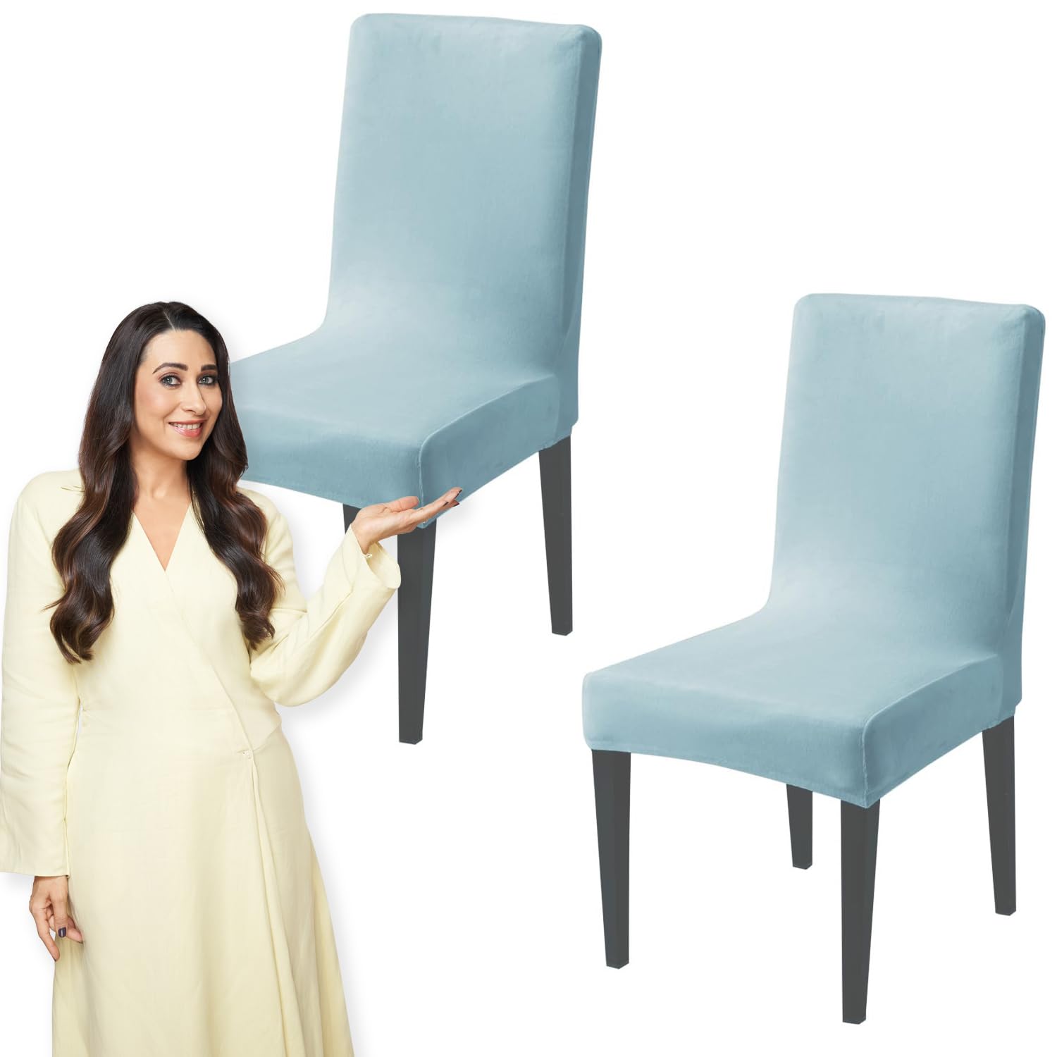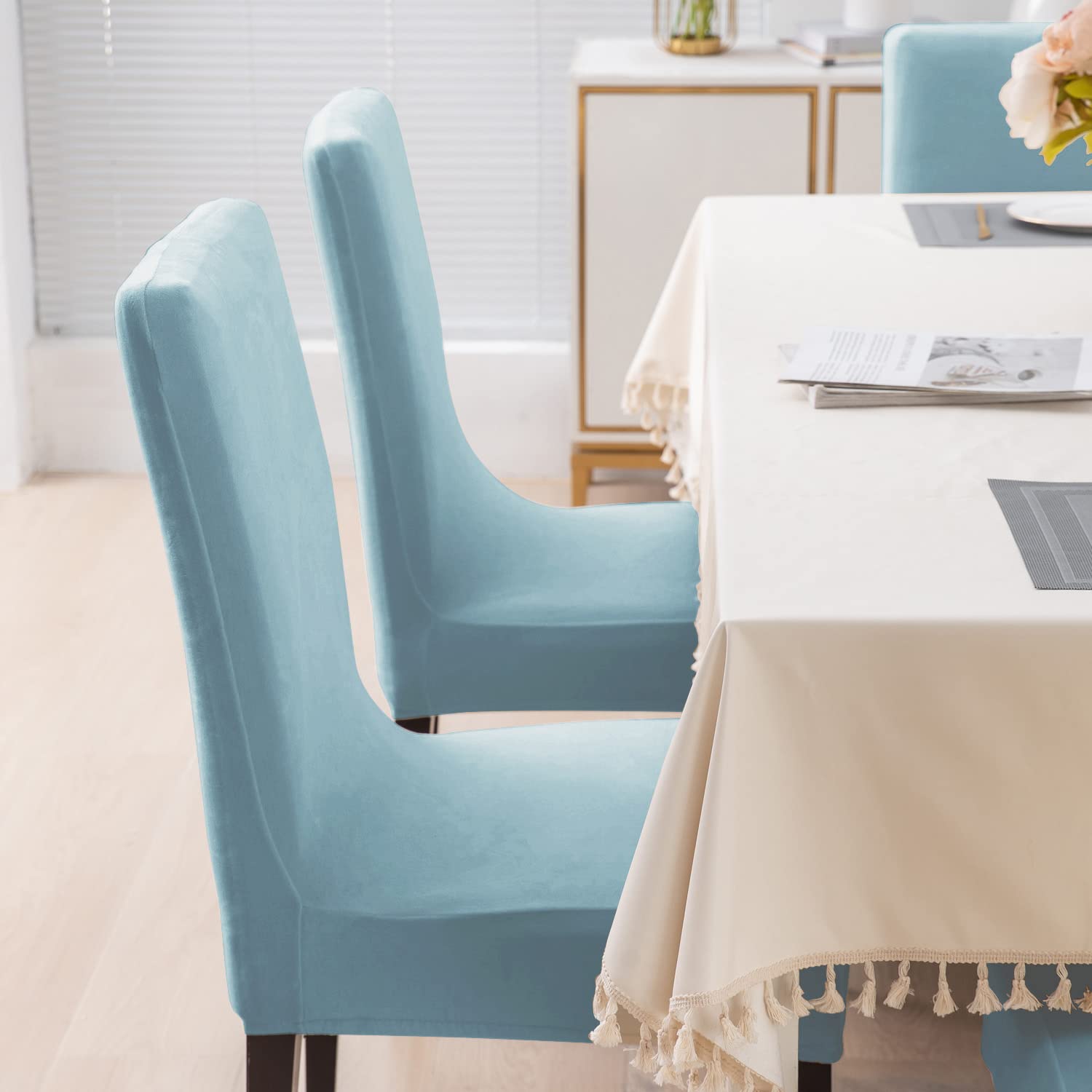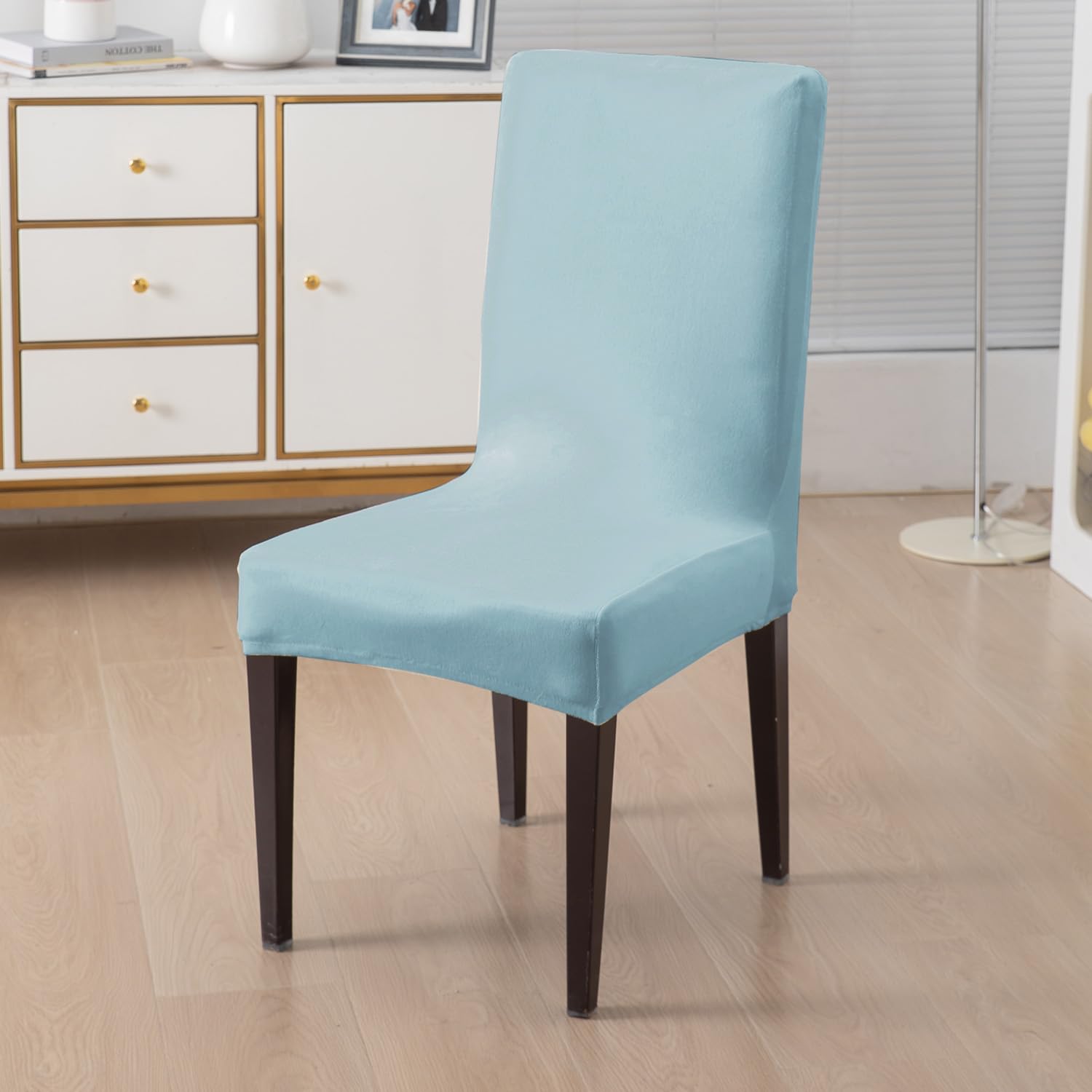 Elastic Stretchable Premium Velvet Dining Chair Cover, Sky Blue