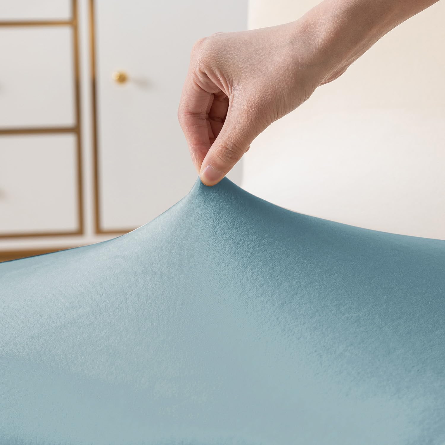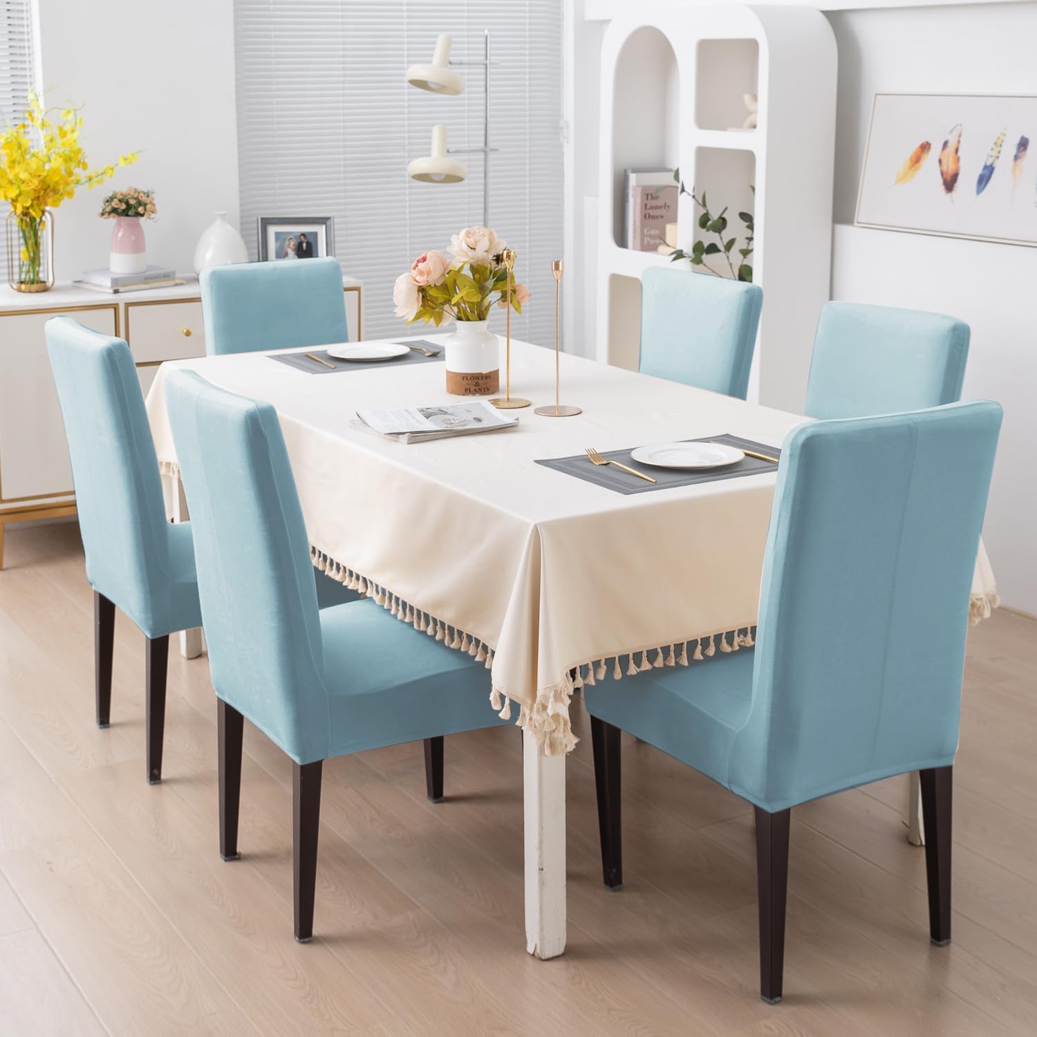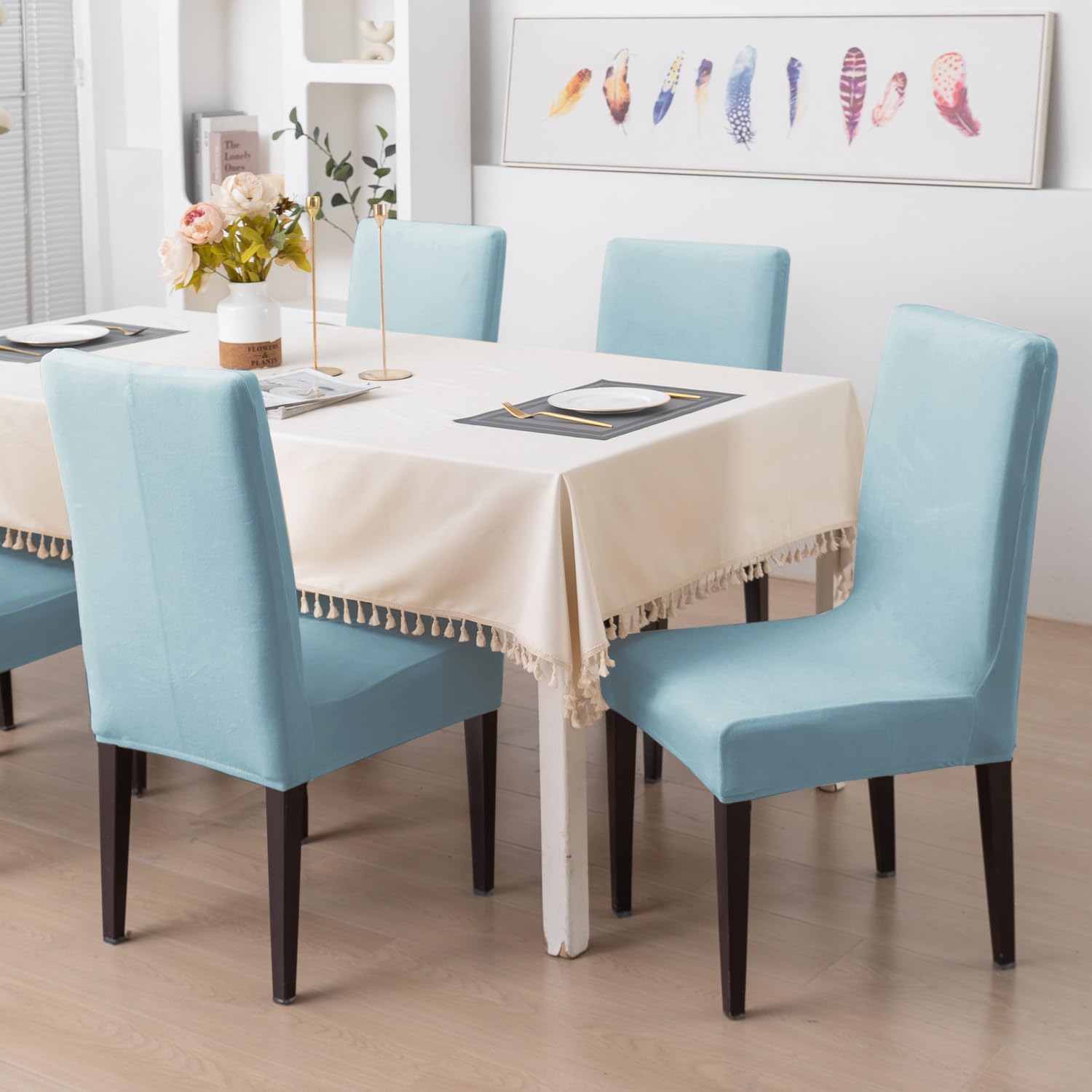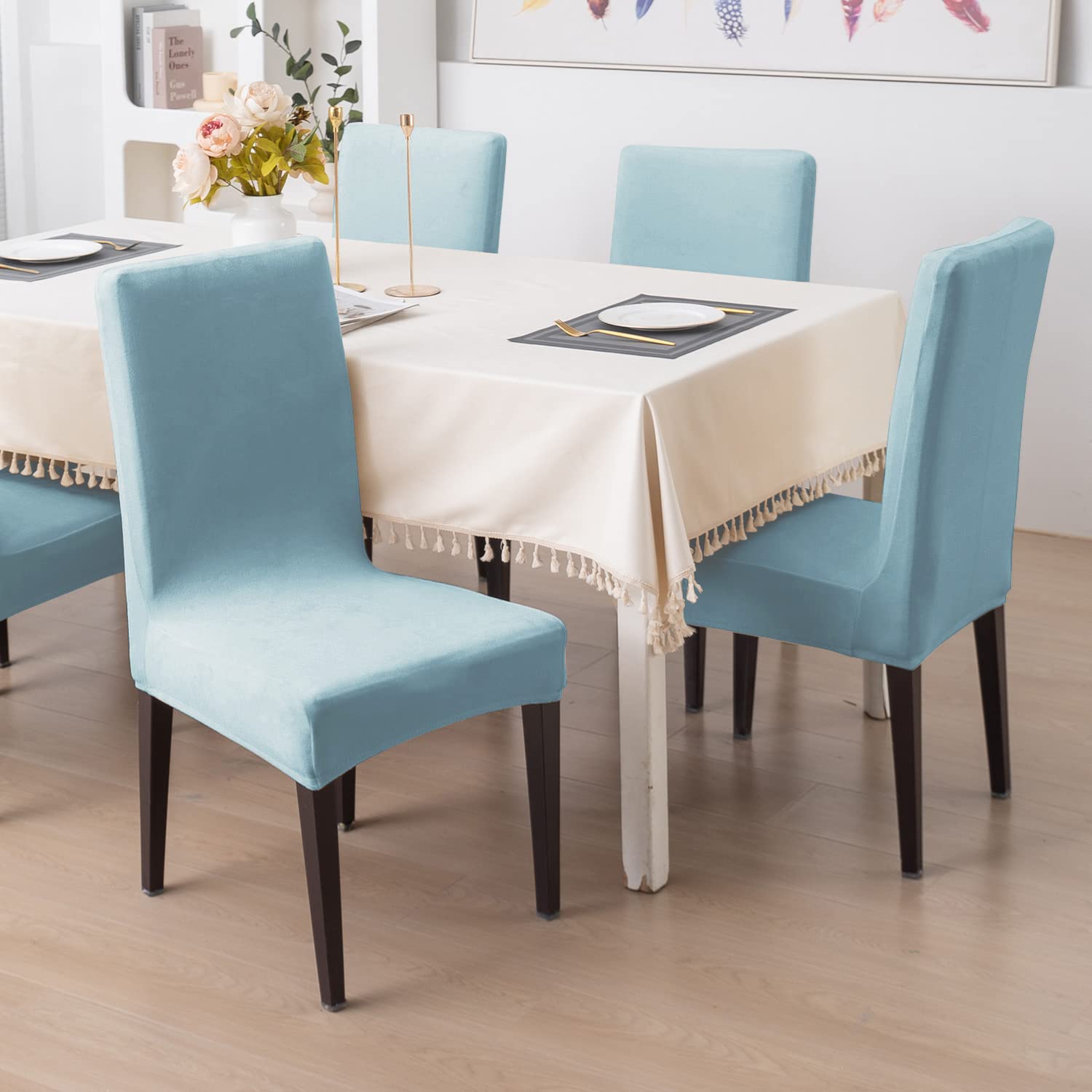 Elastic Stretchable Premium Velvet Dining Chair Cover, Sky Blue