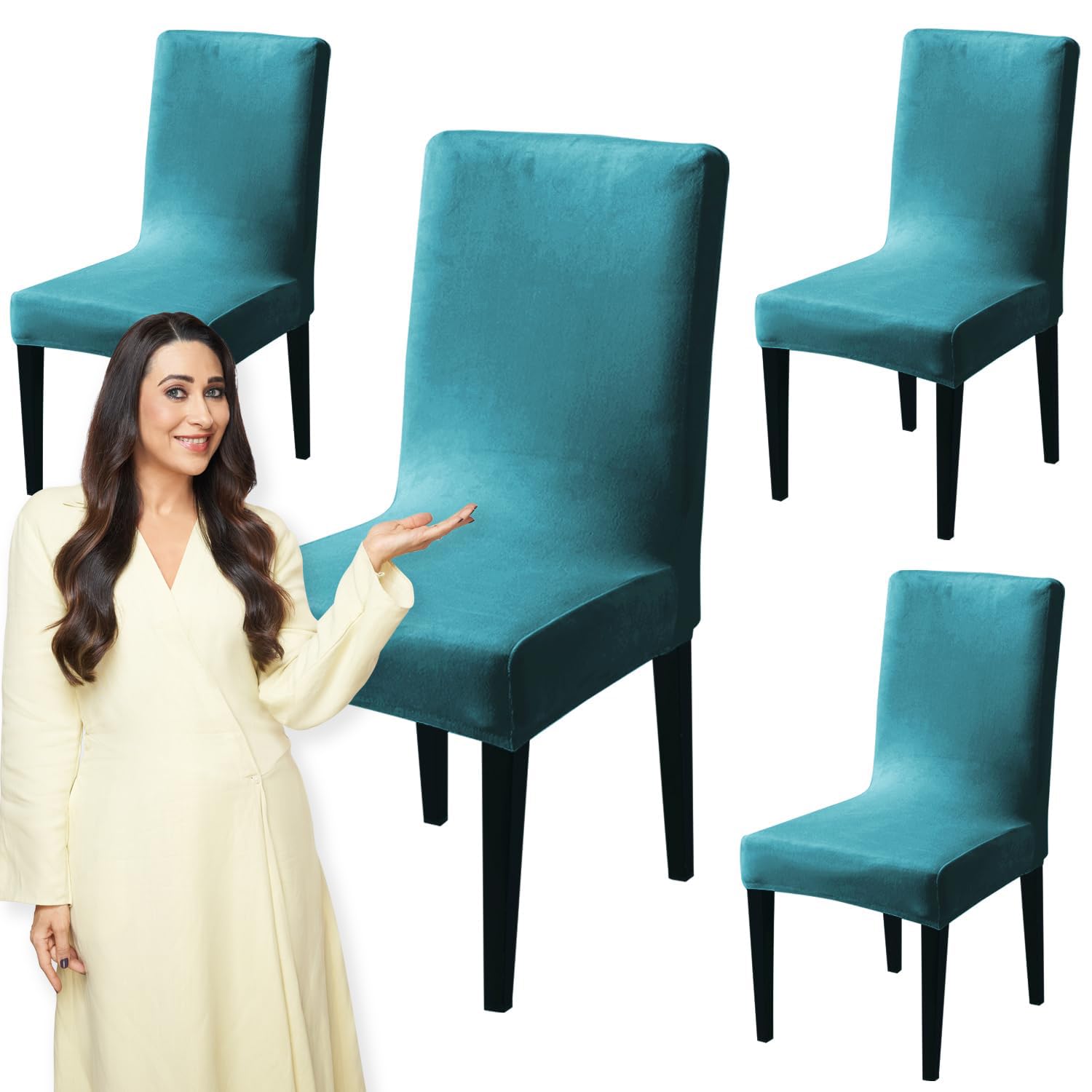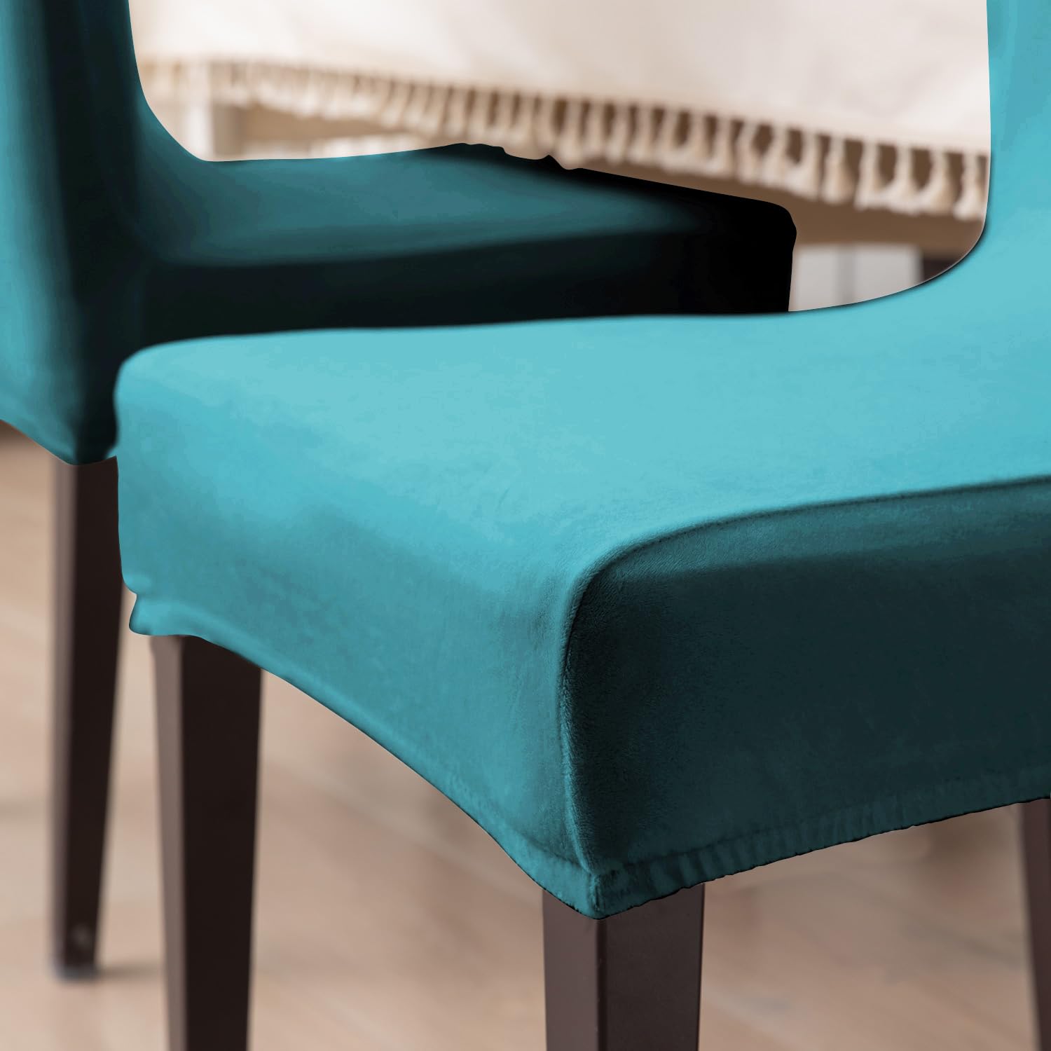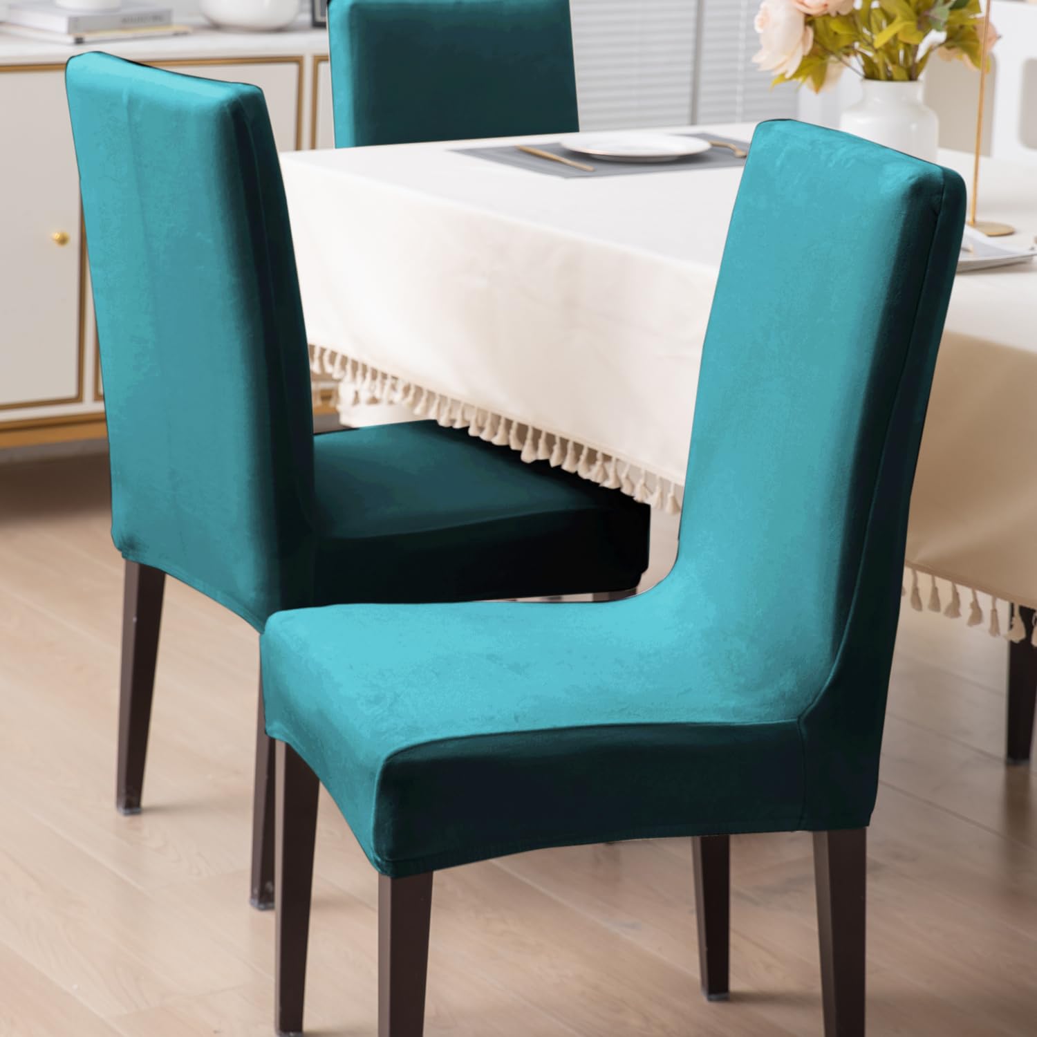 Elastic Stretchable Premium Velvet Dining Chair Cover, Turquoise