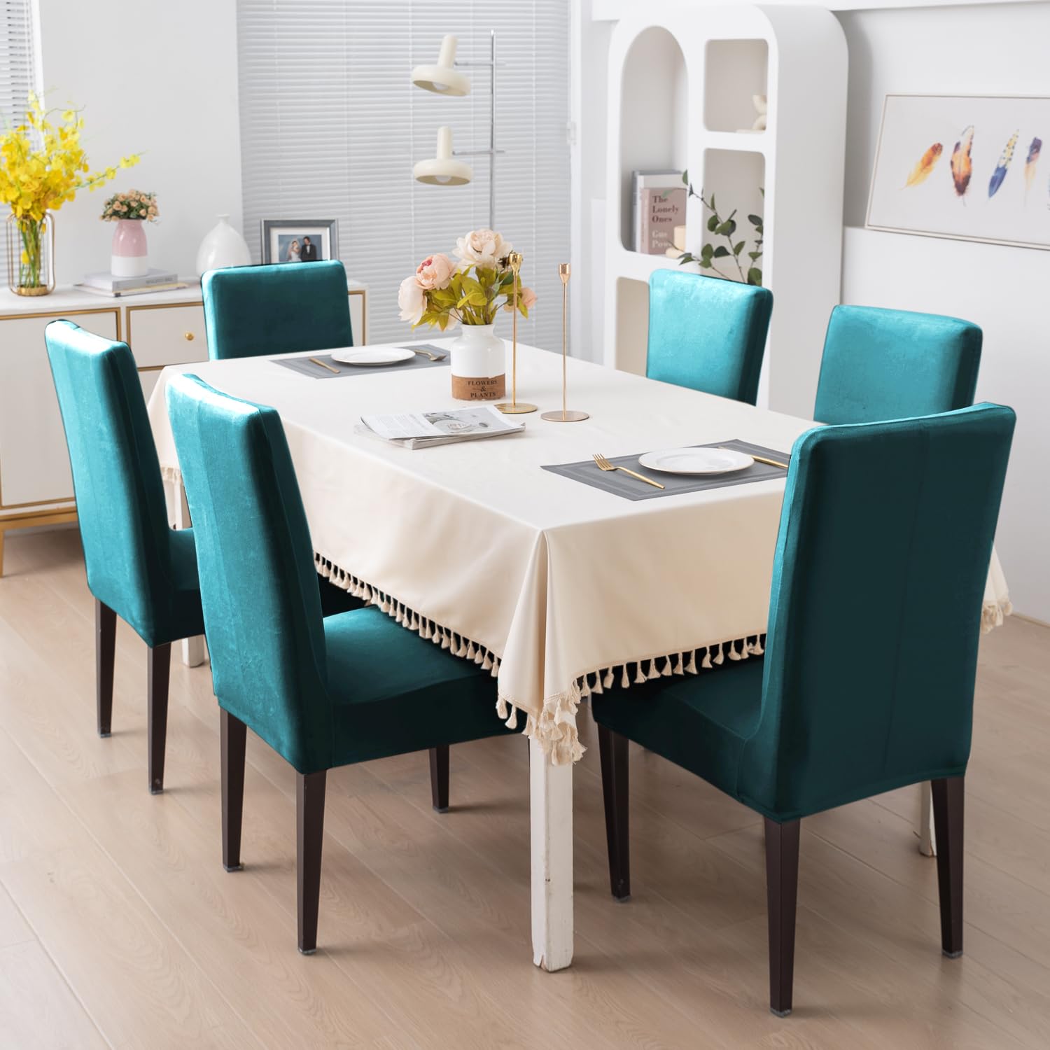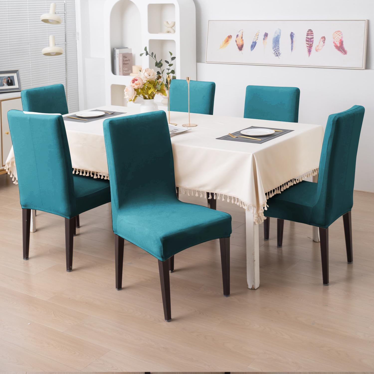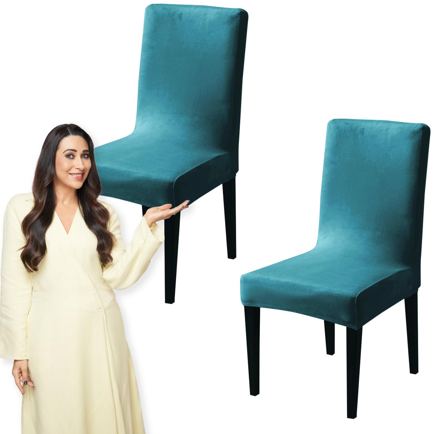 Elastic Stretchable Premium Velvet Dining Chair Cover, Turquoise