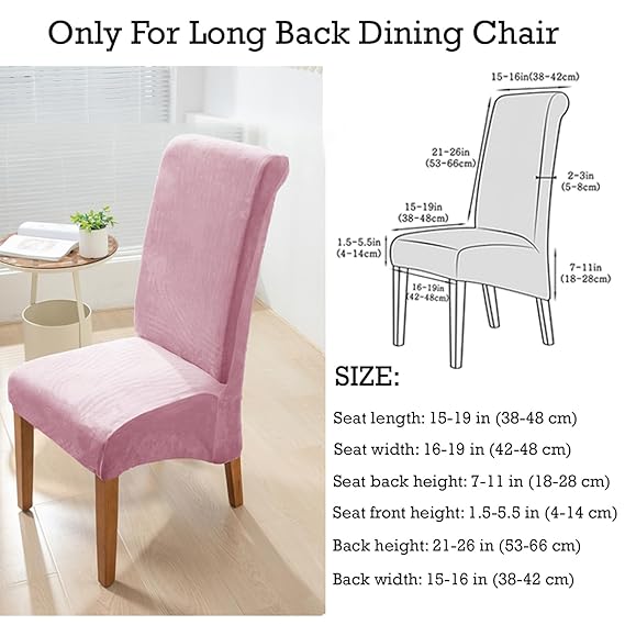 - IMP - Kindly note these covers are especially designed for LONG BACK dining chairs. Although the fabric is stretchable, still kindly refer to images for suitable size range. This will help you make informed decision