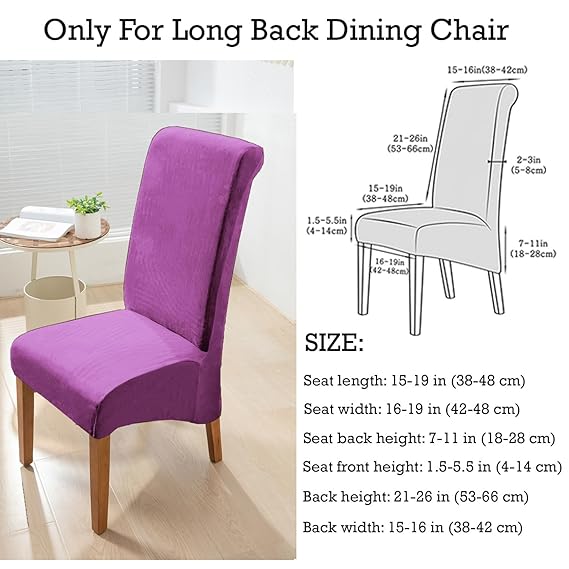 - IMP - Kindly note these covers are especially designed for LONG BACK dining chairs. Although the fabric is stretchable, still kindly refer to images for suitable size range. This will help you make informed decision