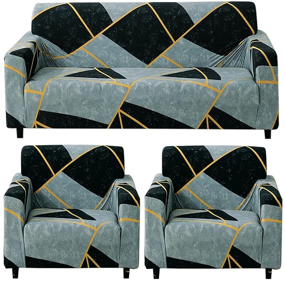 Elastic Stretchable Printed 140gsm Fully Covered Sofa Cover, Abstract Geometry