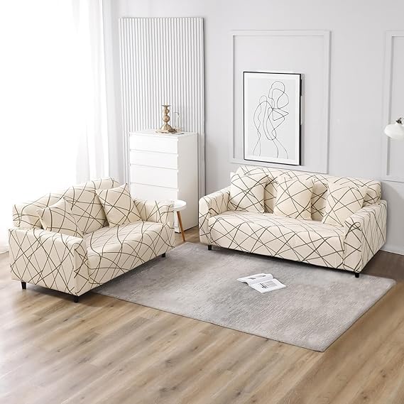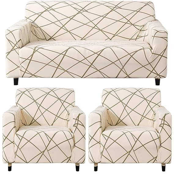 Elastic Stretchable Printed Sofa Cover, Beige Abstarct Lines