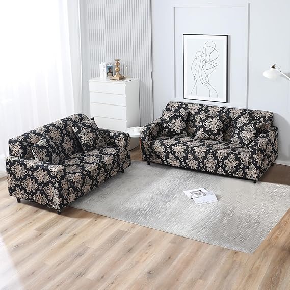 Elastic Stretchable Printed Sofa Cover, Black Damask