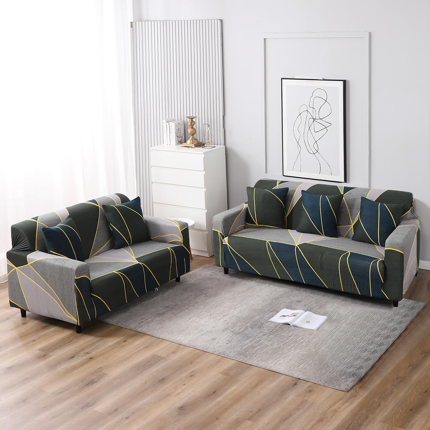 Elastic Stretchable Printed Sofa Cover, Seaweed Geometric Abstract