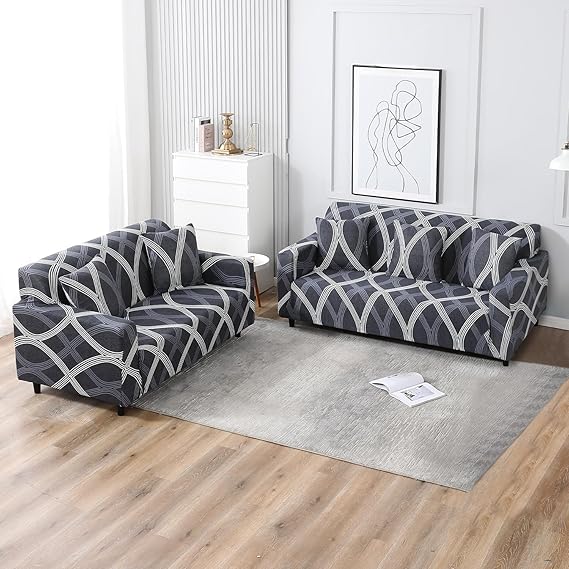Elastic Stretchable Printed Sofa Cover, Shadow Grey