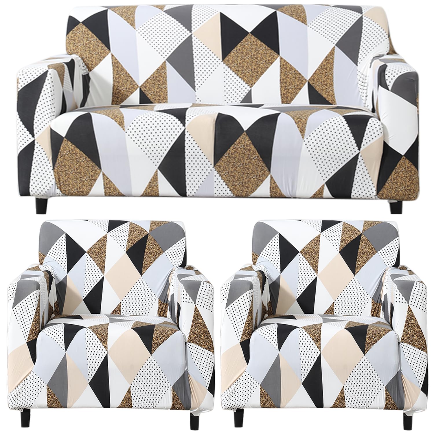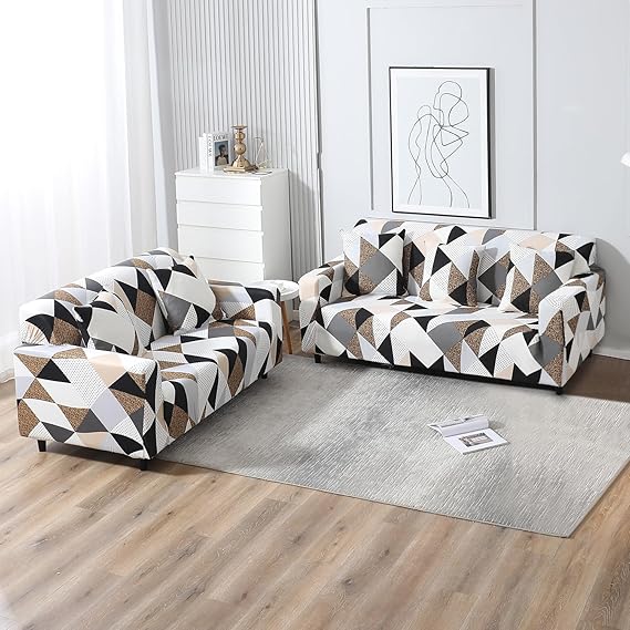 Elastic Stretchable Printed Sofa Cover, Grey Brown Geometric
