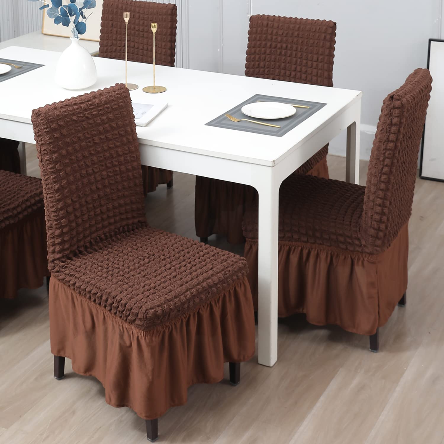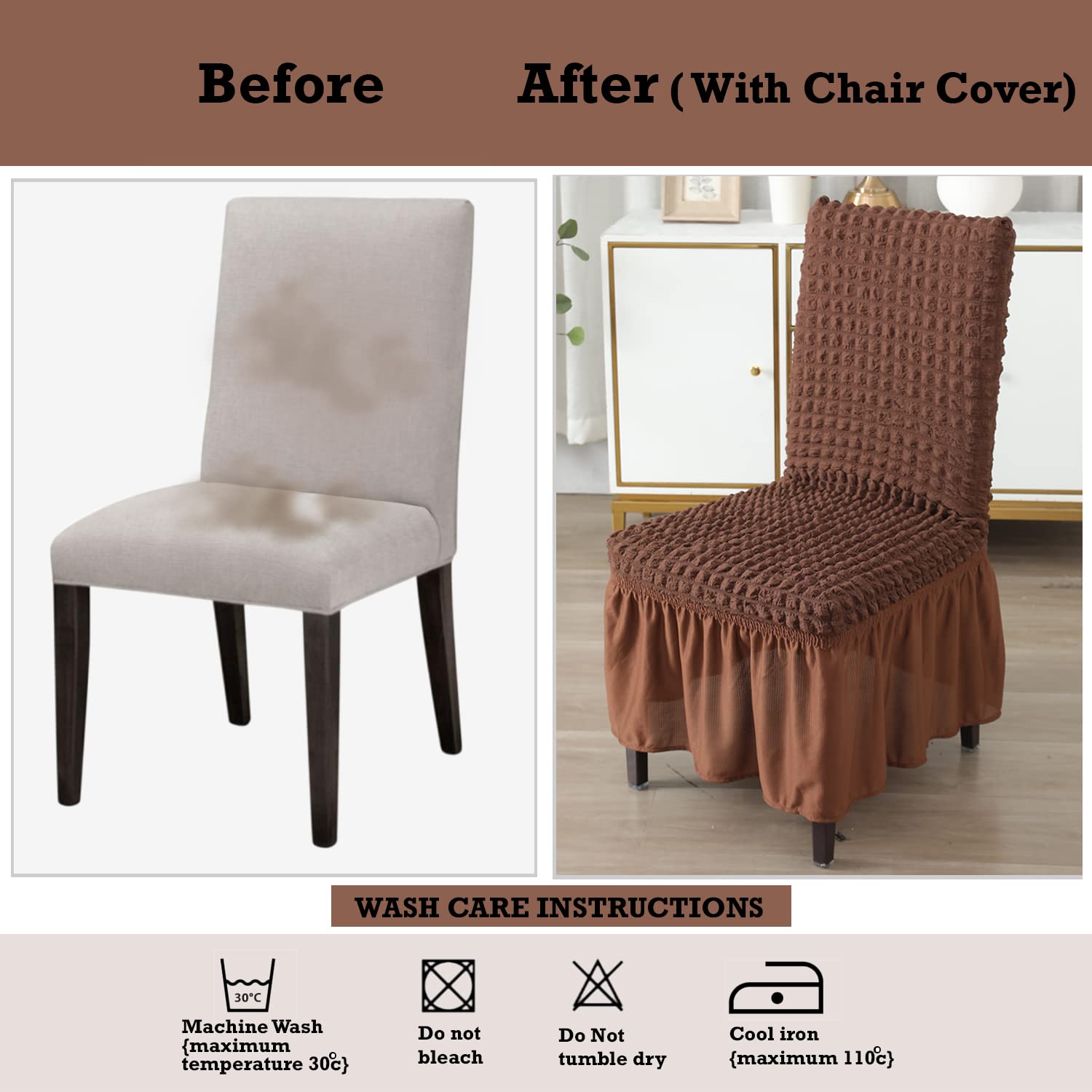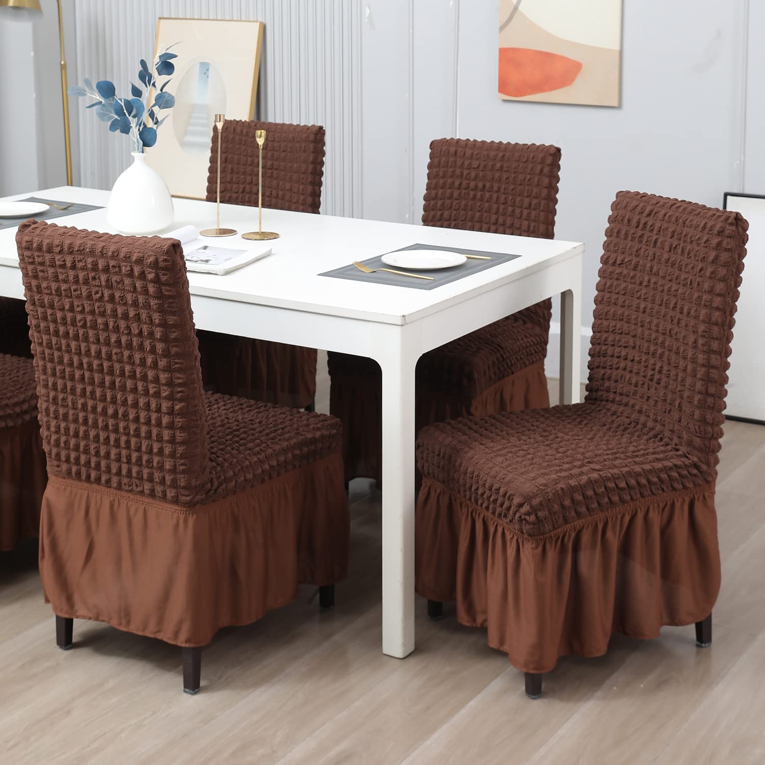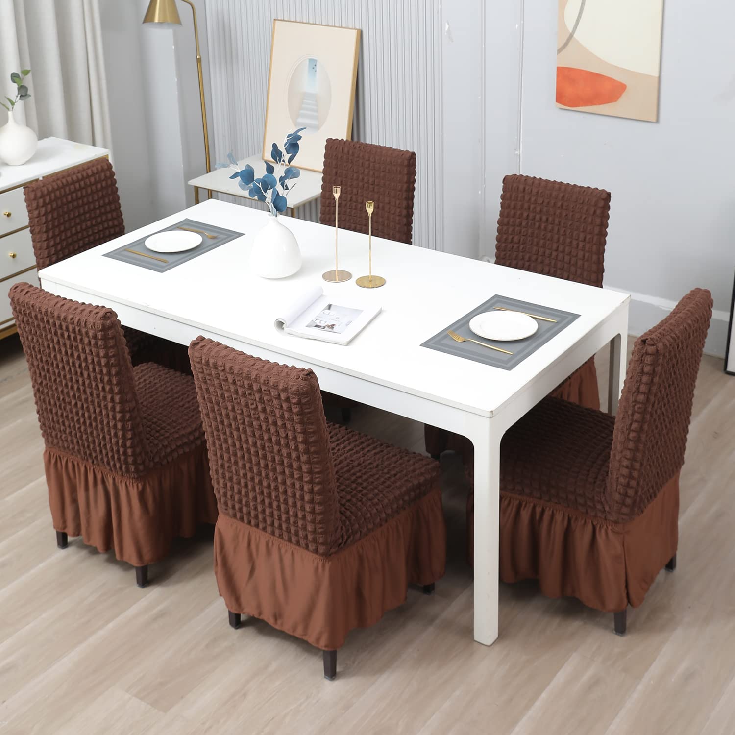 Elastic Stretchable 280 GSM Bubble Dining Chair Cover with Frill, Dark Brown