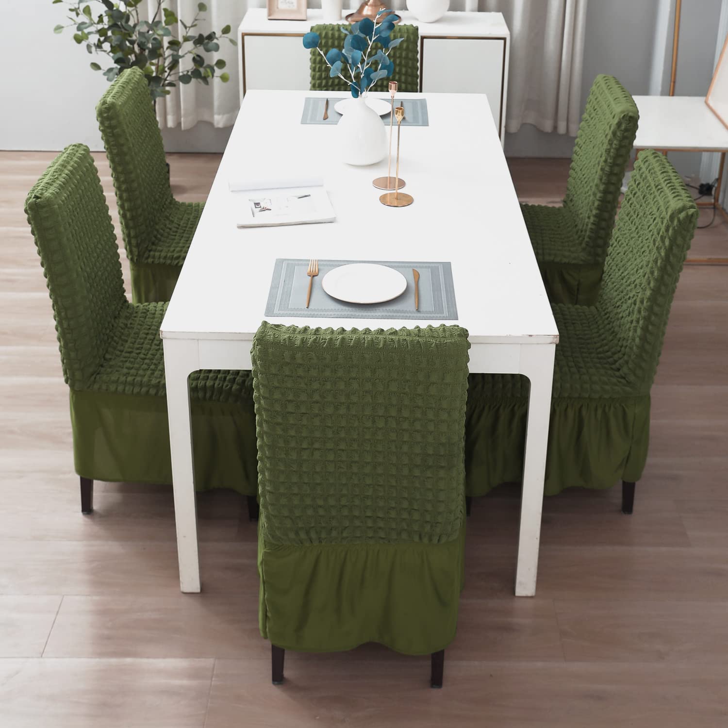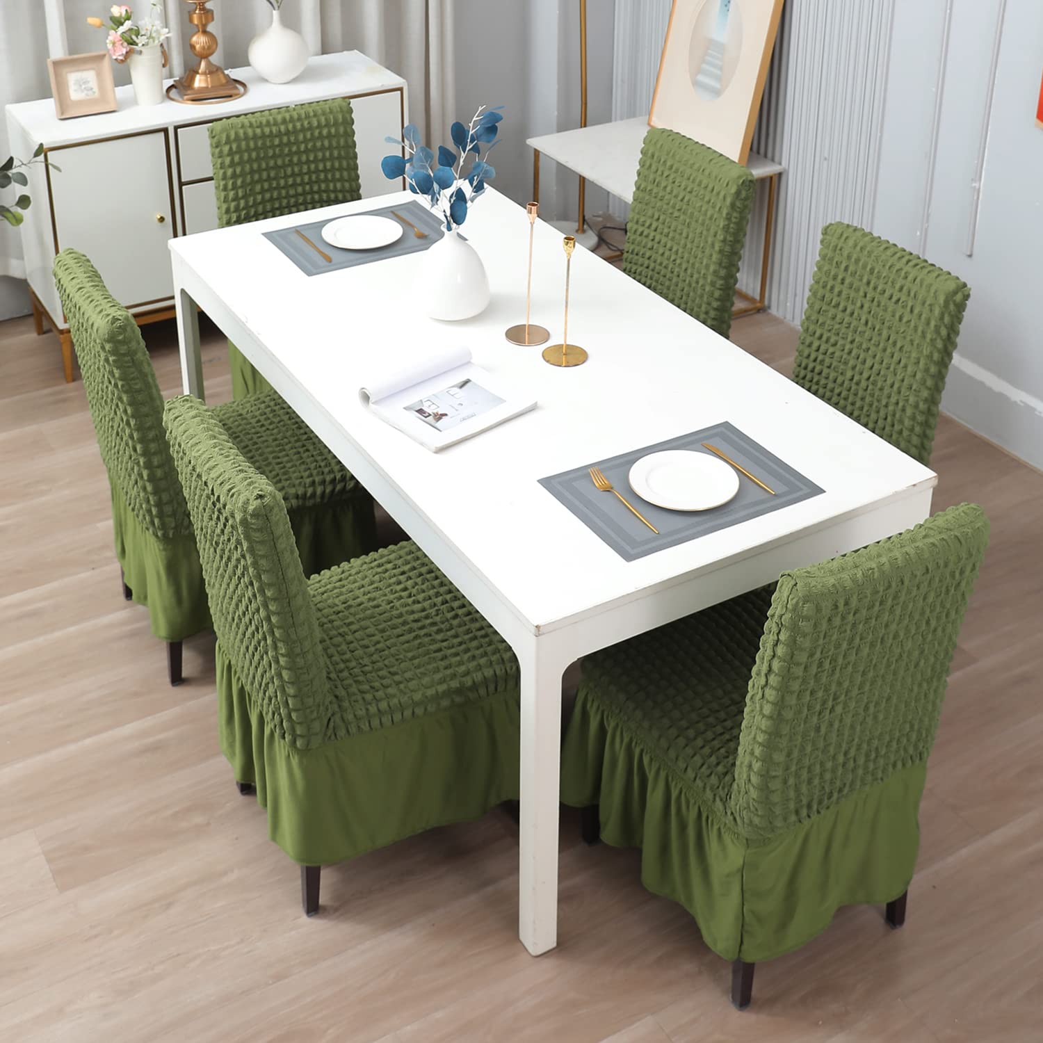 - Fully covered elastic bubble dining chair covers with frill by HOKIPO