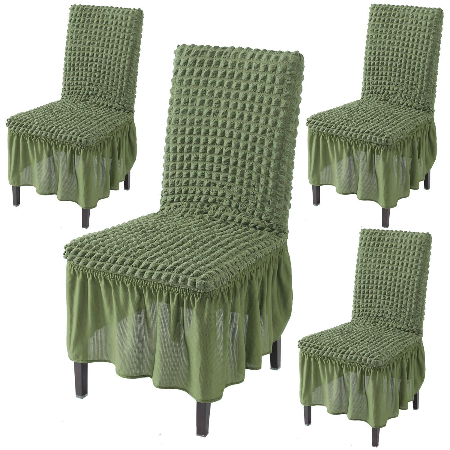 Elastic Stretchable 280 GSM Bubble Dining Chair Cover with Frill, Forest Green