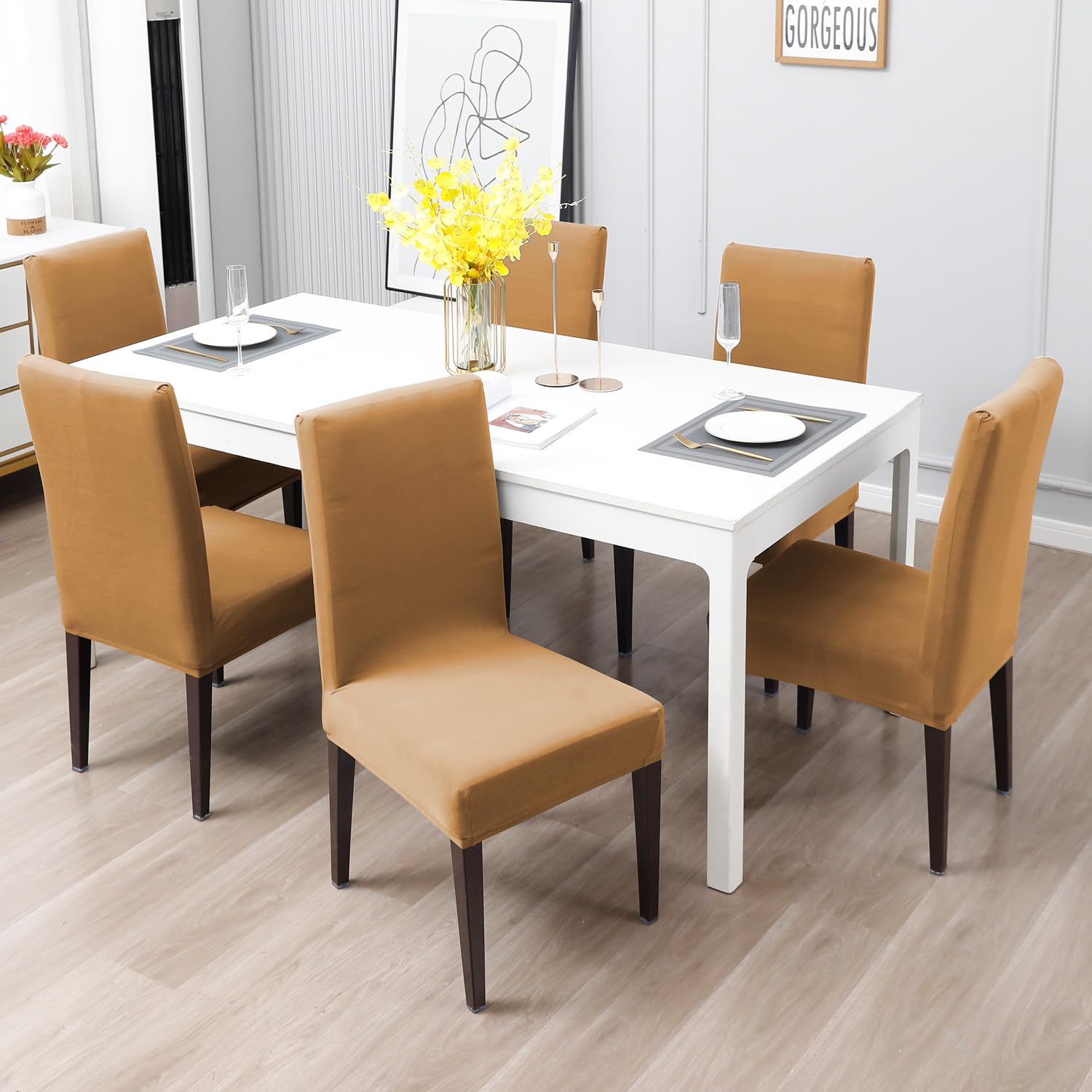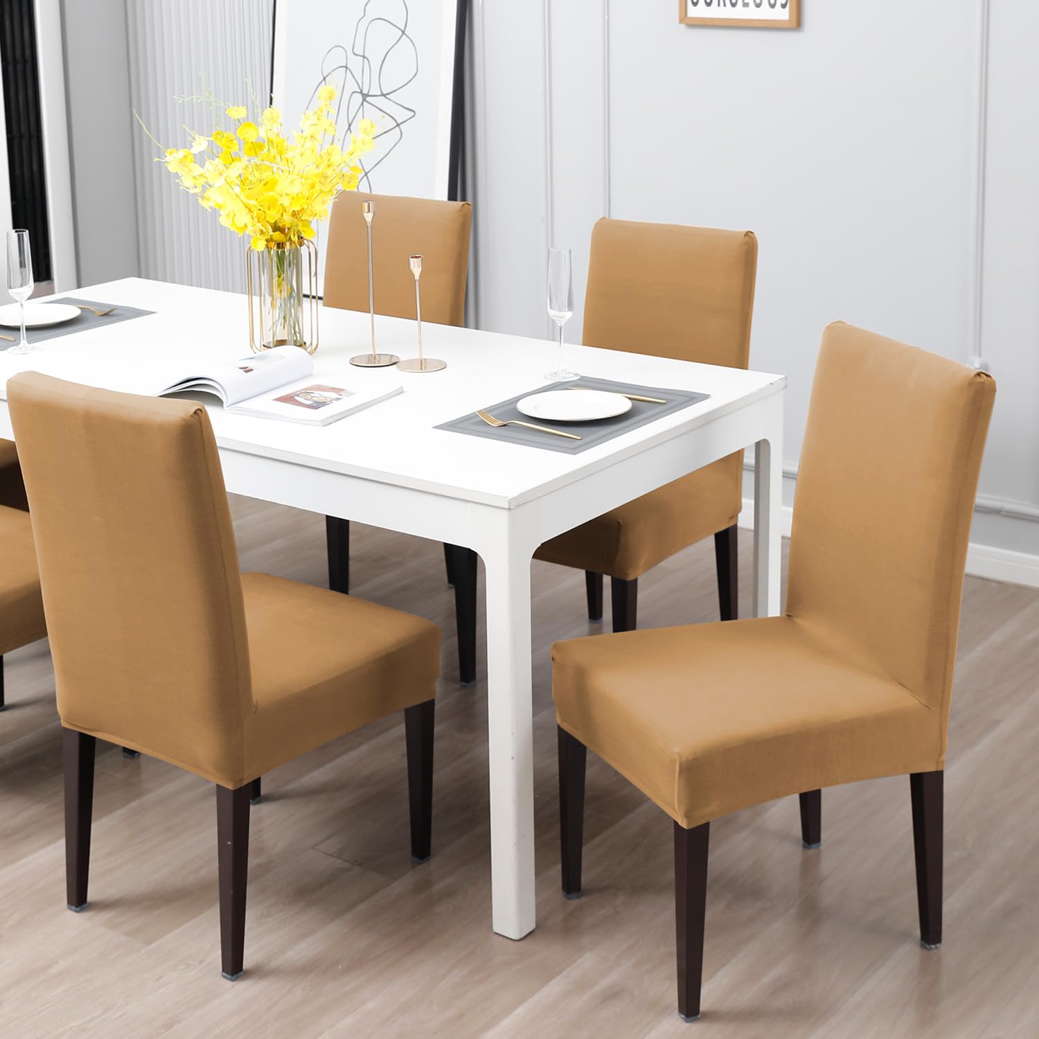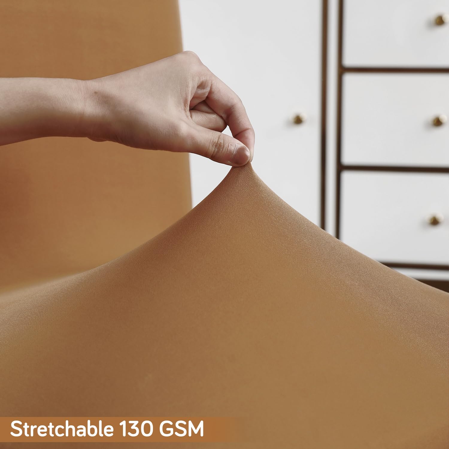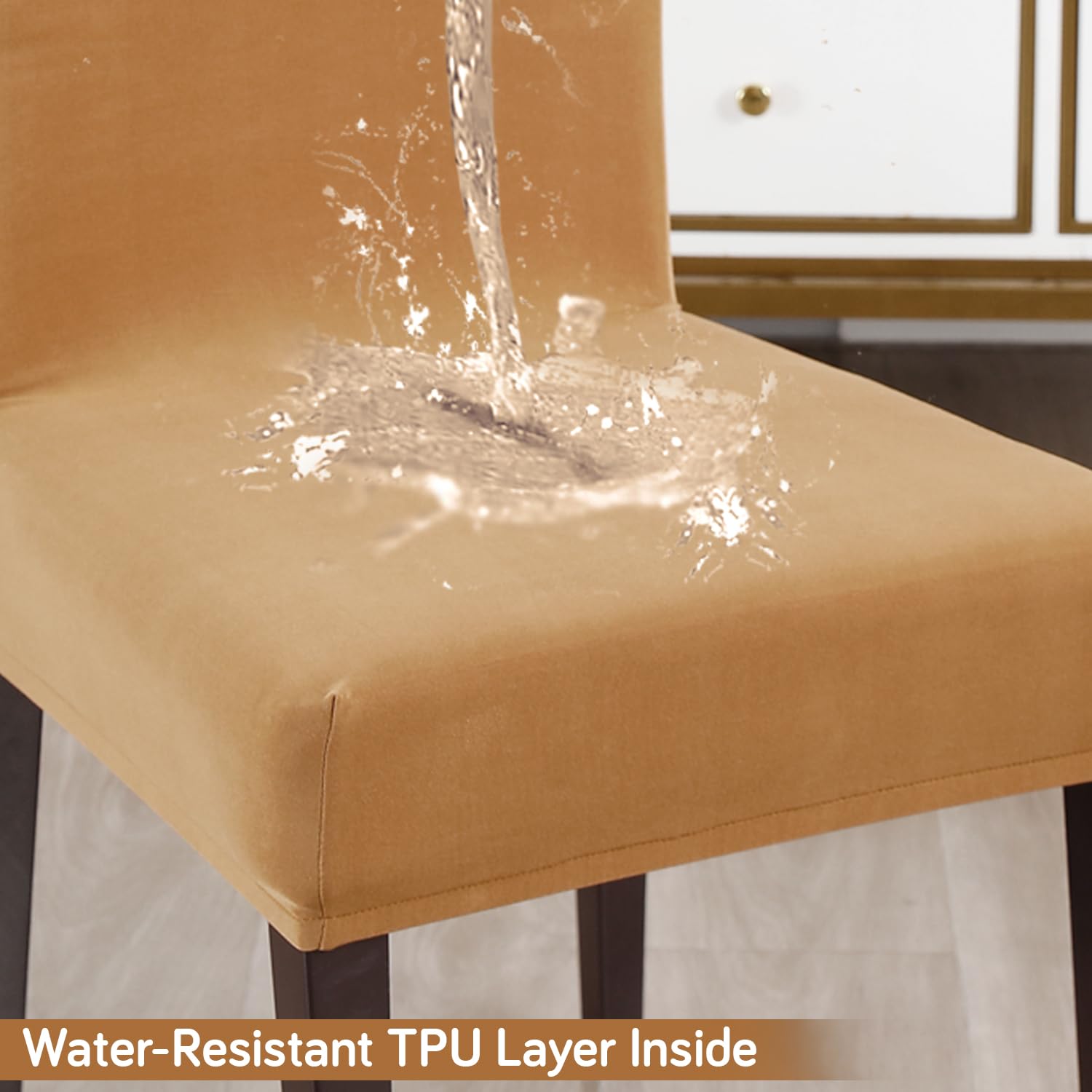 Elastic Stretchable Water Resistant Dining Chair Cover, Camel