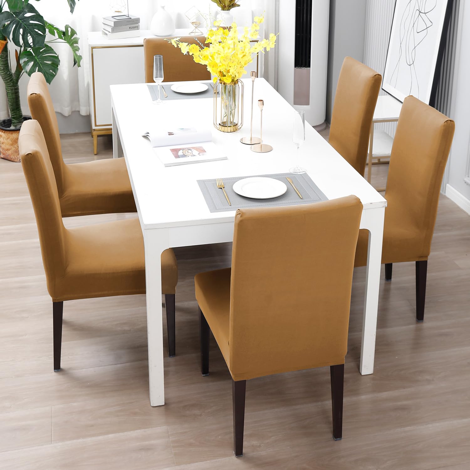 - Fully covered elastic water resistant dining chair covers by HOKIPO
