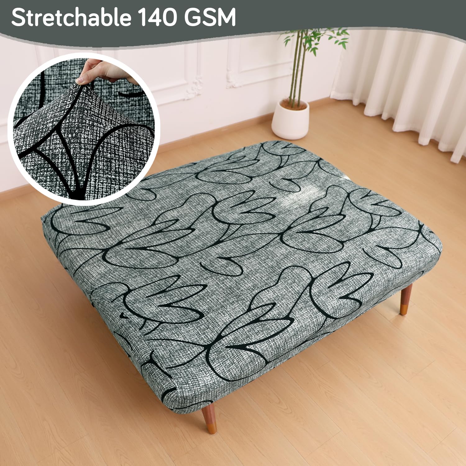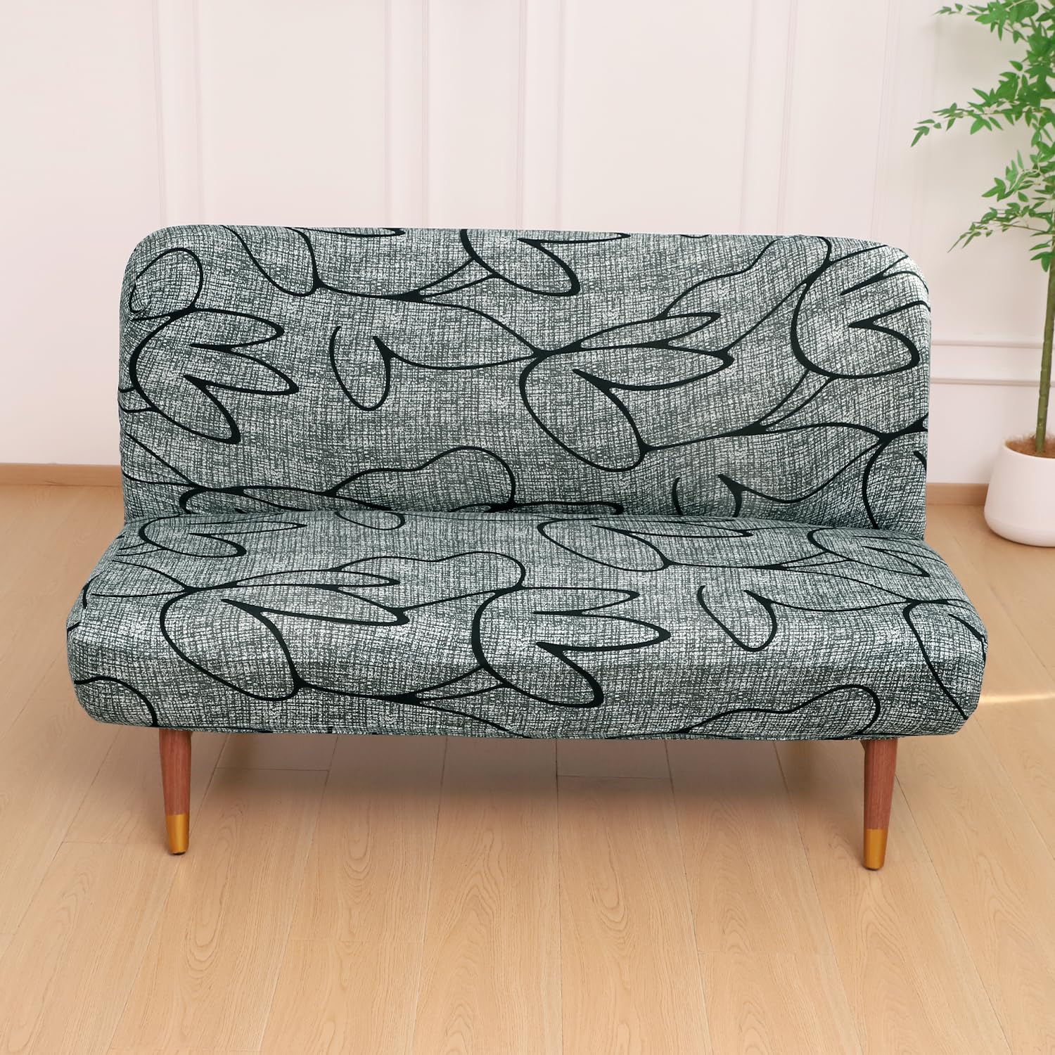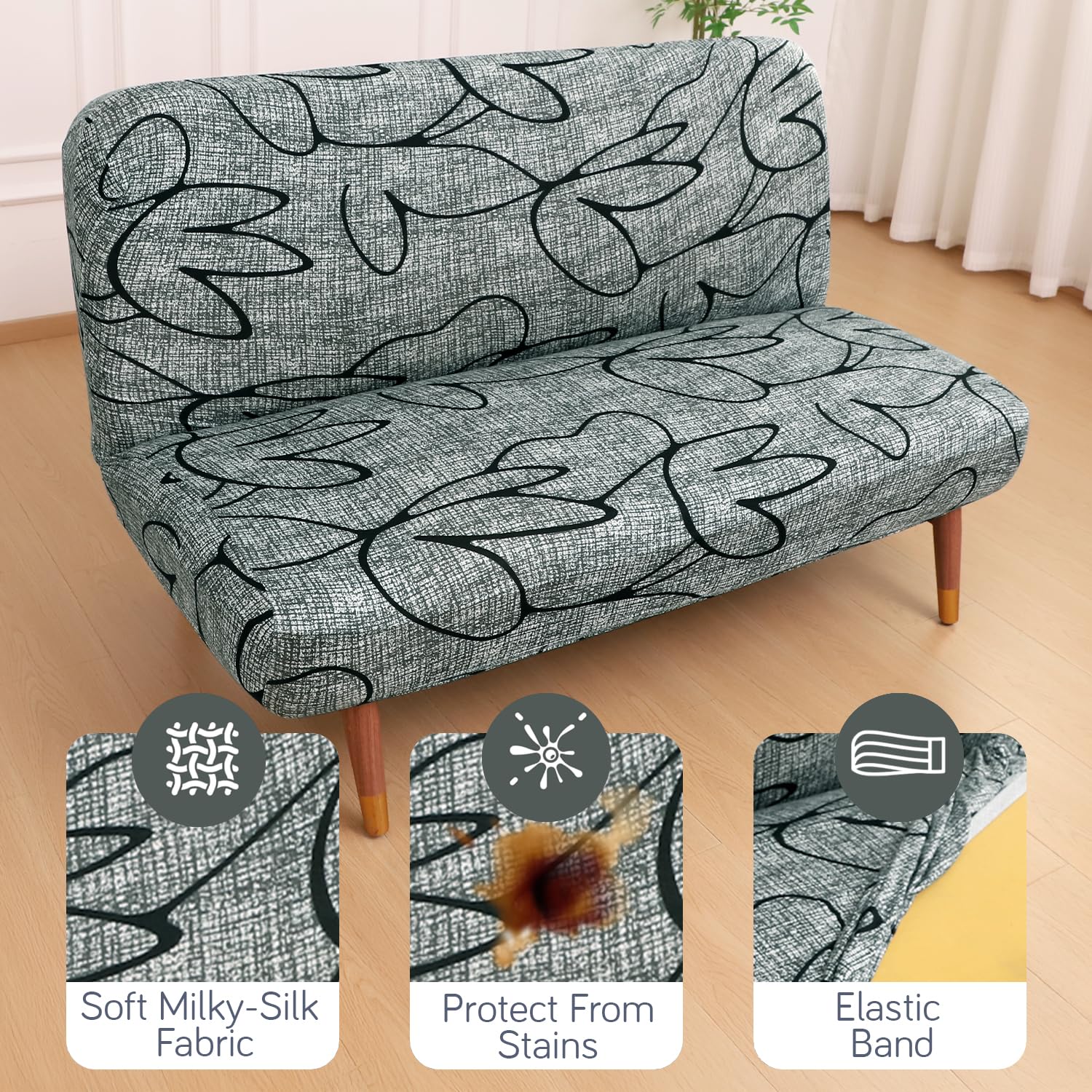 Elira Series Stretchable Elastic Armless Sofa Cover – 140 GSM, Futon Slipcover, Easy Fit, Intense Grey Abstract Floral