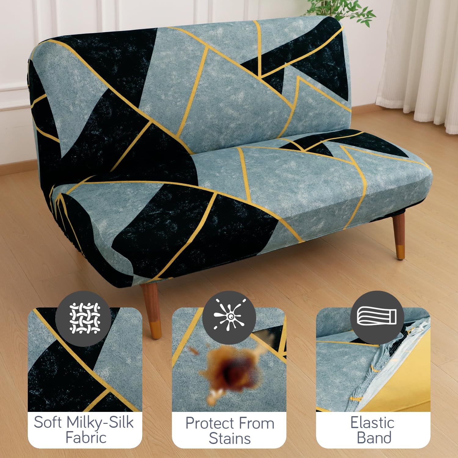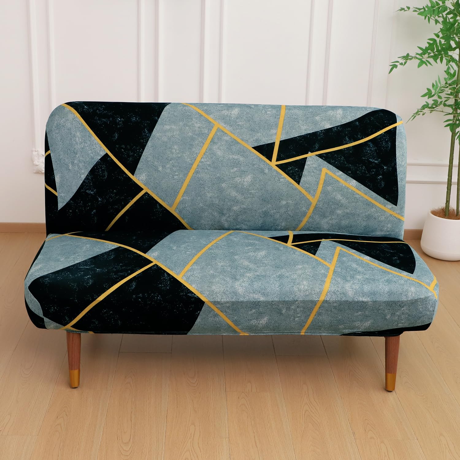 Elira Series Stretchable Elastic Armless Sofa Cover – 140 GSM, Futon Slipcover, Easy Fit, Multicolor Abstract Geometry