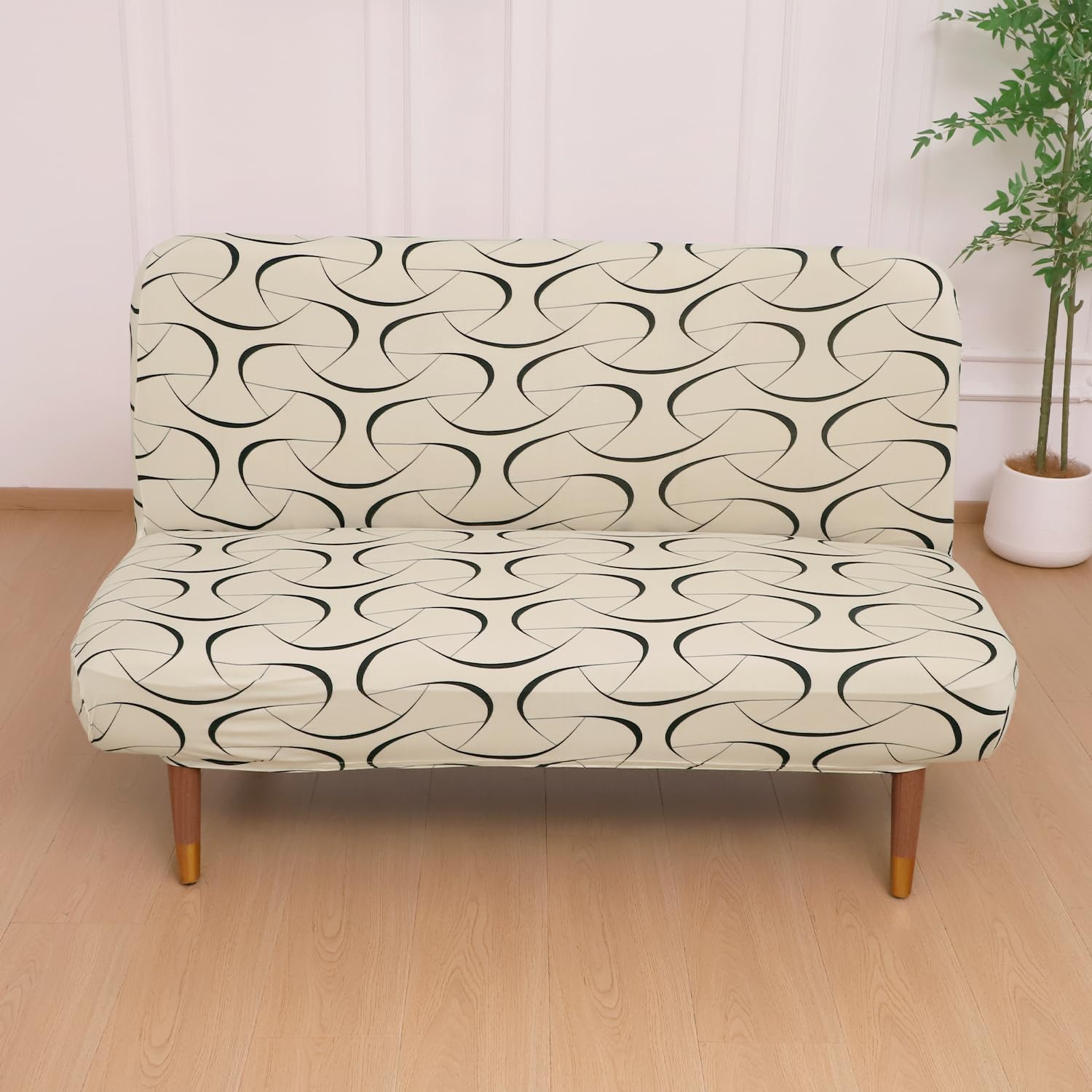 Elira Series Stretchable Elastic Armless Sofa Cover – 140 GSM, Futon Slipcover, Easy Fit, Natural Beige Abstract Art