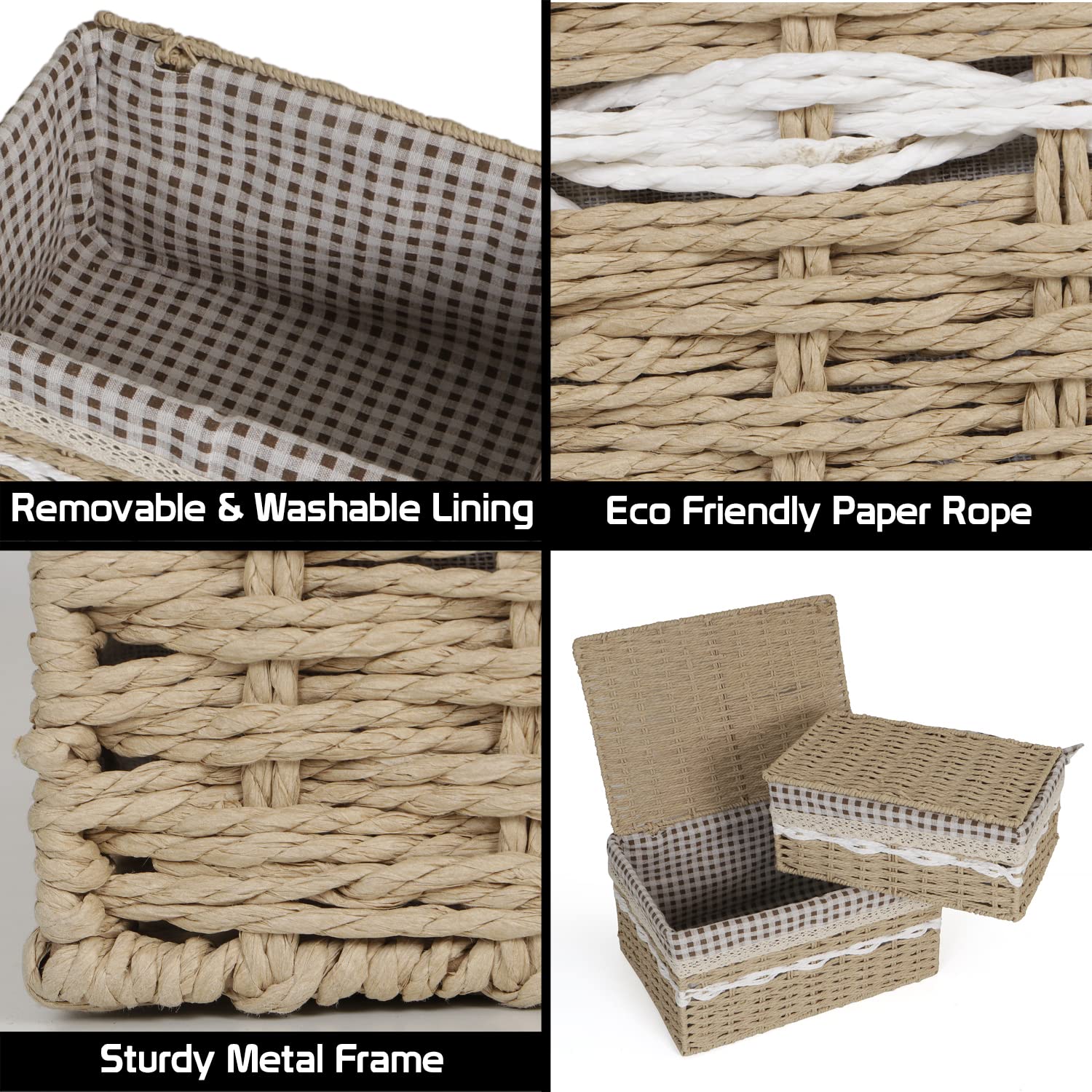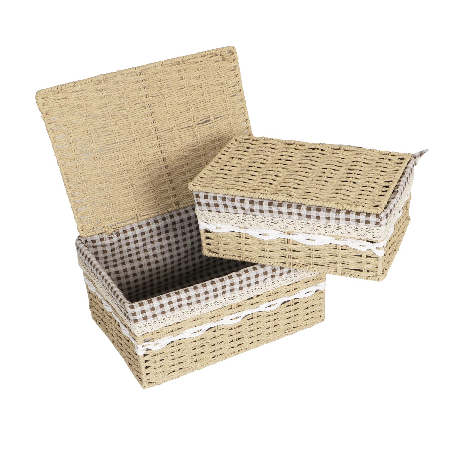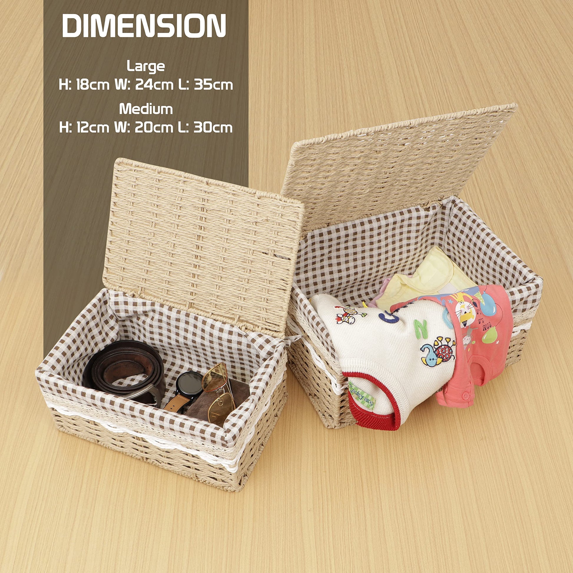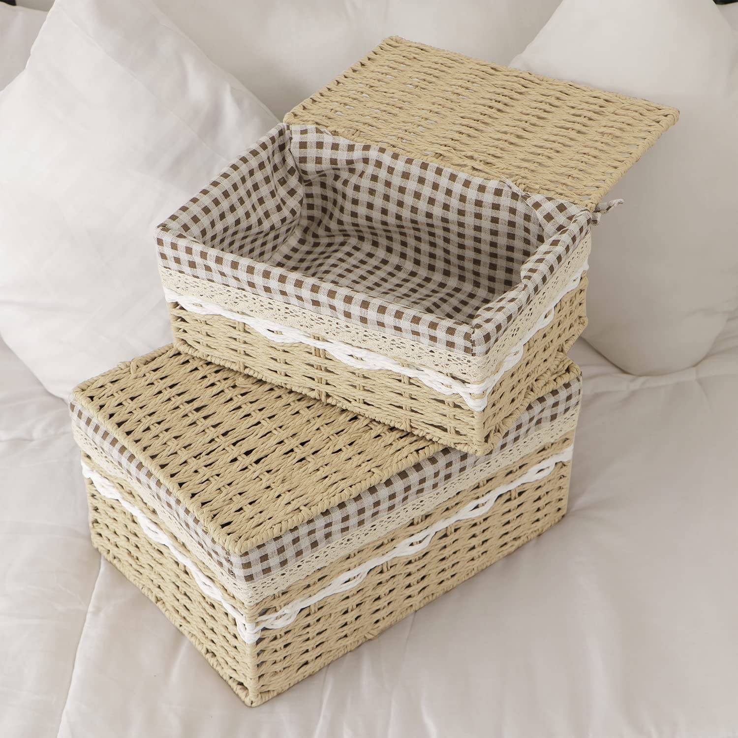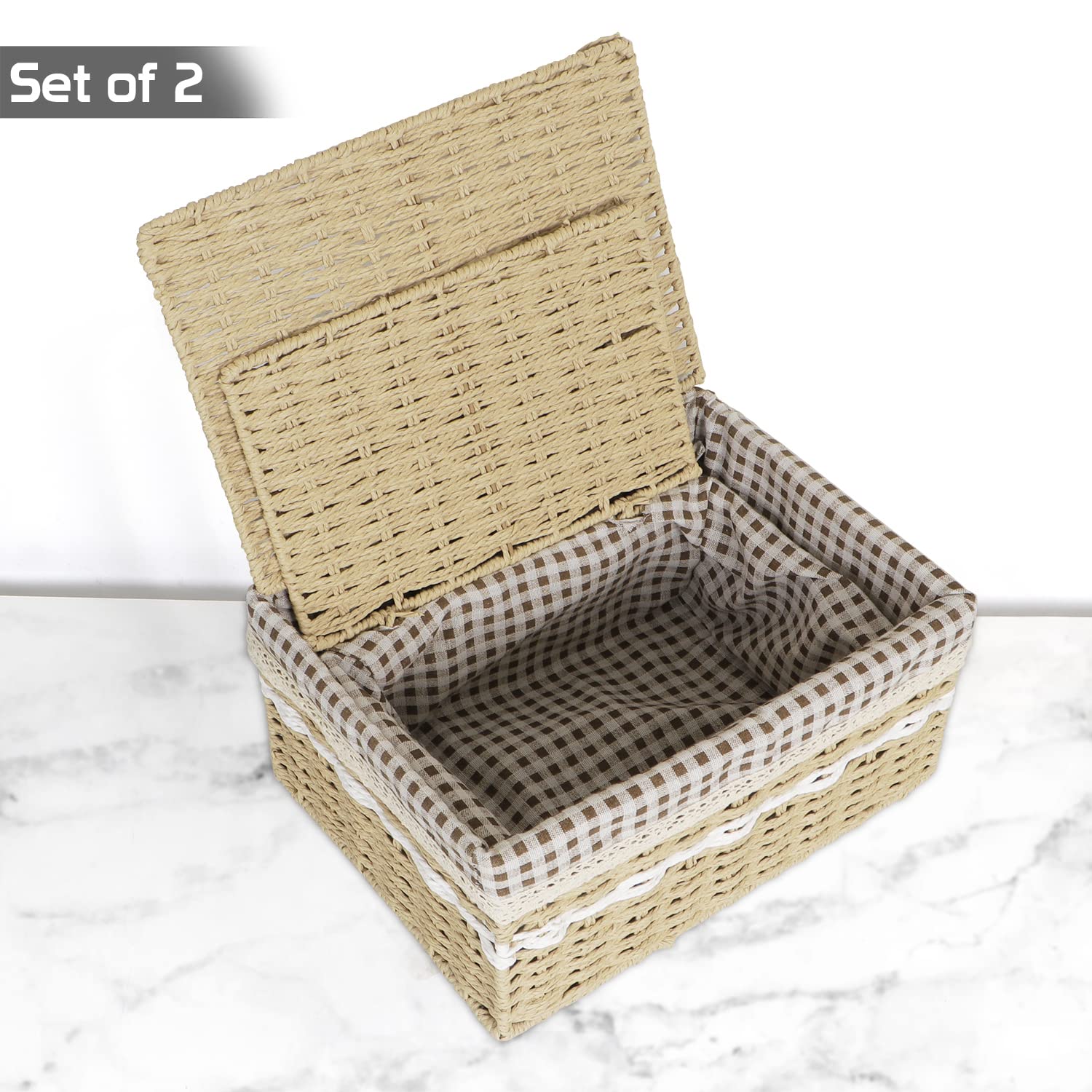 Environmental Friendly Paper Rope Wicker Storage Baskets with lid, Set of 2, Beige
