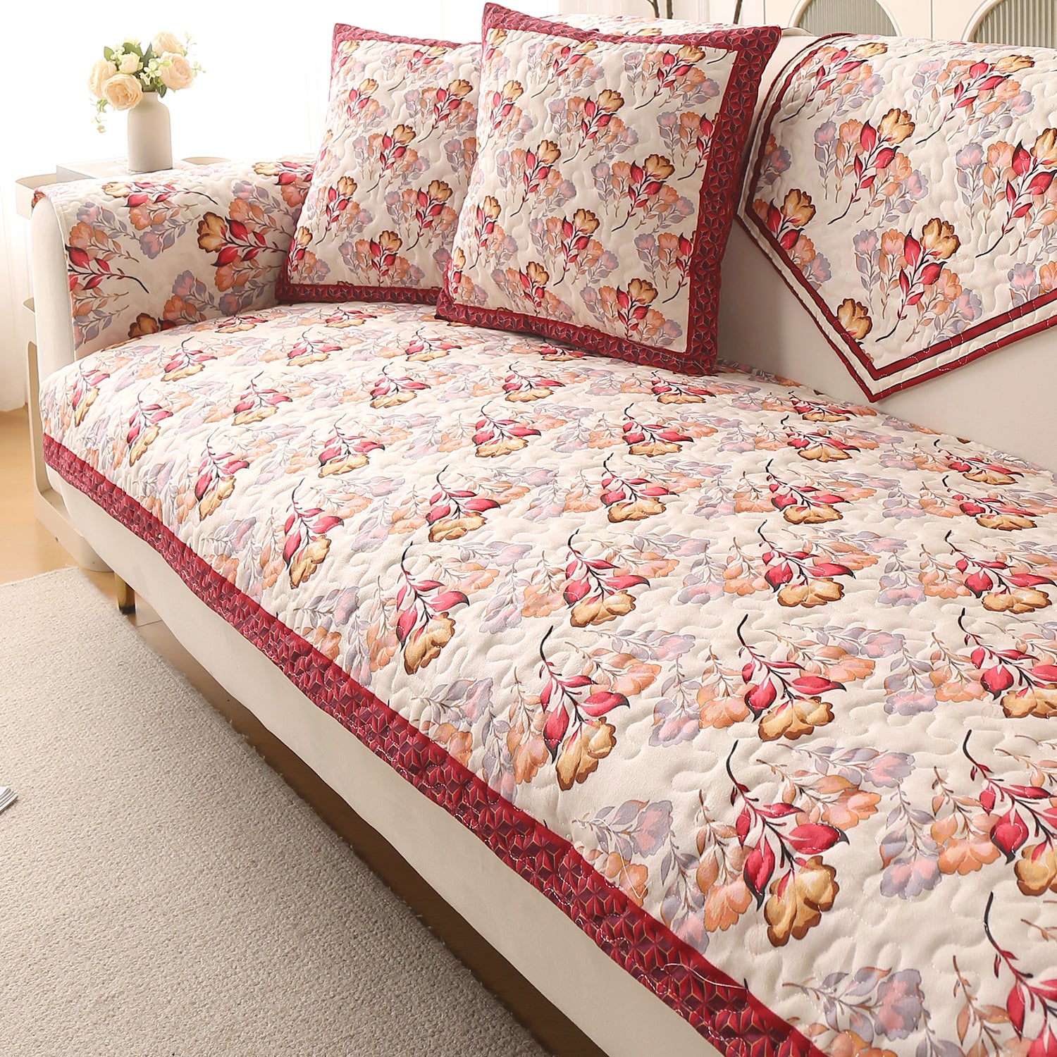 Florentina Series Premium Holland Velvet Sofa Cover Mat - Autumn Cream