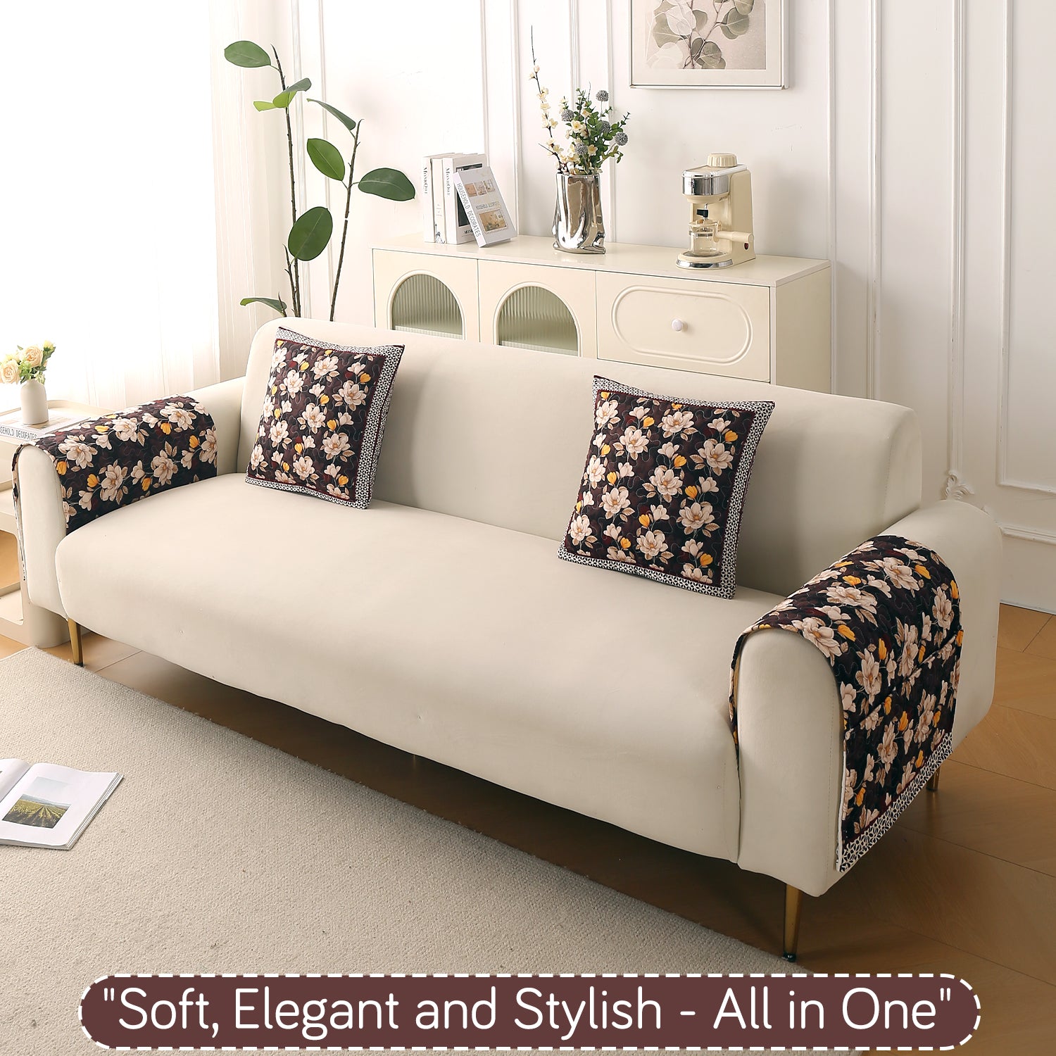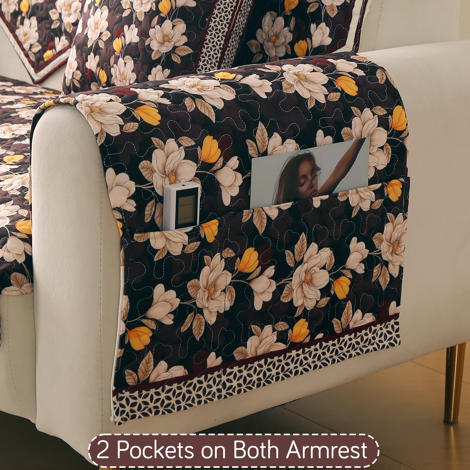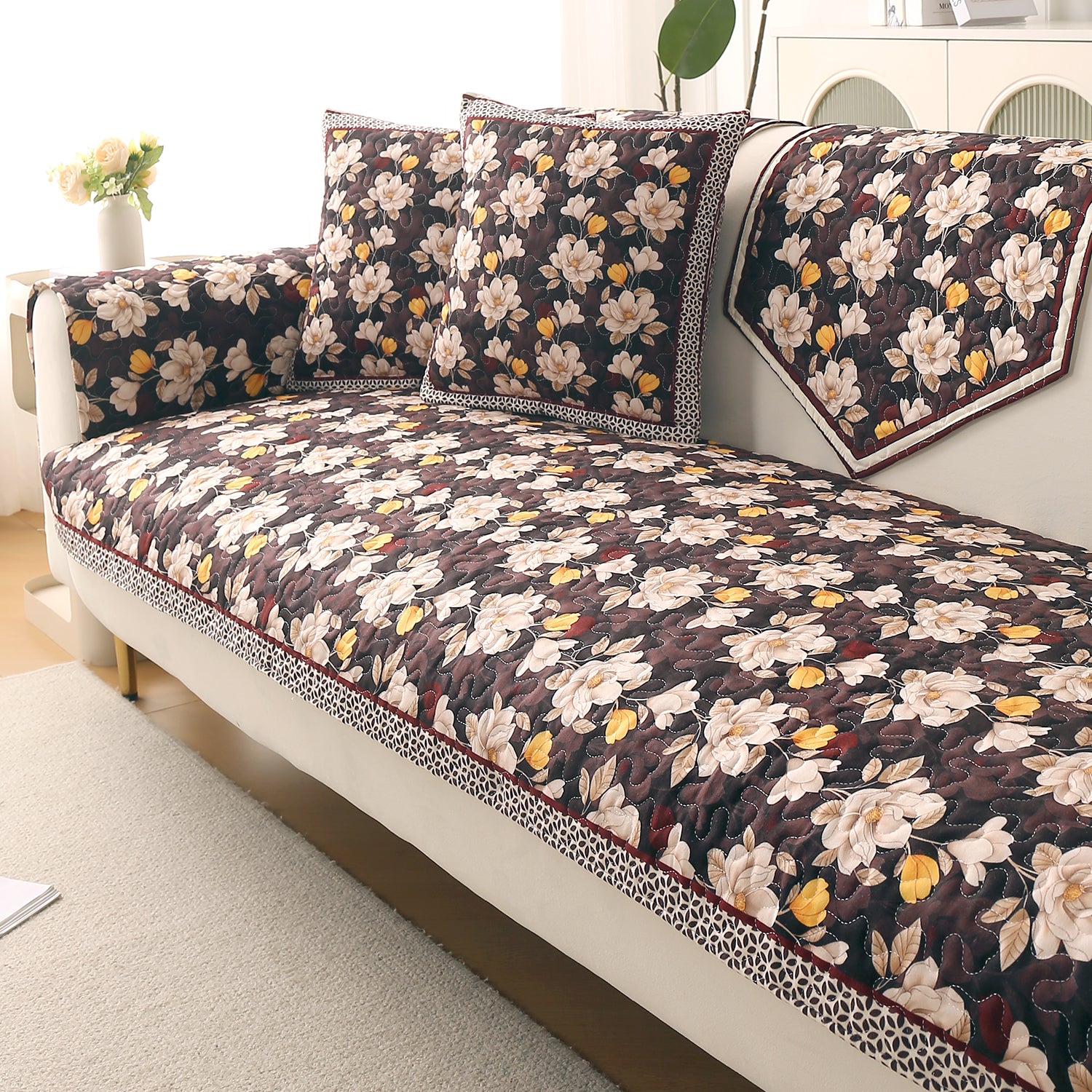 Florentina Series Premium Holland Velvet Sofa Cover Mat - Camellia Brown