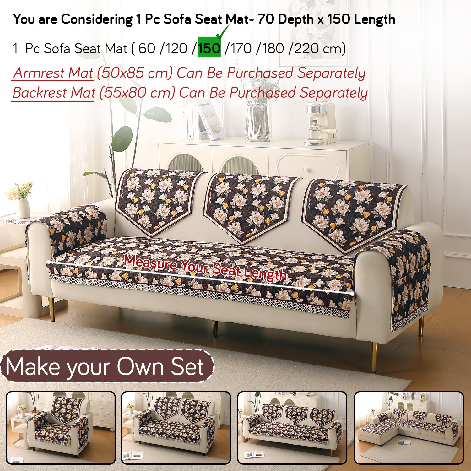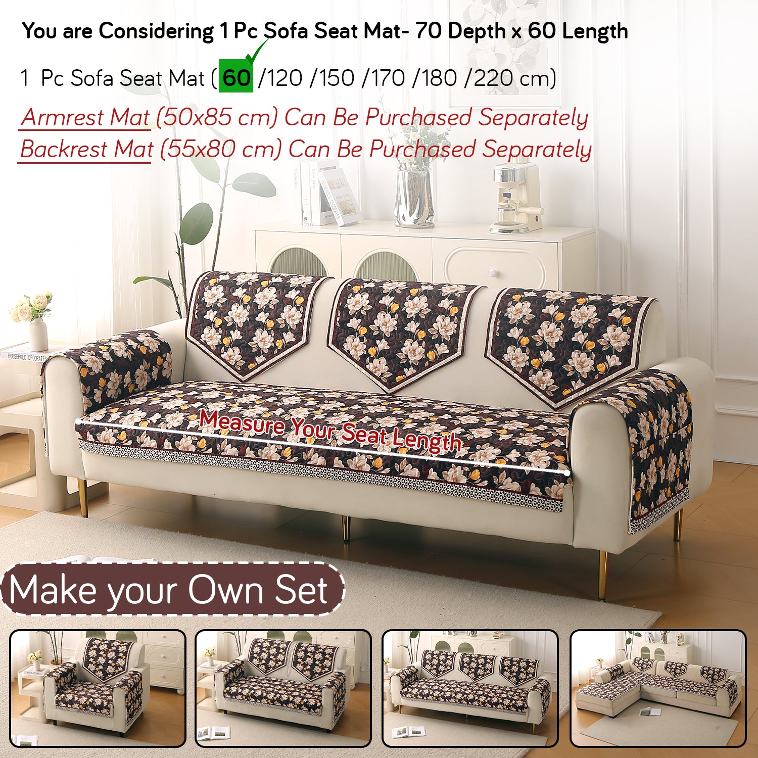 Premium Sofa Backrest Mat (55x80 cm) - Ideal for 1, 2, 3 seater or L-shape sofas. Buy as per requirement: 1 Pc for 1 seater, 2 Pc for 2 seater, 3 Pc for 3 seater sofa