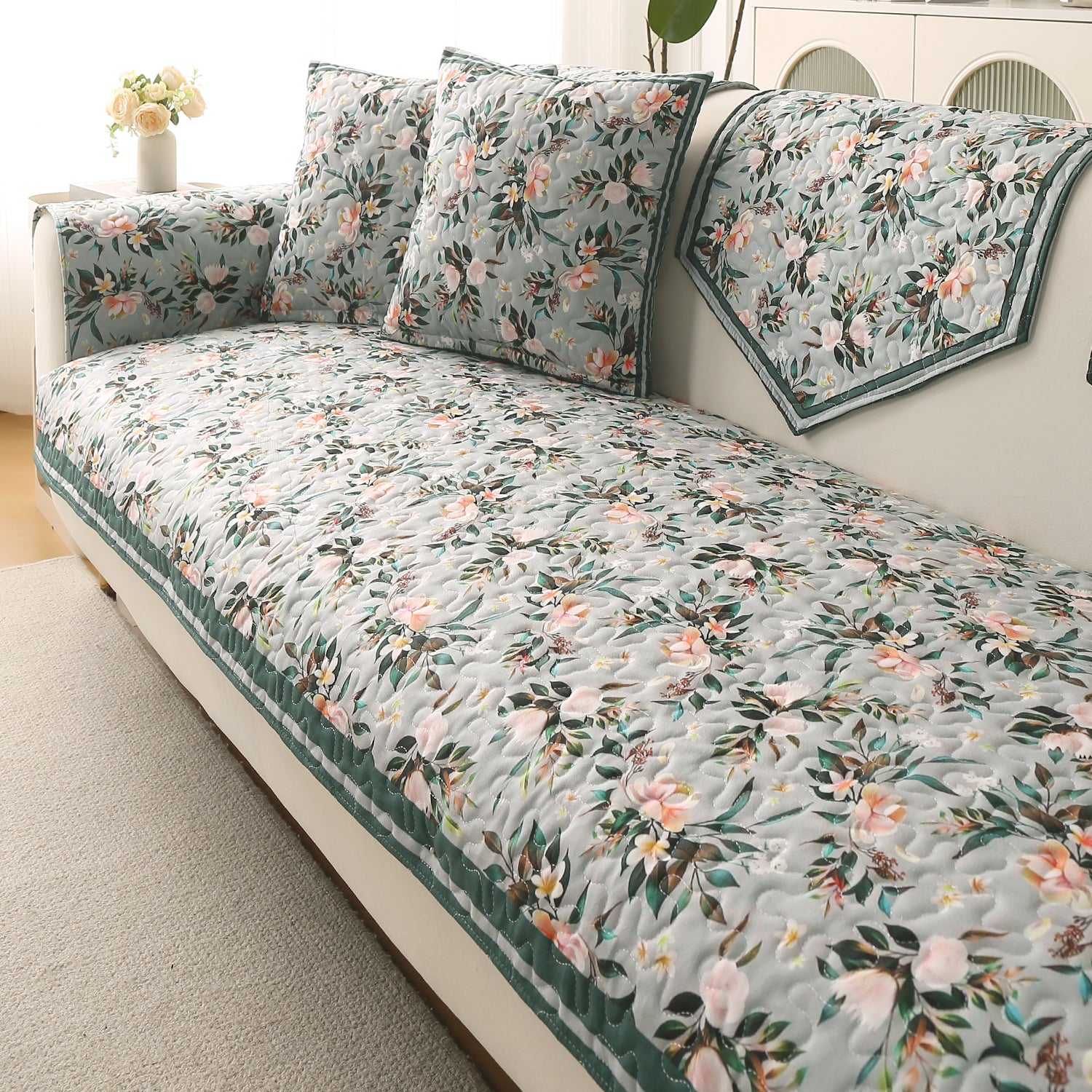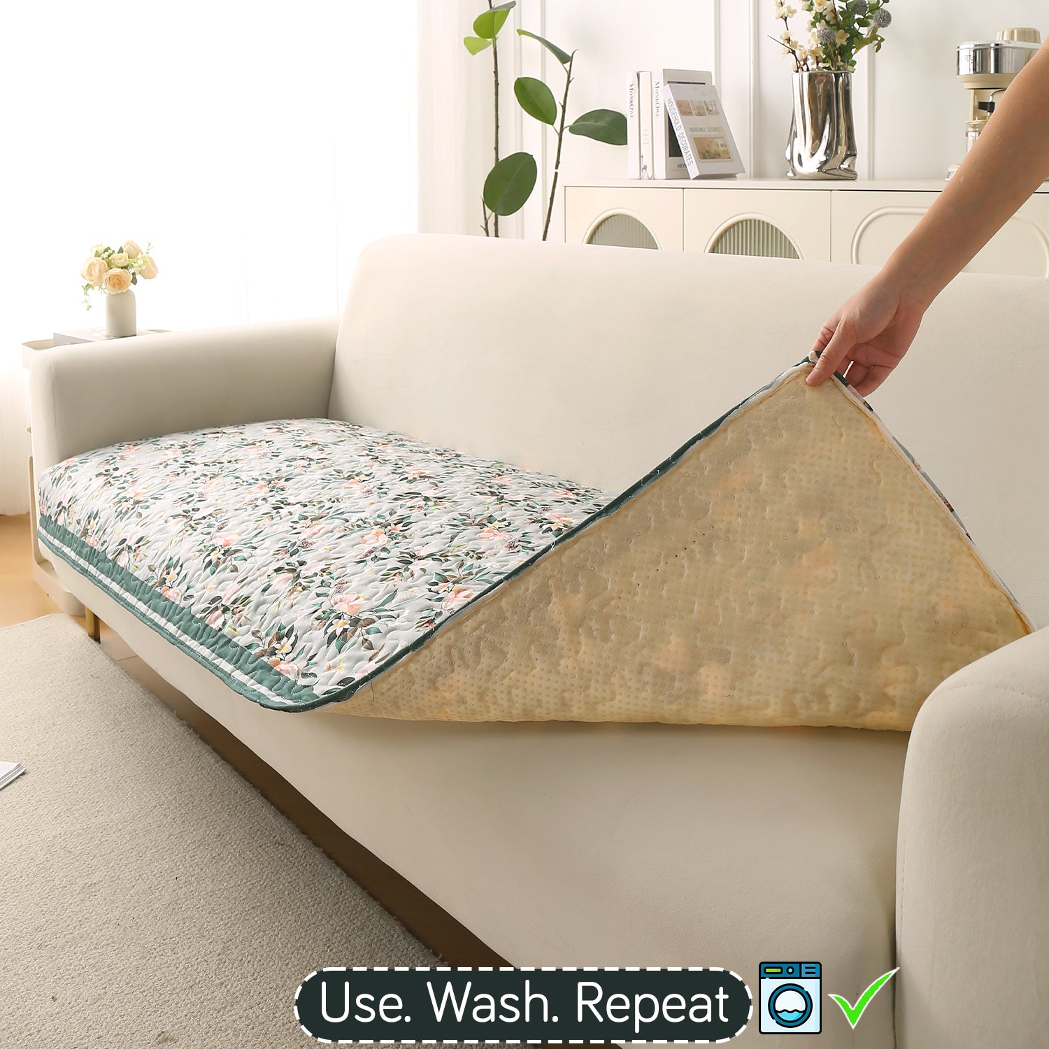Florentina Series Premium Holland Velvet Sofa Cover Mat - Magnolia Green