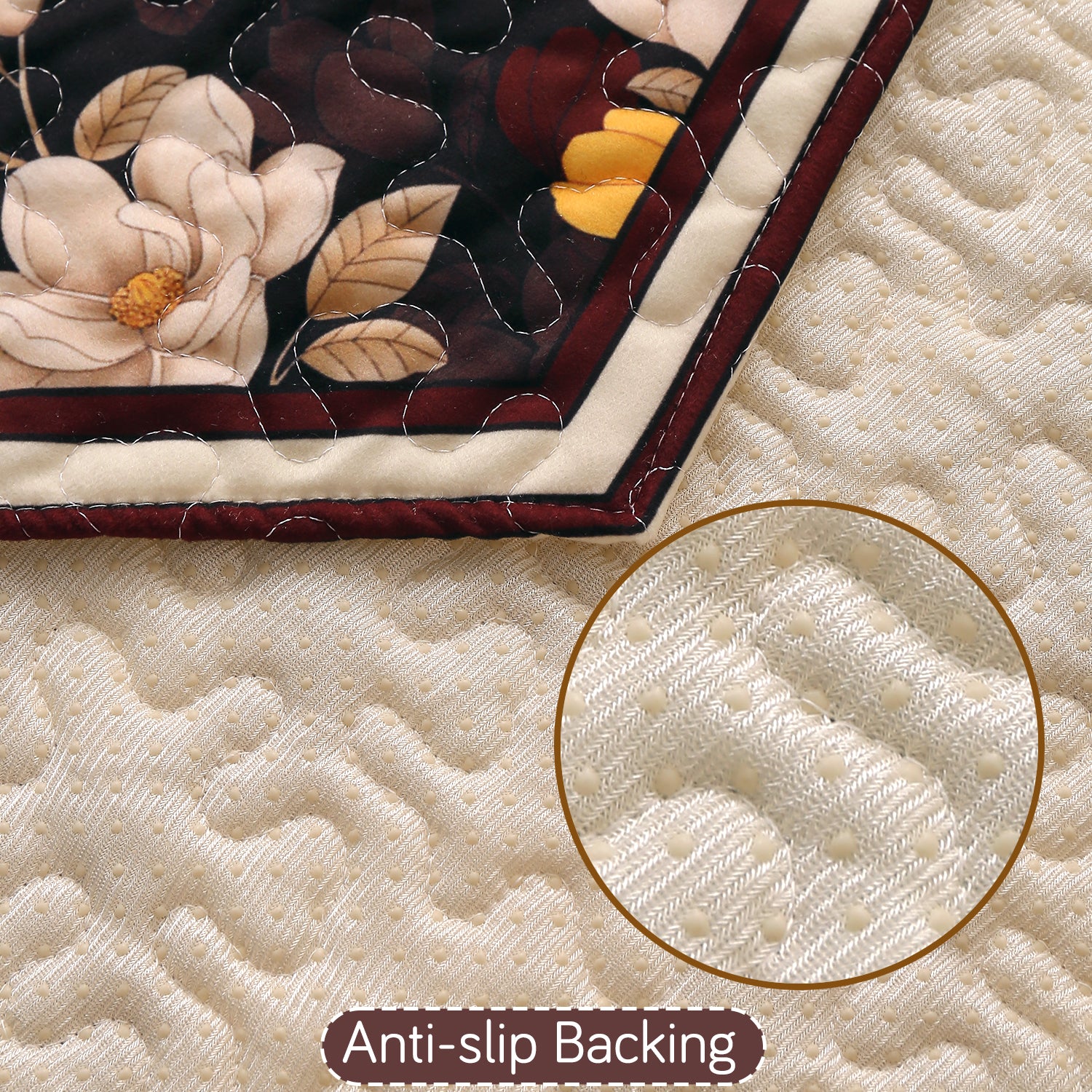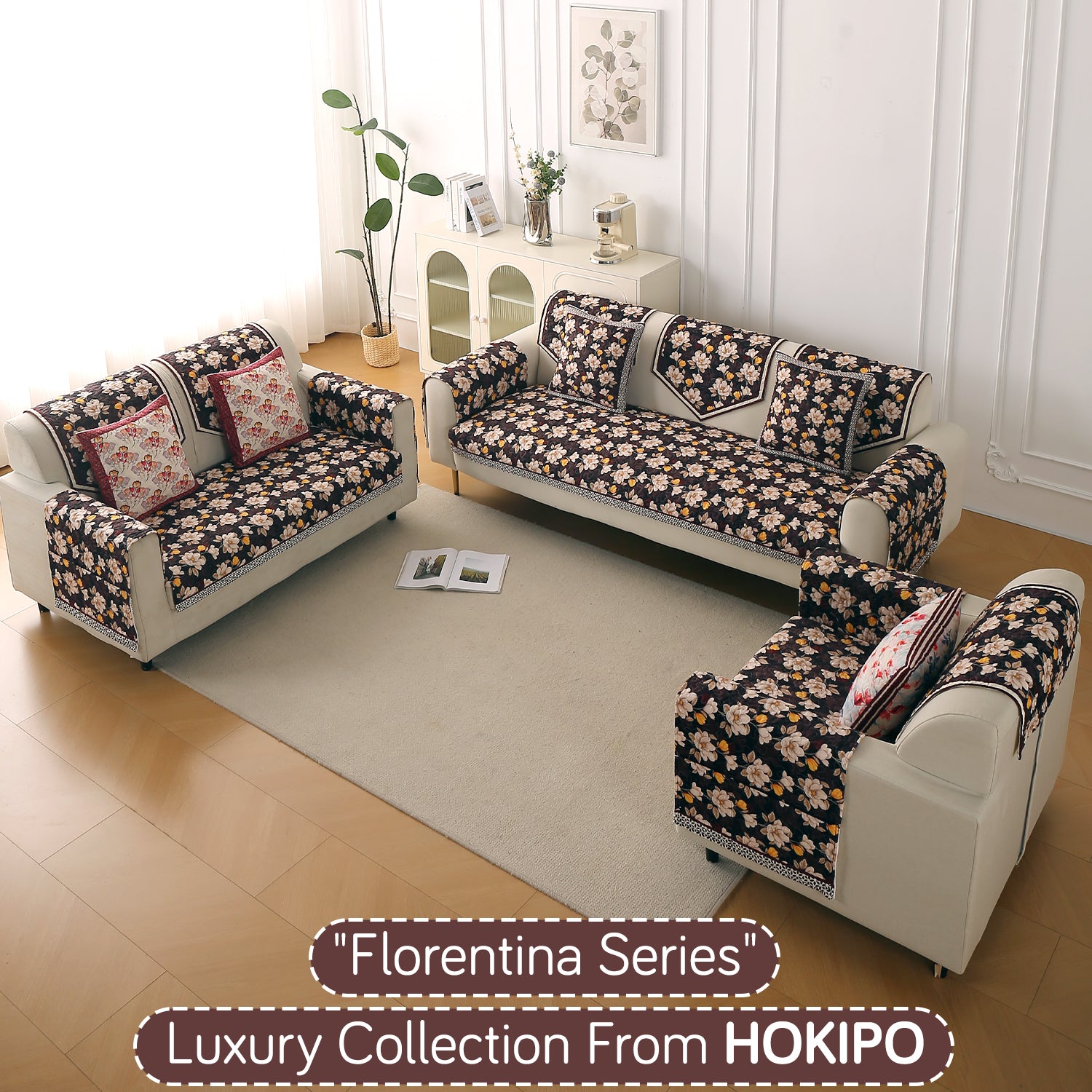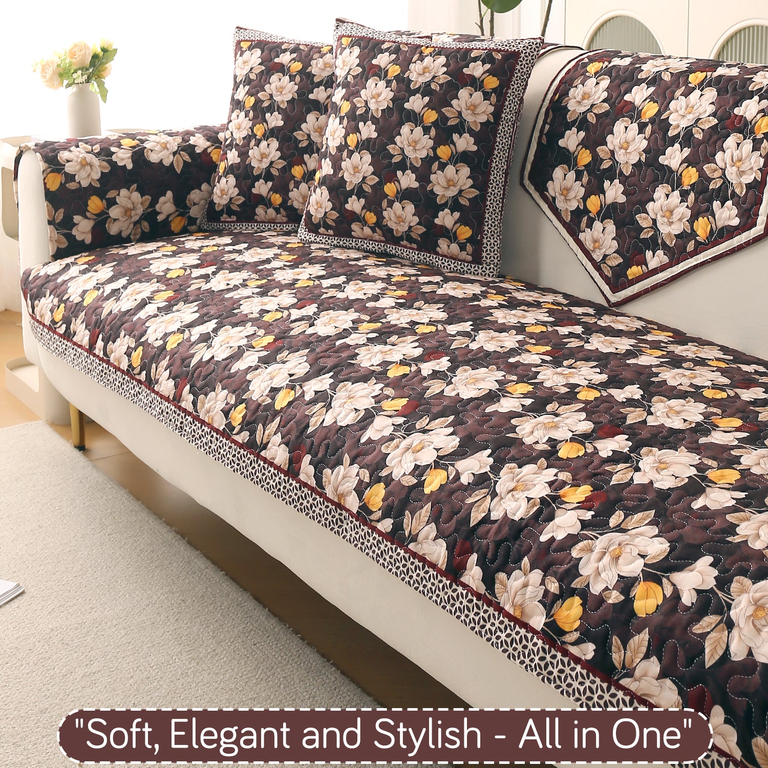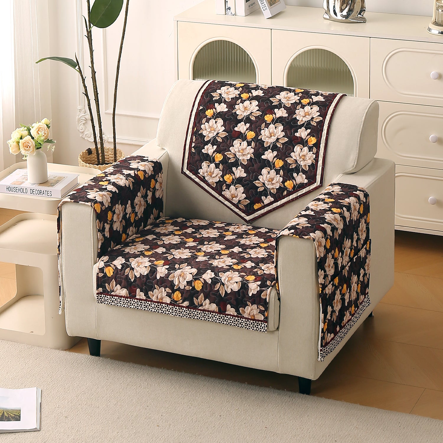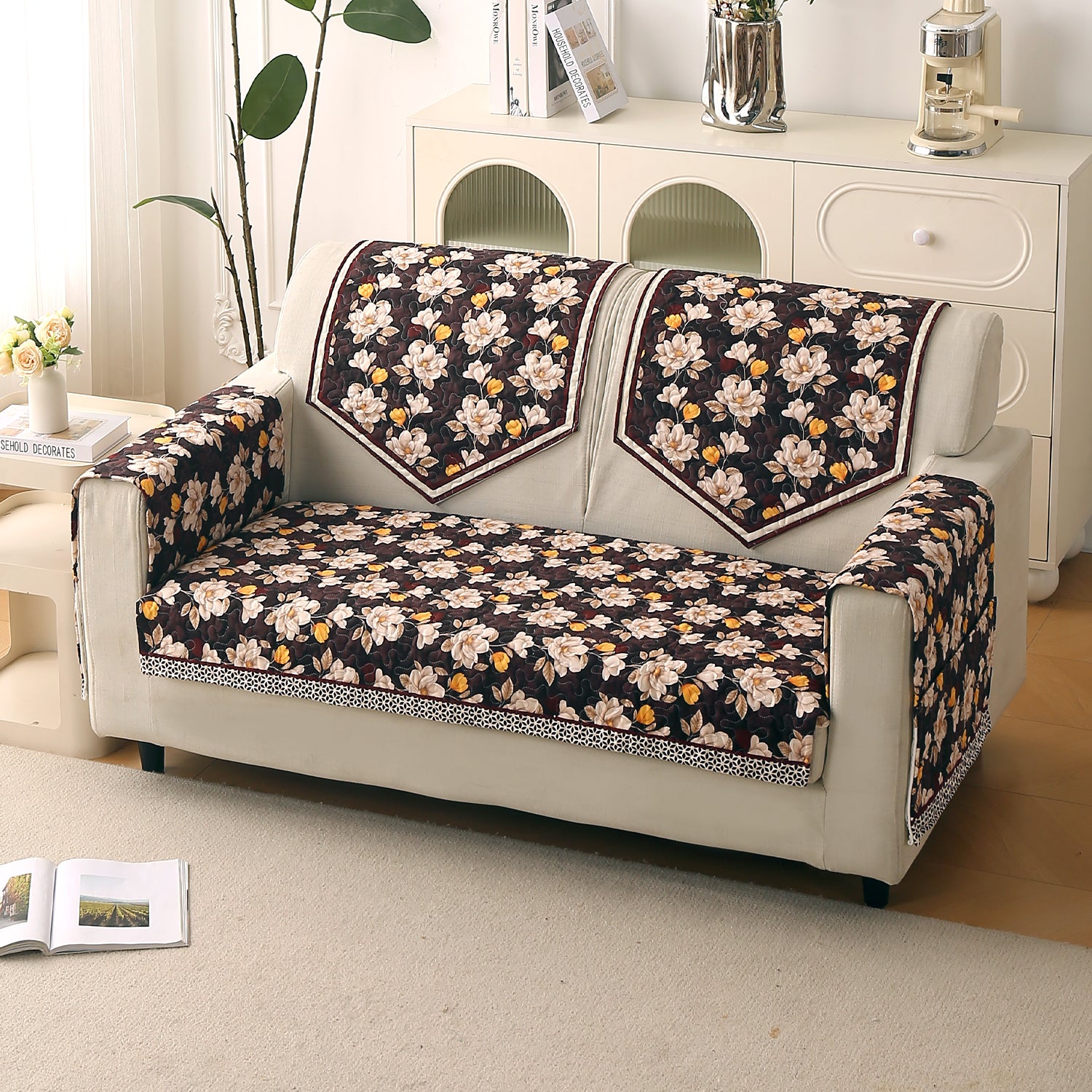 Florentina Series Printed Holland Velvet Sofa Mat - Camellia Brown